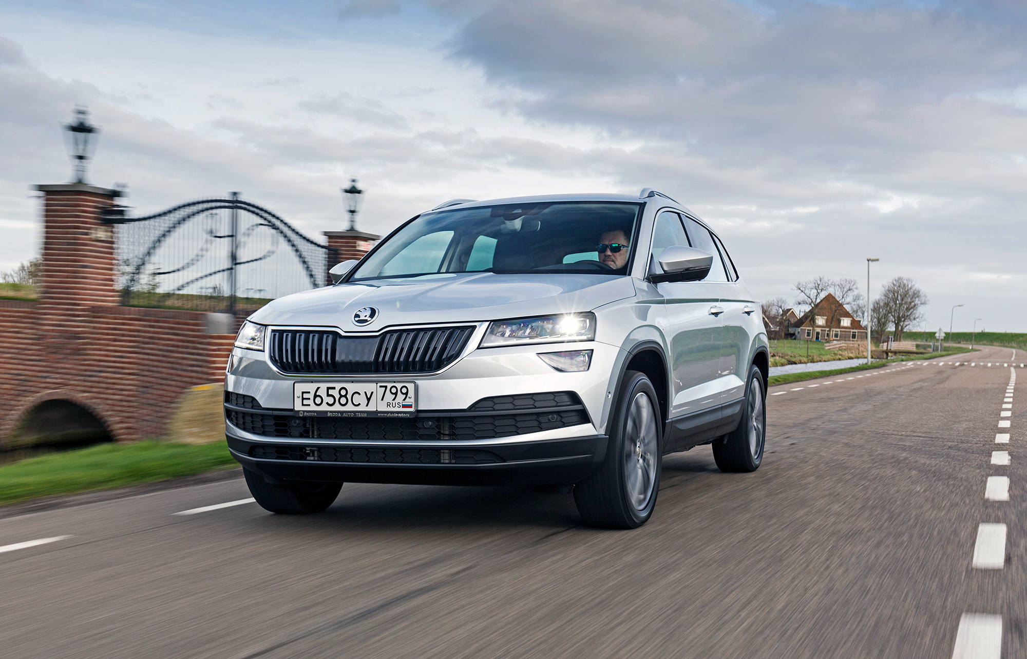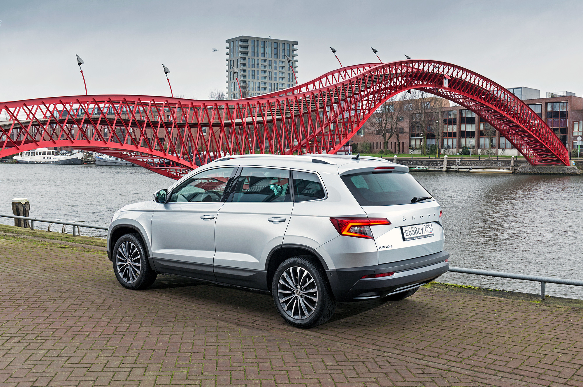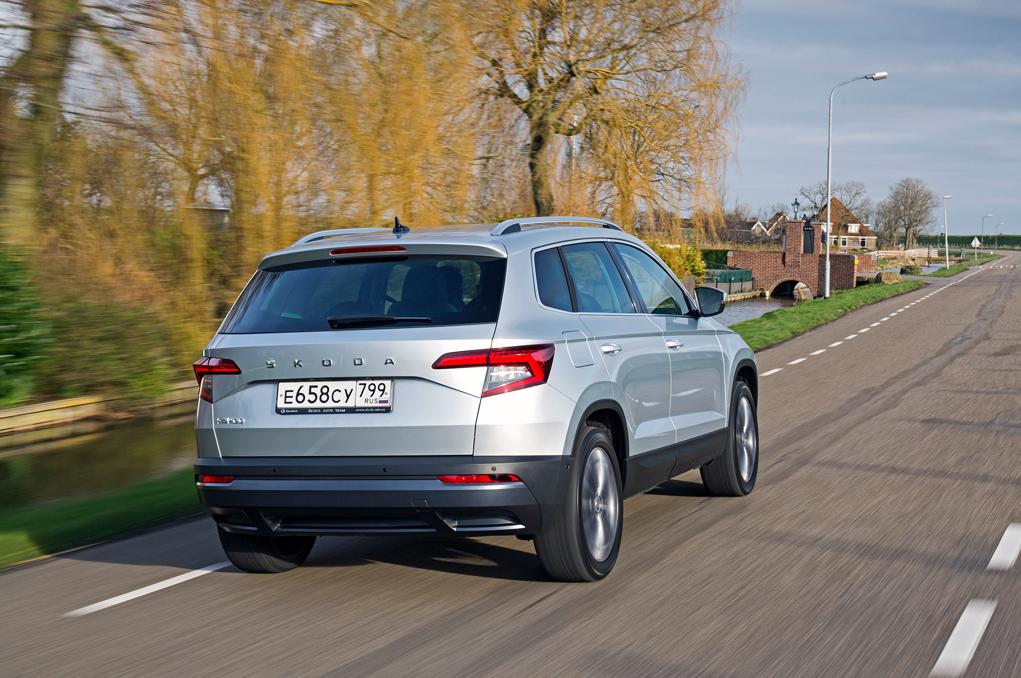 Звонко шлёпают покрышки при проезде поперечных стыков, однако подвеска их исправно сглаживает. Плавность хода заслуживает скорее положительного отзыва. Средними и крупными неровностями кроссовер не испугать. «Лежачие полицейские» различного профиля преодолеваются как-то уж слишком легко, без повторных колебаний, энергоёмко. В голландских городках нередко встречается брусчатка — и её подвеска прекрасно демпфирует. Придраться можно разве что к грубоватой отработке неровностей с острыми краями да подробному воспроизведению всякой мелочи. Но таков тестовый кроссовер на нестандартных 18-дюймовых колёсах. Предполагаю, со штатными Karoq будет чуть мягче.