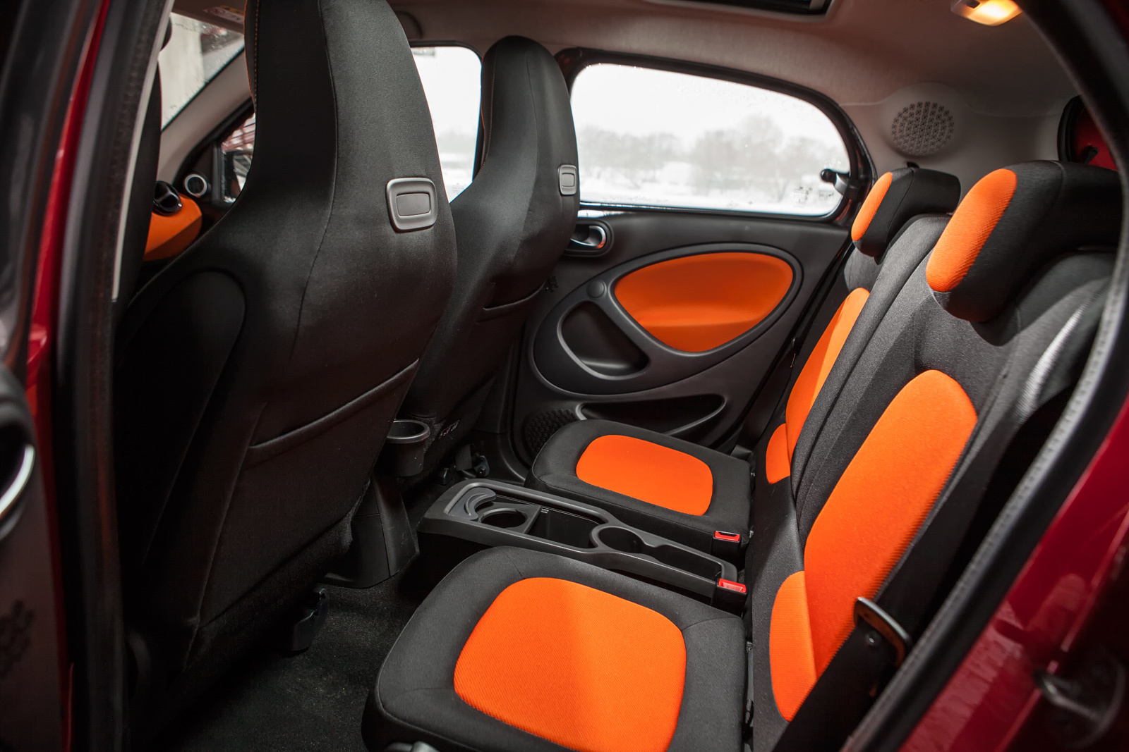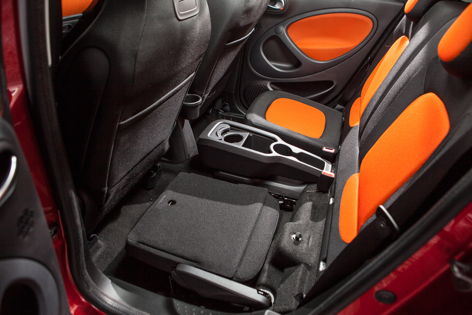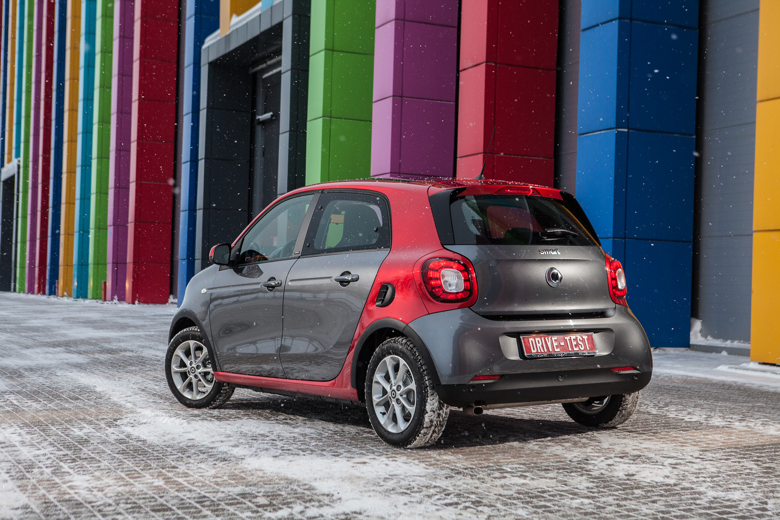 Очевидно, у аудитории Смарта другие ценности. Но и меня поймите: мысленно заплатив за этот «фарфор» 1,4 млн, я не могу думать рационально! Хотя сам Forfour в своих габаритах очень даже практичен — посмотрите, например, на изображения с трансформацией салона. Или на диаметр разворота в 8,95 м, почти как у старой трёхдверки Fortwo. Управляется машинка задорно, тормозит надёжно. Правда, я не сказал бы, что шумоизоляция улучшилась. В салоне отчётливо нудят шины, голосит трёхцилиндровый моторчик. Его не самый приятный тембр становится навязчивым уже к 3000 об/мин, с которых Smart только начинает ехать.