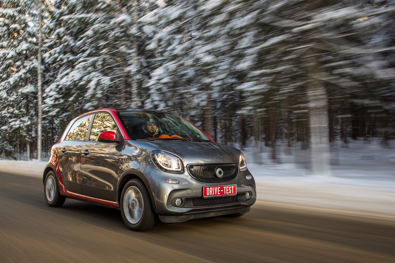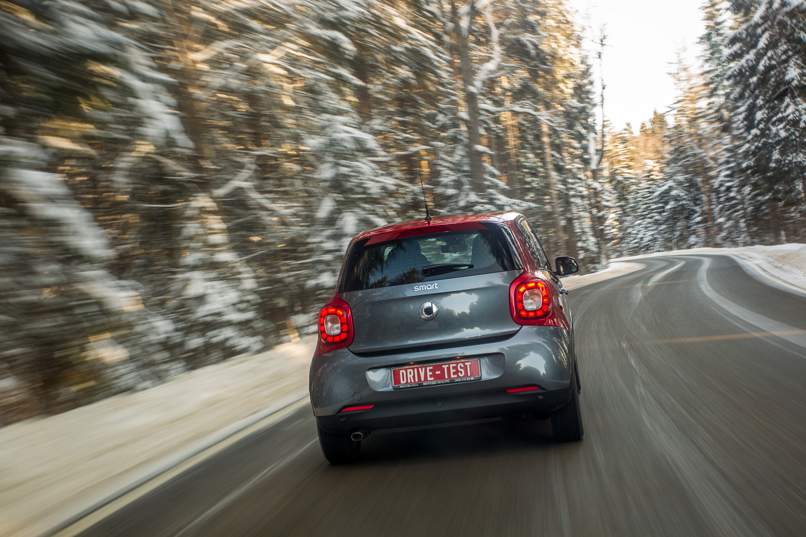 Хруст тормозов, затянутая петля на дросселе — спохватилась система стабилизации. Грубая и неотключаемая. Здесь нет даже кнопки деактивации трекшн-контроля, хотя она нужна не для хулиганского дрифта, а для банального выезда из снежной ловушки во дворе дома. Понятно, что заднеприводный да заднемоторный Smart от природы вертляв, но почему не наделить электронику хотя бы спортрежимом — в качестве компенсации тому парню, который решился этот Forfour подарить? Будь шасси так себе — я бы молчал, но с таким, как тут, система стабилизации давать свободу просто обязана! Тогда и «логановский» ключ можно класть в карман с радостью.