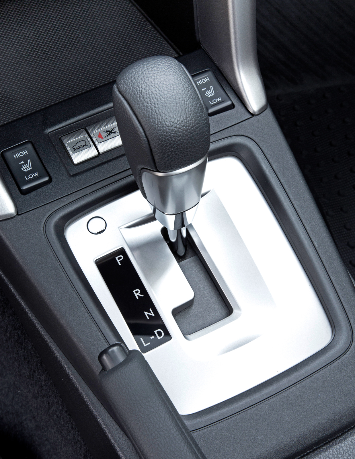 Форестер оснащается двумя типами бесступенчатой трансмиссии Lineartronic: «коротким», который аналогичен вариатору у Subaru XV и Импрезы, и «большим», как у Аутбека. Обе трансмиссии были доработаны для повышения перерабатываемого крутящего момента. Так, вариатор, работающий в паре с турбомотором, теперь спокойно переваривает 350 Н•м. Также был доработан алгоритм муфты привода: к примеру, отныне она получает сигнал с датчика, отслеживающего угол поворота руля, и меняет распределение момента в зависимости от крутизны и скорости прохождения поворота. Интересен ещё и тот факт, что вариатор турбированного Форестера может имитировать восьмиступенчатые «автомат» и, в ручном режиме, «механику» (в обычной модификации вариатор не прикидывается «автоматом», но может изобразить шестидиапазонную МКПП).
