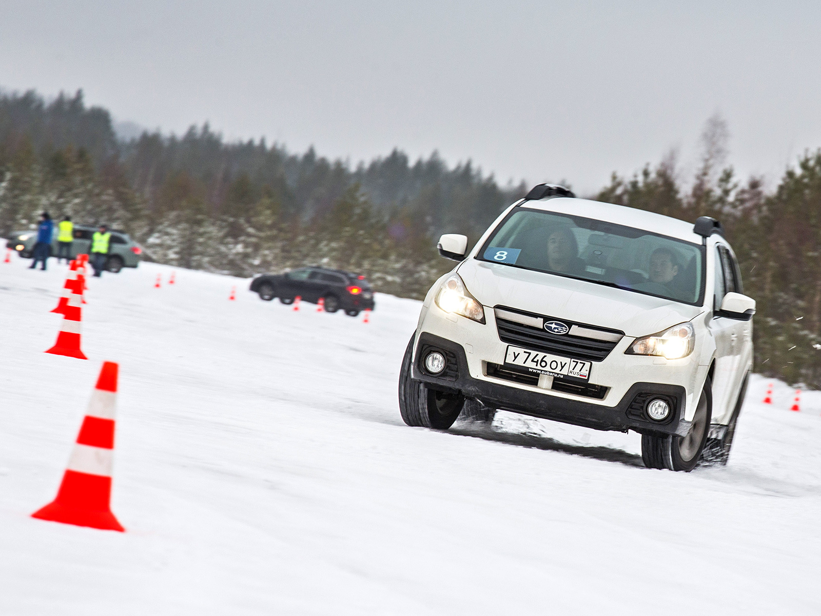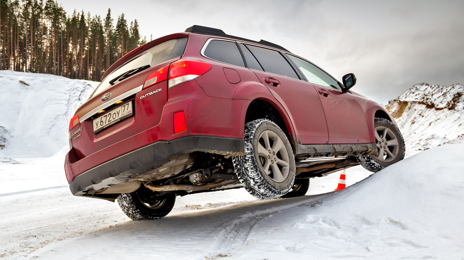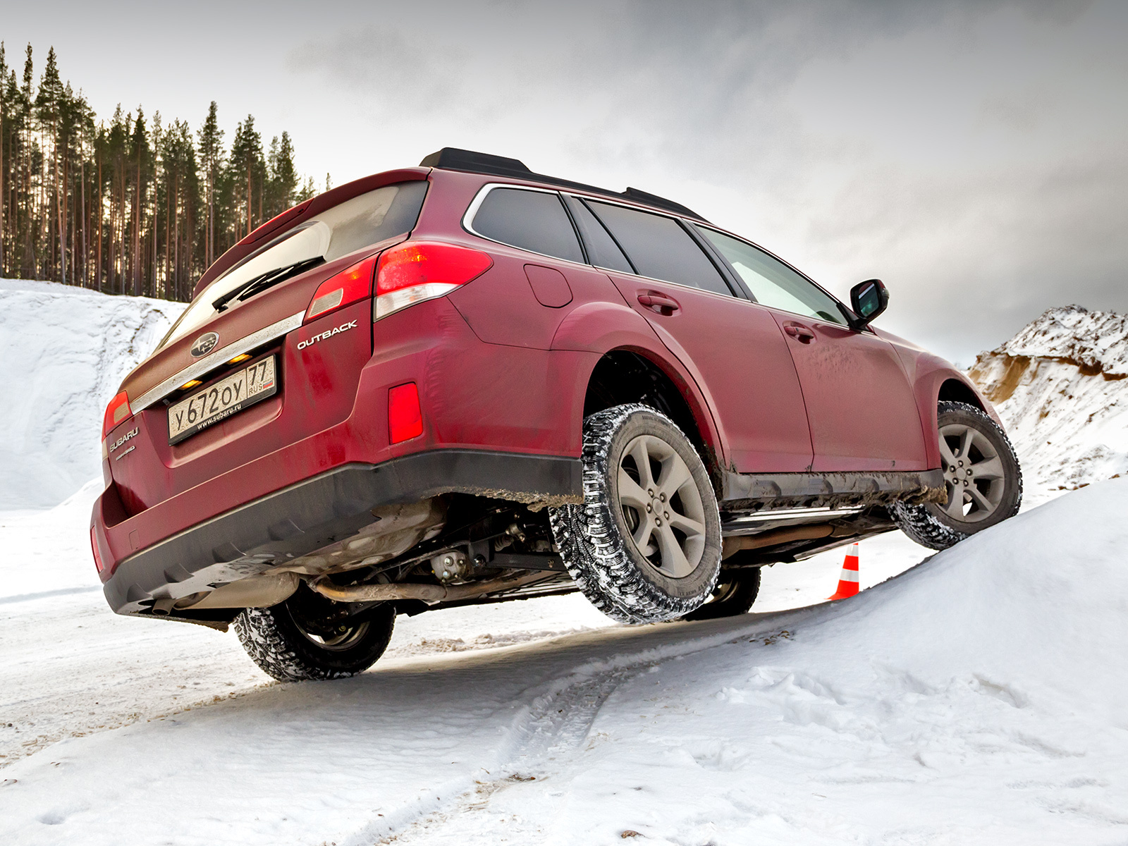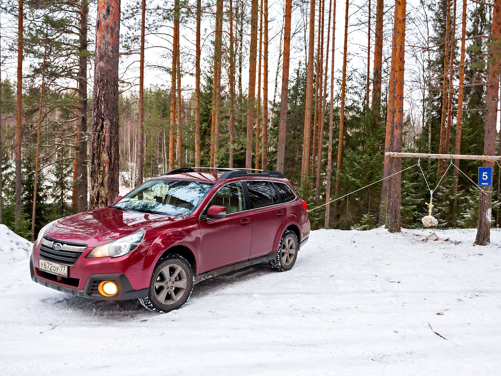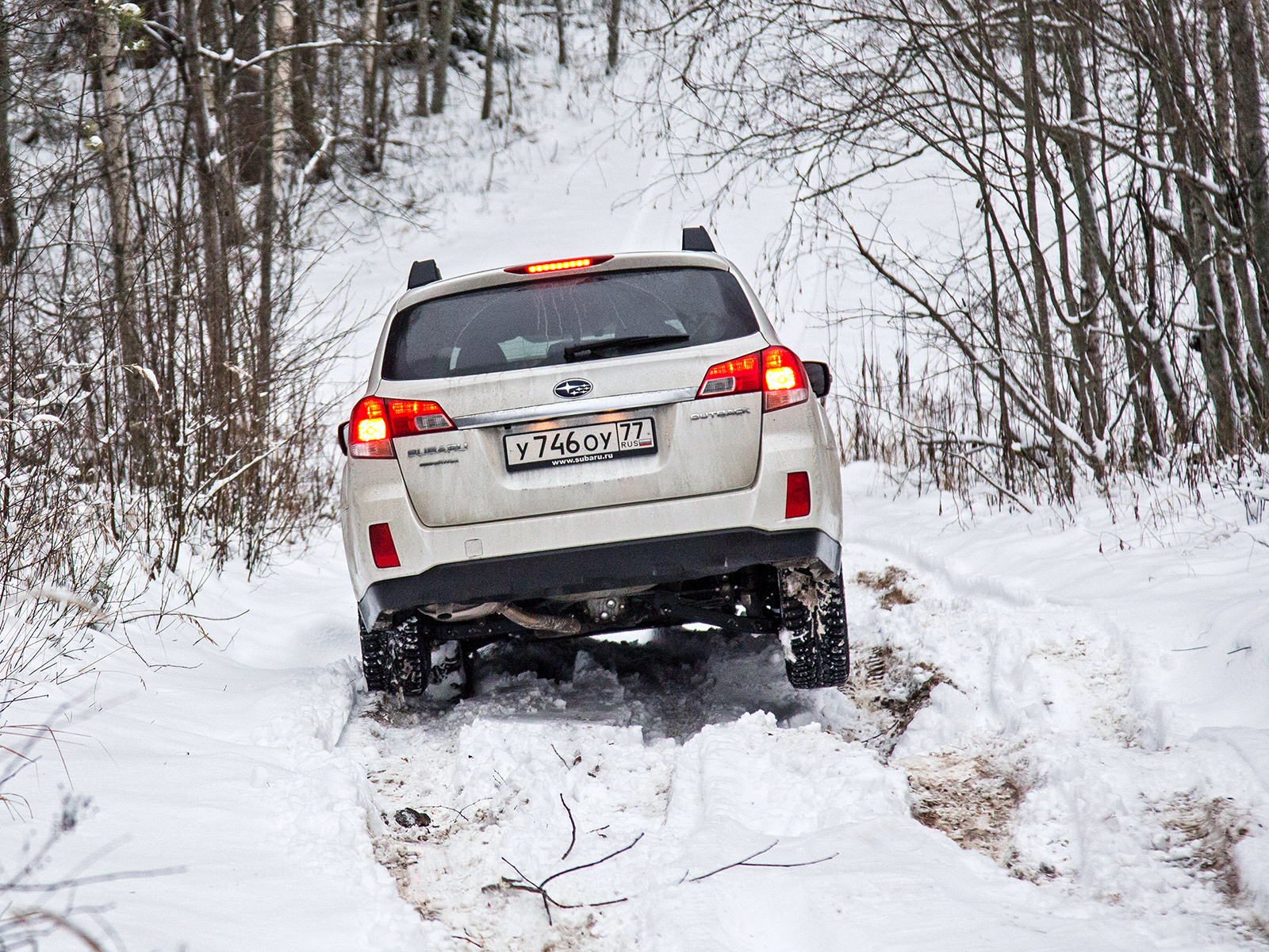 Но, пожалуй, больше всего вопросов к настройке электронных систем. Что при вывешенных колёсах Outback продолжает двигаться вперёд — это хорошо. Но почему неотключаемая система стабилизации более всего напоминает тюремного охранника? Чуть оступился — и тут же расстрел пулемётной очередью подтормаживаемых колёс. А если ещё и трекшн-контроль не деактивирован, то попутно электроника душит двигатель, лишая возможности вытянуть автомобиль из заноса. Скажете, при столь строгом «ошейнике» скольжений задней оси можно не опасаться? Я тоже так поначалу думал. Но оказалось, что продавить заслоны системы не так уж и сложно, достаточно немного ошибиться со скоростью входа в вираж и порезвее довернуть руль.