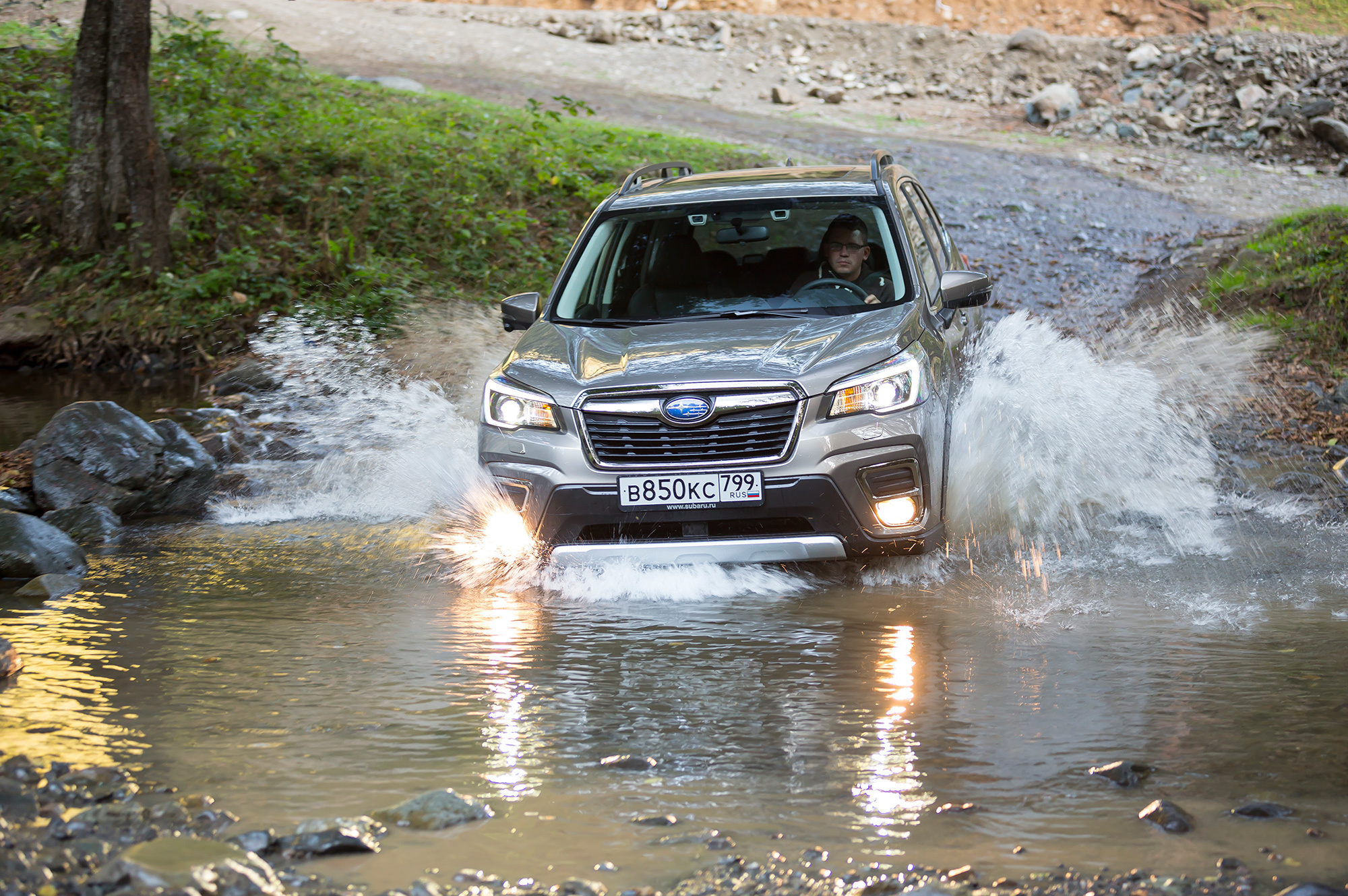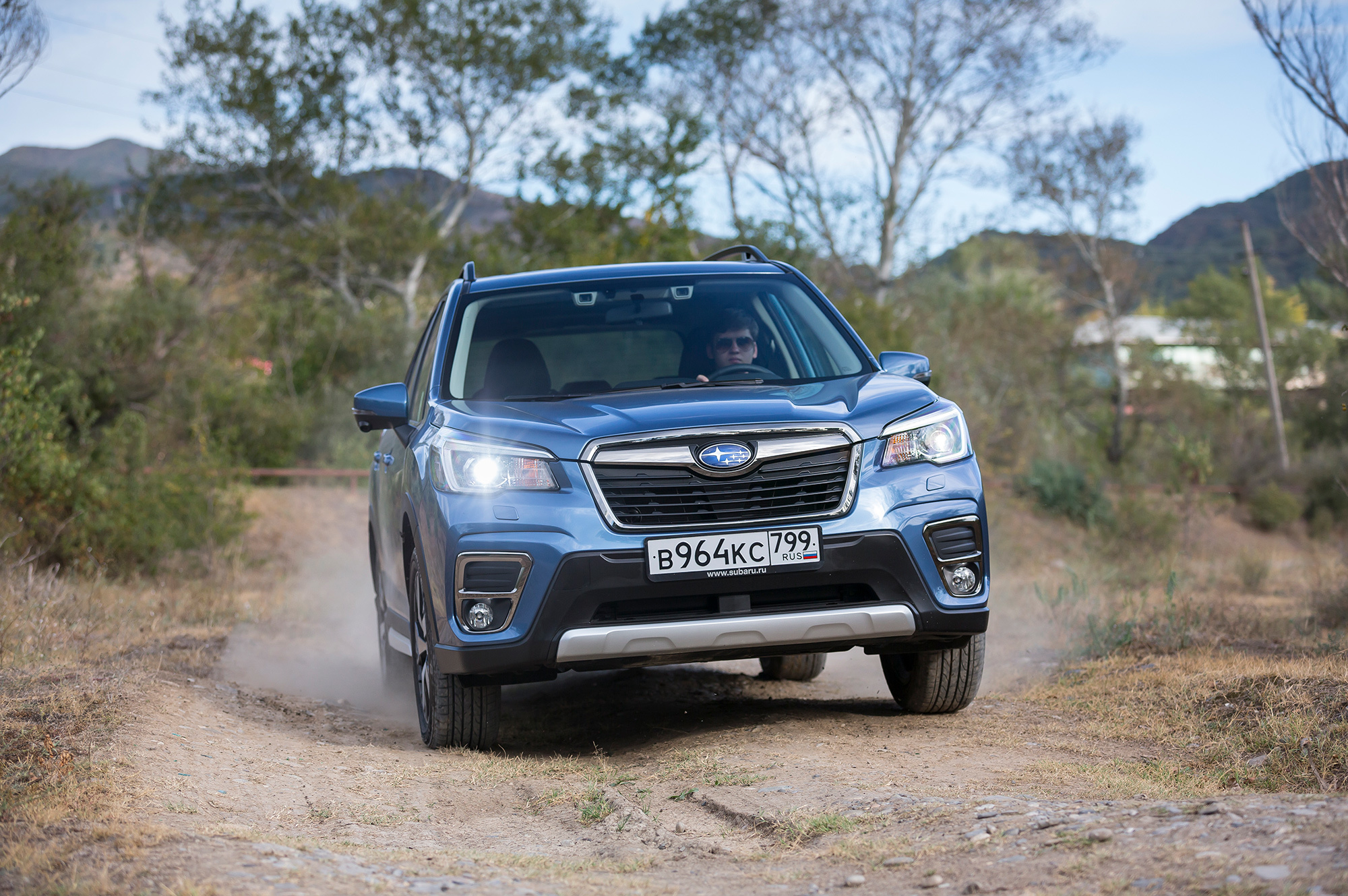 Шасси его точно заслуживает! Вираж за виражом убеждают: подвеска настроена так классно, что Forester на шинах M+S лучше держится в поперечном направлении и управляется точнее многих конкурентов в летней «обуви». Крены уменьшены до приемлемых, реактивное действие на «укороченном» руле прозрачно и удовлетворит взыскательных гурманов. А как прогнозируемо и логично Форик метёт хвостом на грунтовых дорожках, даже со включённой системой стабилизации! Только при резком торможении на асфальте универсальный Bridgestone Dueler H/P срывается на писк рановато.