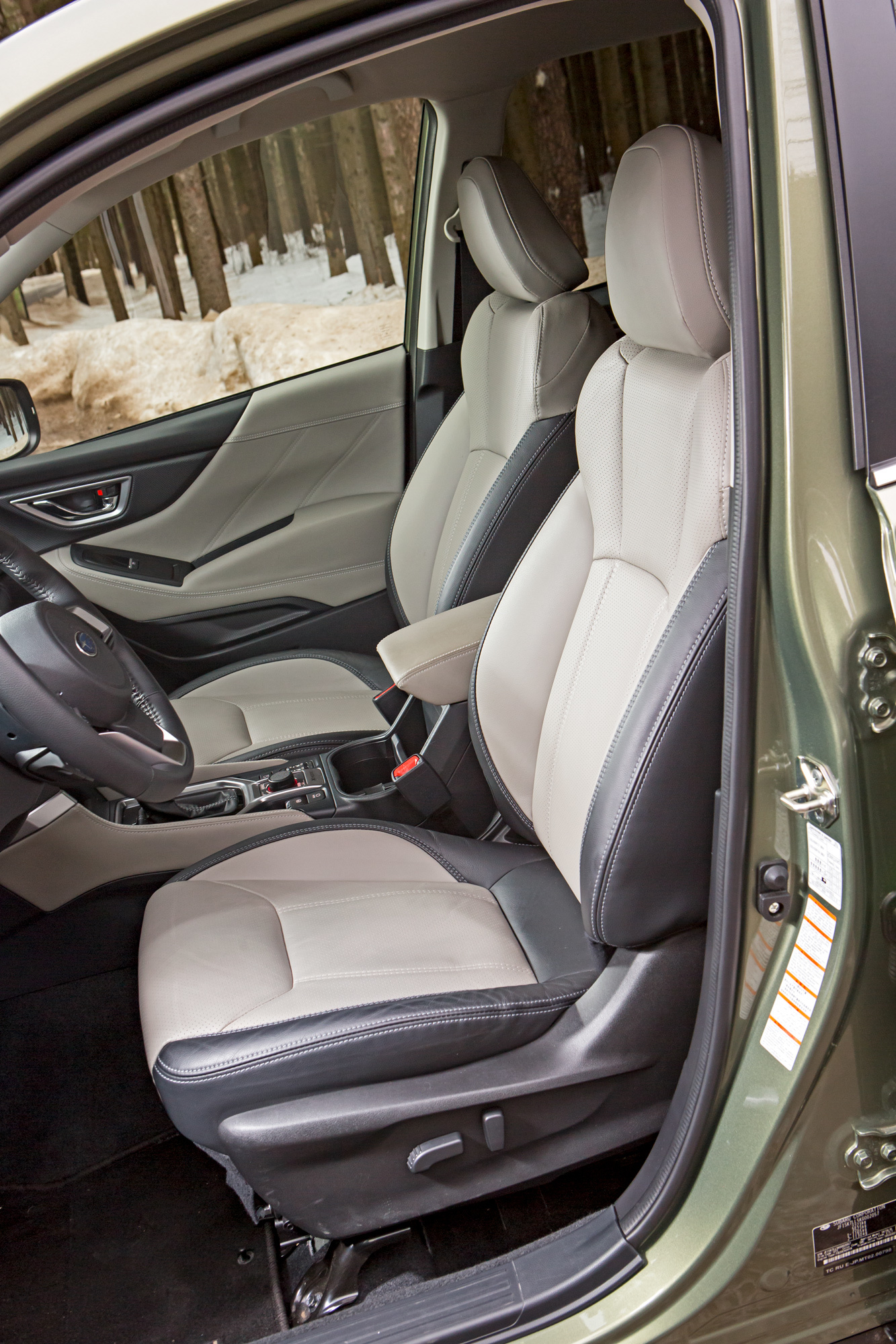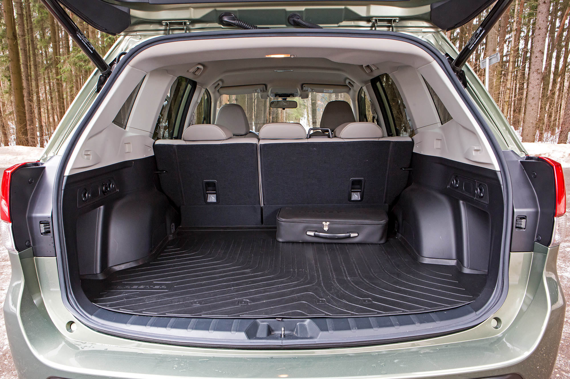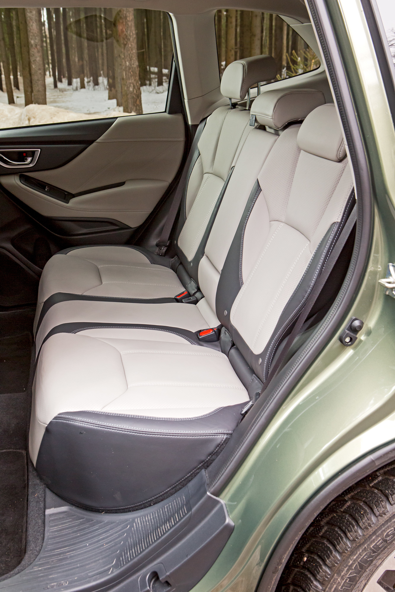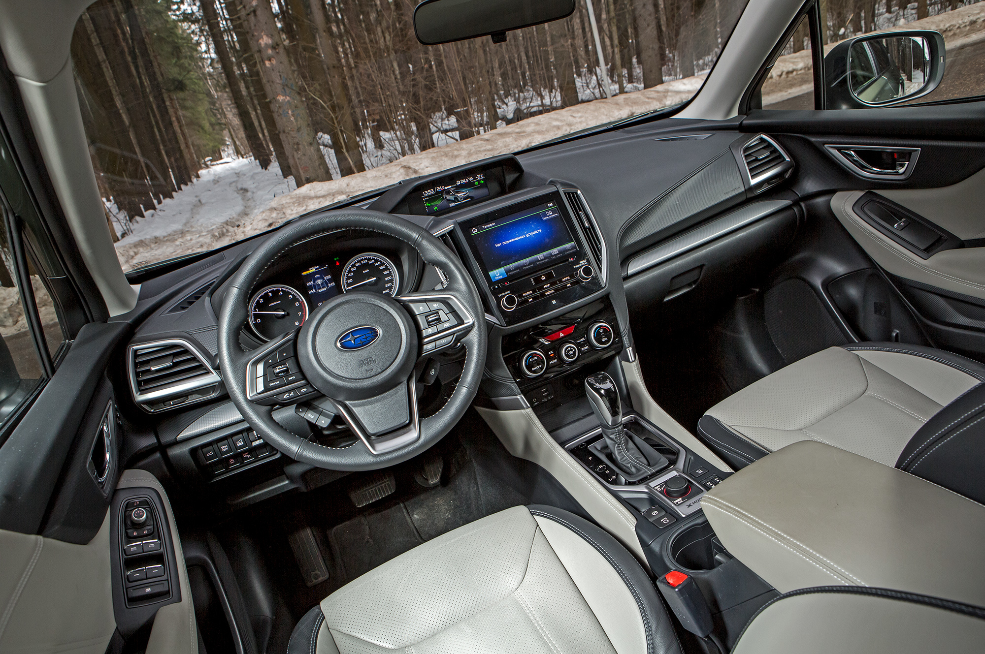 Всего дюйм разницы, но на маленьких дисках кузов смотрится куда более грузным. Двухлитровым машинам ни за какие деньги не положены серебристые вставки по низу бамперов и вокруг противотуманок, а также люк. Салон выглядит аналогично, доступны и все действительно важные опции типа комплекса водительских ассистентов EyeSight. Без регулировки спинок задних сидений, электропривода пассажирского сиденья или сабвуфера, я считаю, можно прожить. А взмаховая активация двери багажника, регулировка поясничного подпора или автоматика задних стеклоподъёмников для Форестера по-прежнему не предлагаются в принципе.
