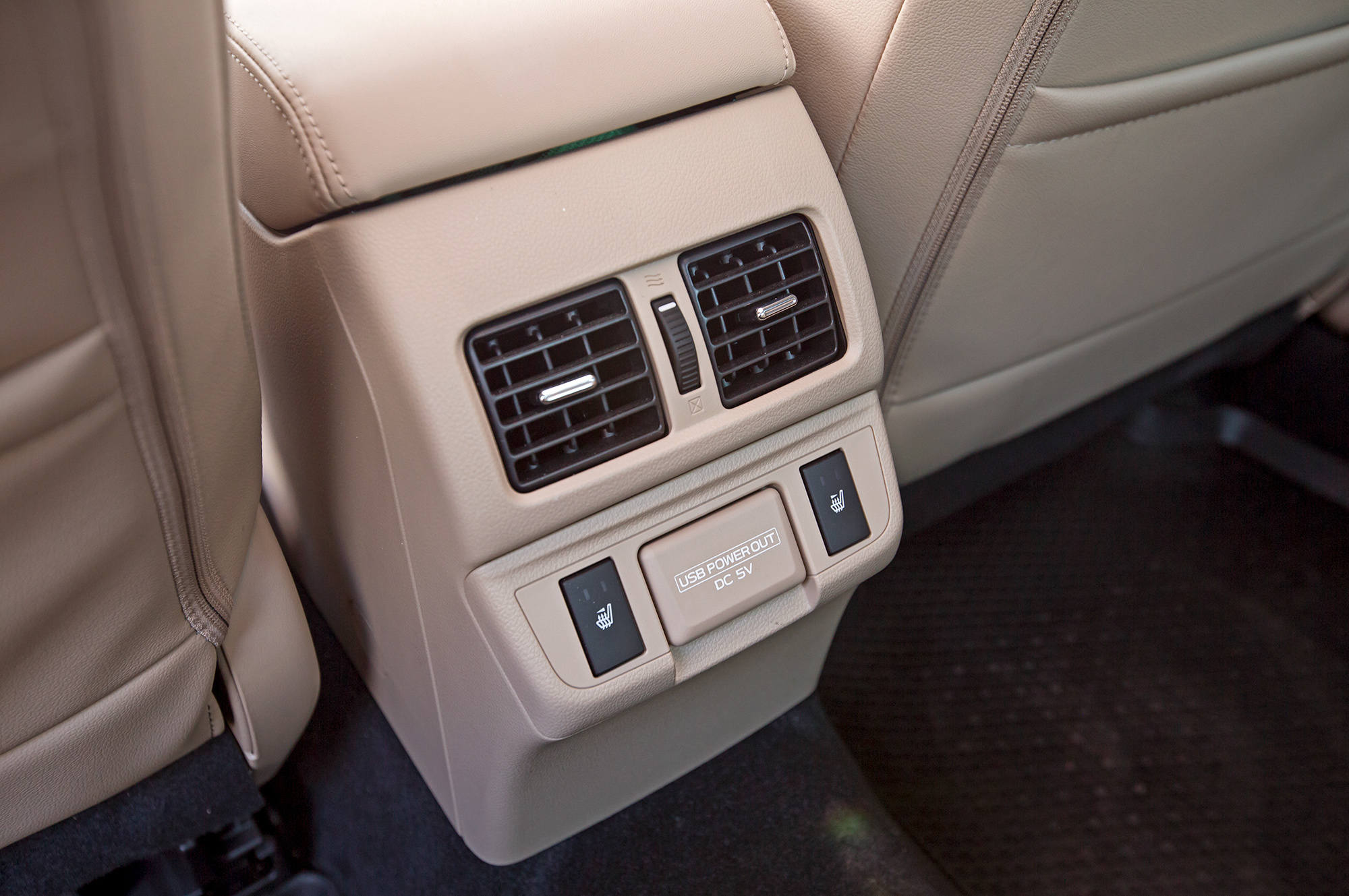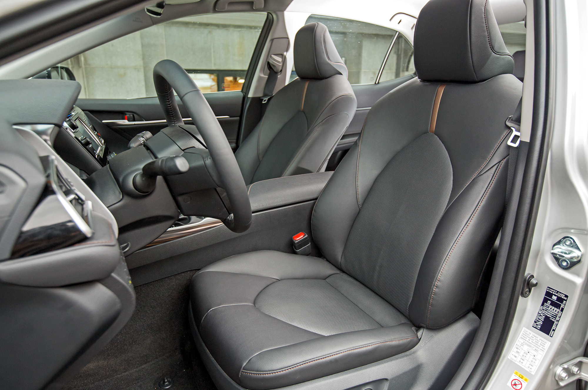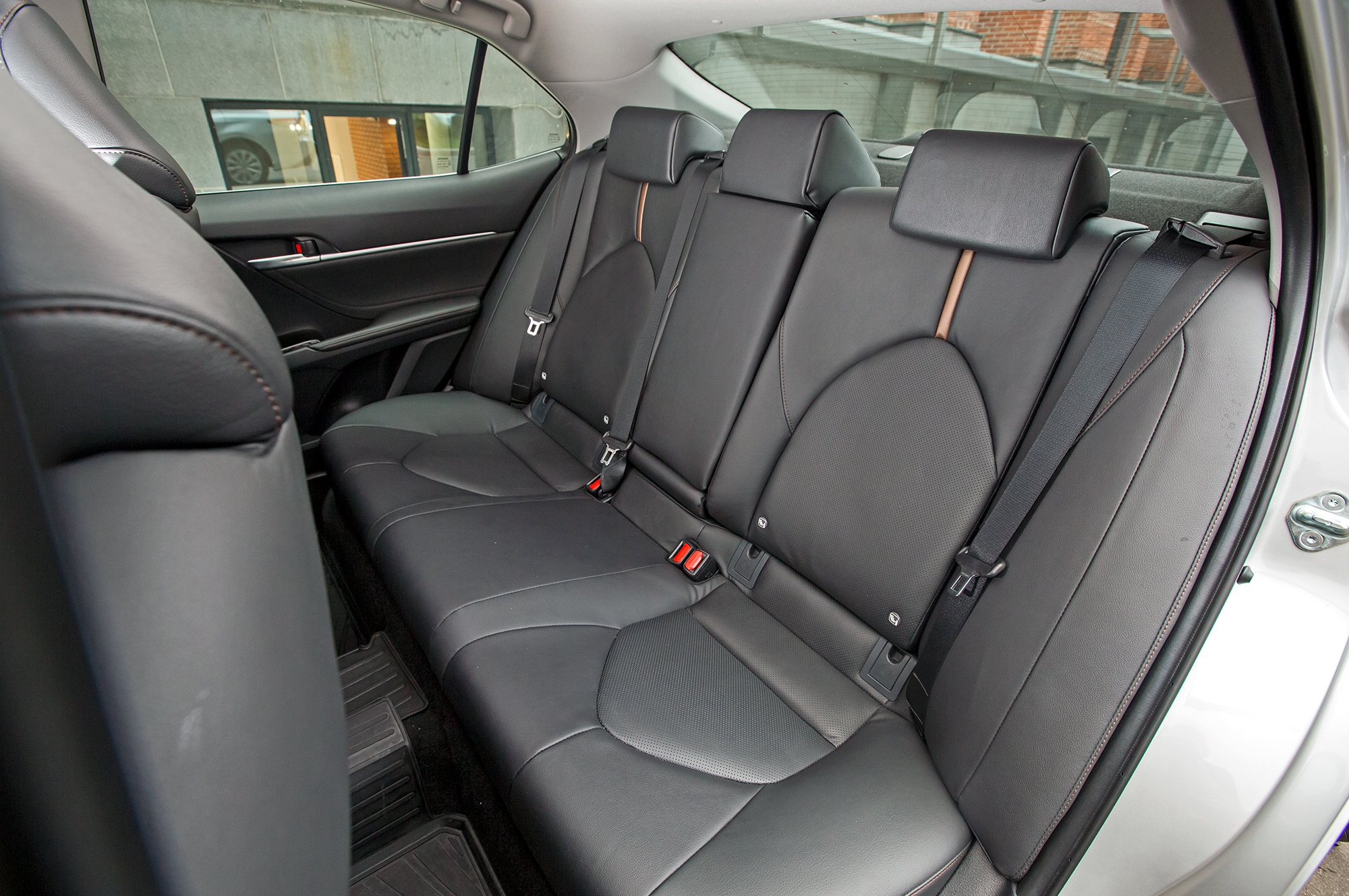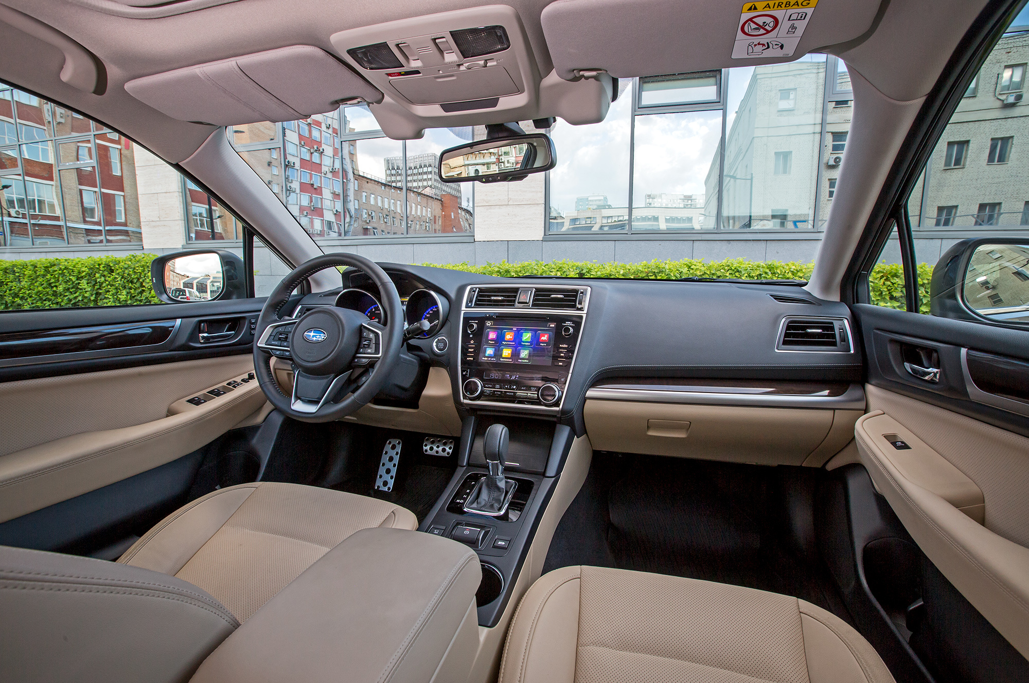 Визуально и на ощупь не скажешь, что тестовая Legacy при сопоставимом оснащении дороже нашей Тойоты аж на 400 тысяч рублей. Кузовные детали Camry подогнаны аккуратнее, на передней панели ― кожзам, а не курьёзно простроченный настоящей ниткой пластик, как в Legacy. Зато у Subaru передние стойки и козырьки обшиты качественной тканью. Чуть лучше отделан багажник аналогичного объёма, при сложенных задних сиденьях в салон открывается полноценный проём, а не куцая щель, как у Тойоты. Задние места будто слеплены по одному шаблону: простор одинаков, хватких ручек на дверях нет, однако имеется подогрев сидений.