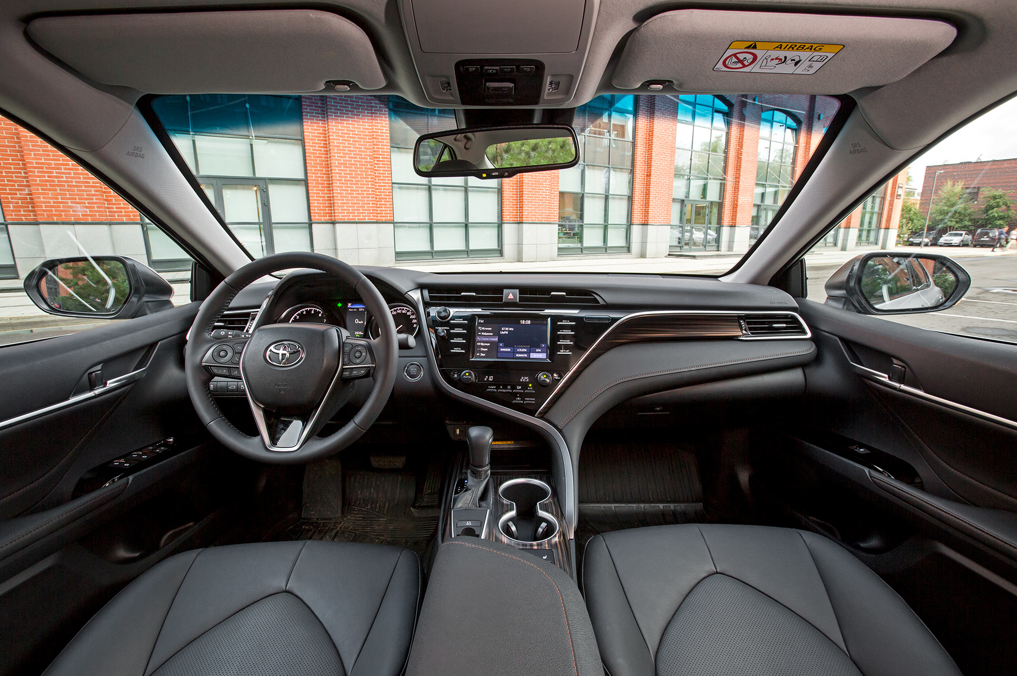 Приятна и новая субаровская медиасистема с картами TomTom и очень хорошим качеством телефонной связи. Поворотный свет для Тойоты не предлагается, а в Subaru ― пожалуйста, причём светодиодные модули поворачиваются на большие углы. Парковочные датчики нужно устанавливать у дилера. Есть камера заднего вида, но, как и в Camry, она не защищена от грязи. В топ-версии Legacy камеры ещё установлены спереди и справа сбоку ― им ещё сложнее оставаться чистыми.