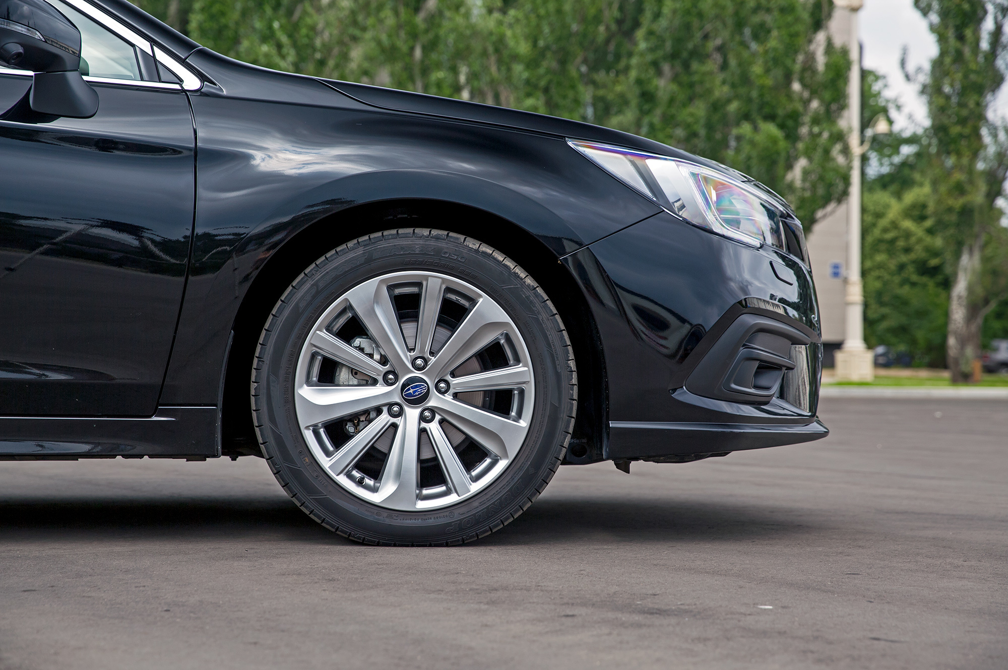 А ведь в неё ― пусть и с потерей динамики ― можно лить АИ-92. Мы так и делаем. Кто ж откажется сэкономить? Питерская Toyota ― россиянка не только по месту рождения. По низу дверей идут уплотнители, запасное колесо не отличается от остальных, есть полный обогрев лобового стекла… И клиренс больше: реальные 155 мм, пусть и без защиты, против 135 мм, измеренных нами под стальным щитком, прикрывающим Subaru снизу. Полный привод, конечно, возьмёт своё зимой ― но разве что трогаться на скользком покрытии Legacy будет увереннее.