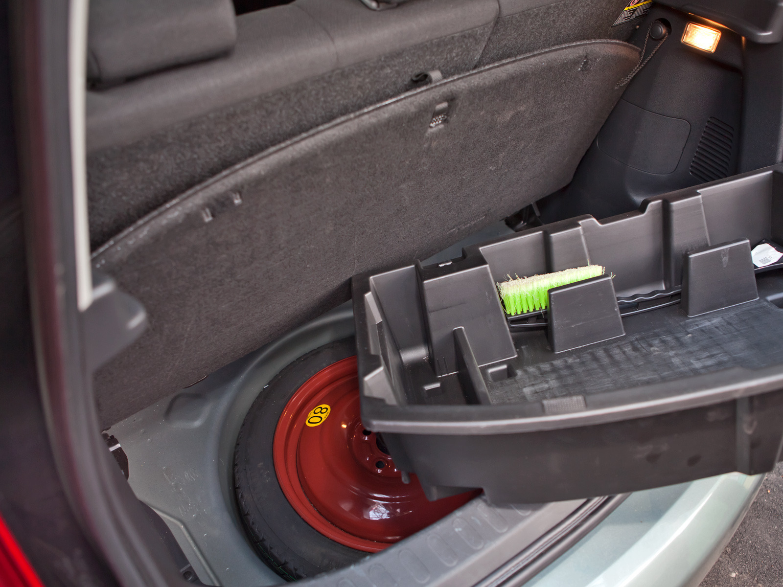 Уместиться в этот поддон способен не только набор автомобилиста, но вдобавок и электрический шинный насос, и щётка для кузова, и фонарь, и перчатки с тряпками... И ещё останется запас для пары инструментов и мелких вещичек, которые хотя и бывают нужны раз в три года, но тем не менее болтаются в багажнике у каждого третьего водителя. Мужчина, примеряющий Сплэш на себя, обрадуется, представив, что сюда, в подпол, можно будет спихнуть с глаз долой буксировочный трос, пару лампочек от поворотников, скотч и провода с «крокодилами».