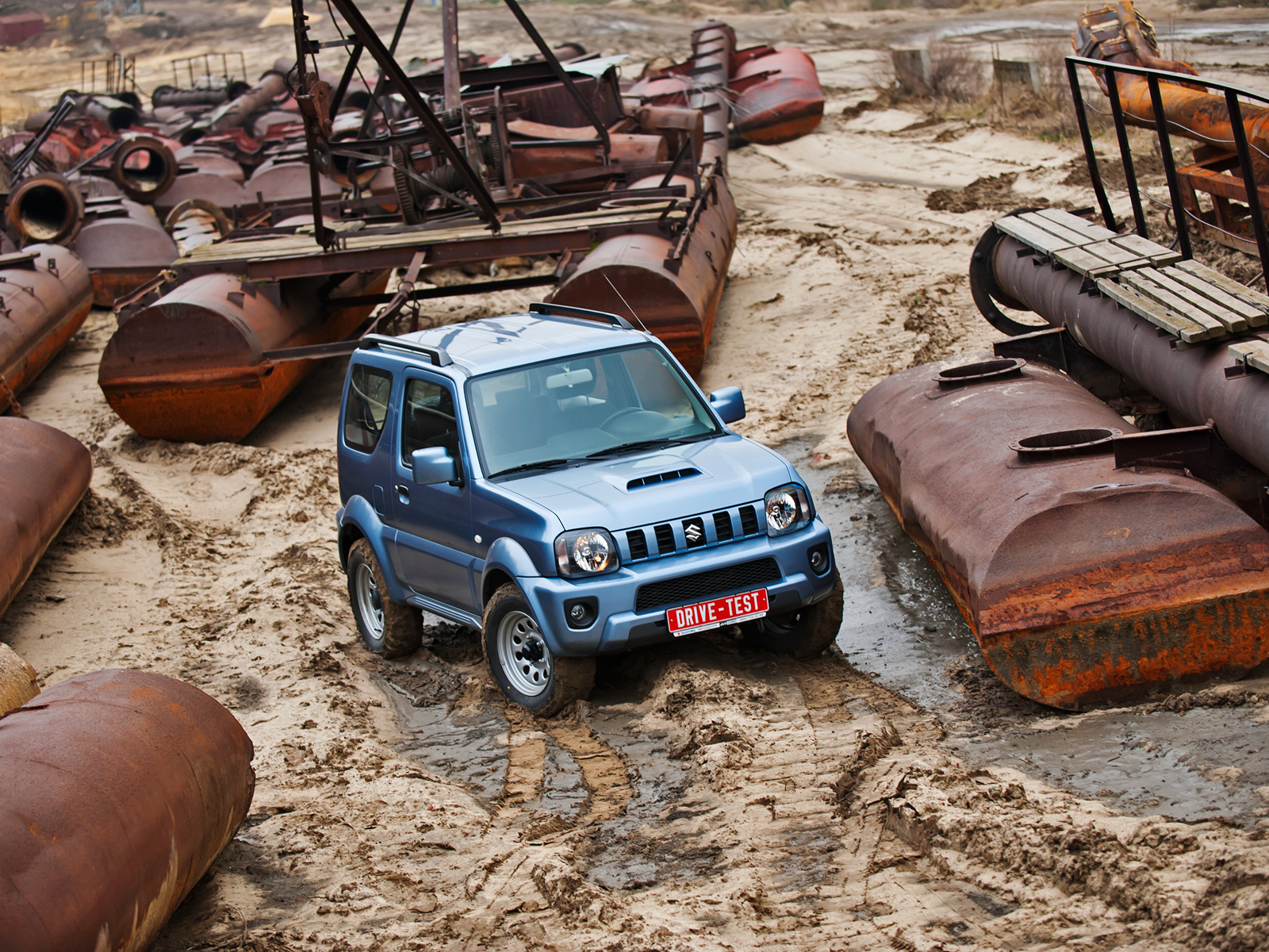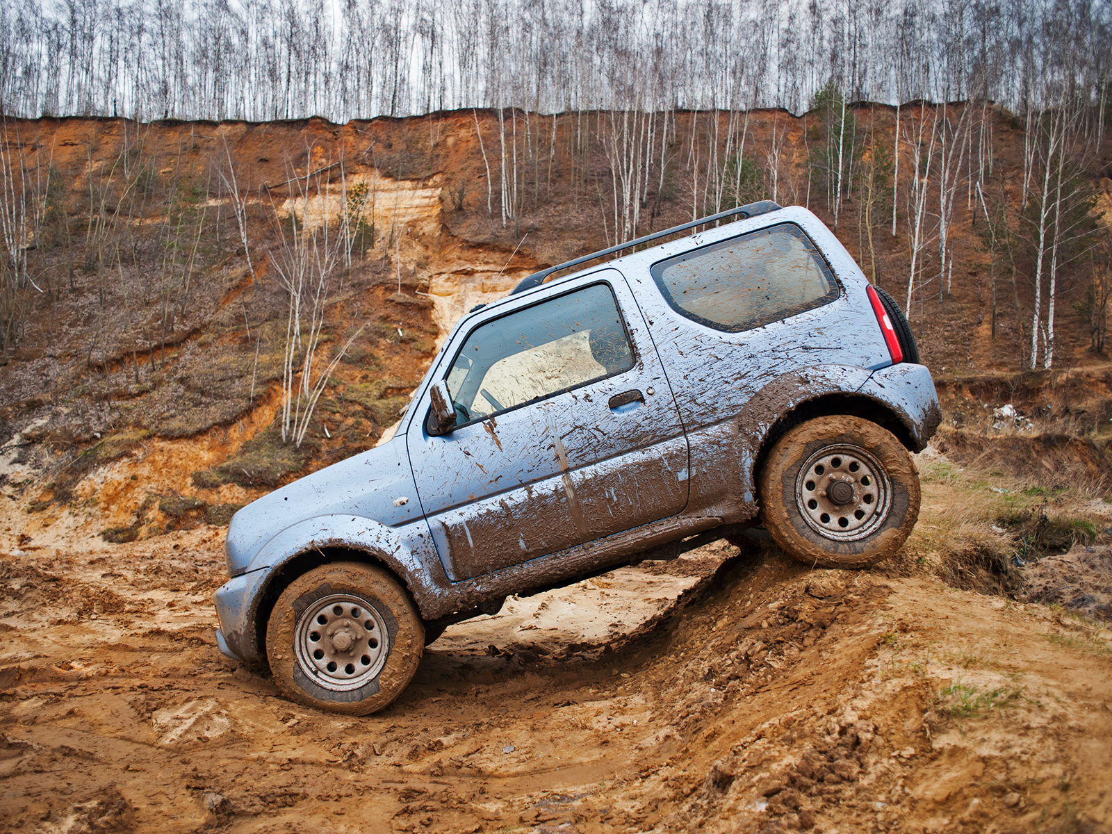190 мм дорожного просвета при менее чем полутораметровой ширине колеи и расстоянии в 2250 мм между осями обеспечивают Jimny отличную геометрическую проходимость. Свесы кузова здесь настолько малы, что позволяют преодолевать природный рельеф под прямым углом. Да и весит малыш всего 1075 кг (версия с автоматической коробкой передач). Там, где полноразмерные внедорожники продавливают грунт, набивая глубокую колею, этот оставляет лишь отпечатки протектора.