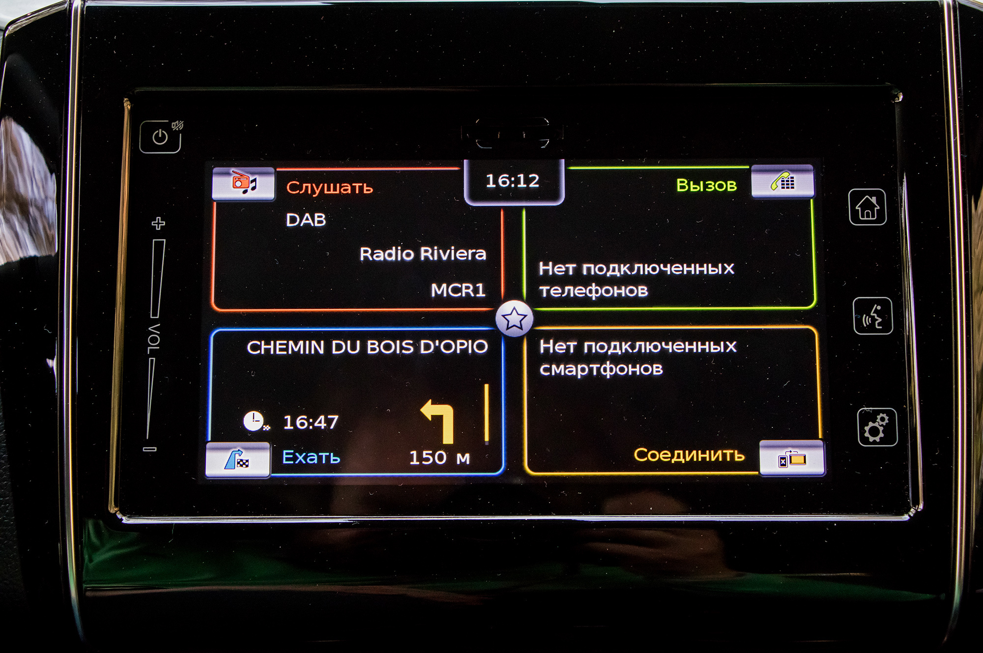 Пятидверный хэтч (а теперь будут только такие) по качеству отделки интерьера — на одном уровне с новым Солярисом. Формы передней панели современны, симпатичный пластик дубовый. Приборы оформлены под дорогие хронометры, а дисплей медиасистемы и пульт управления «климатом» на пять градусов повернуты к водителю. Посадка за рулём не для дальних путешествий, но, немного поджимая ноги, на самом деле делишься простором с задними пассажирами. Экономия замаскирована: поди заметь, что плафон в салоне только один, а по полу багажника ездит хлипкий коврик. Грузовой отсек вырос на четверть, до достойных 265 литров, — при длине машинки в 3,8 метра!