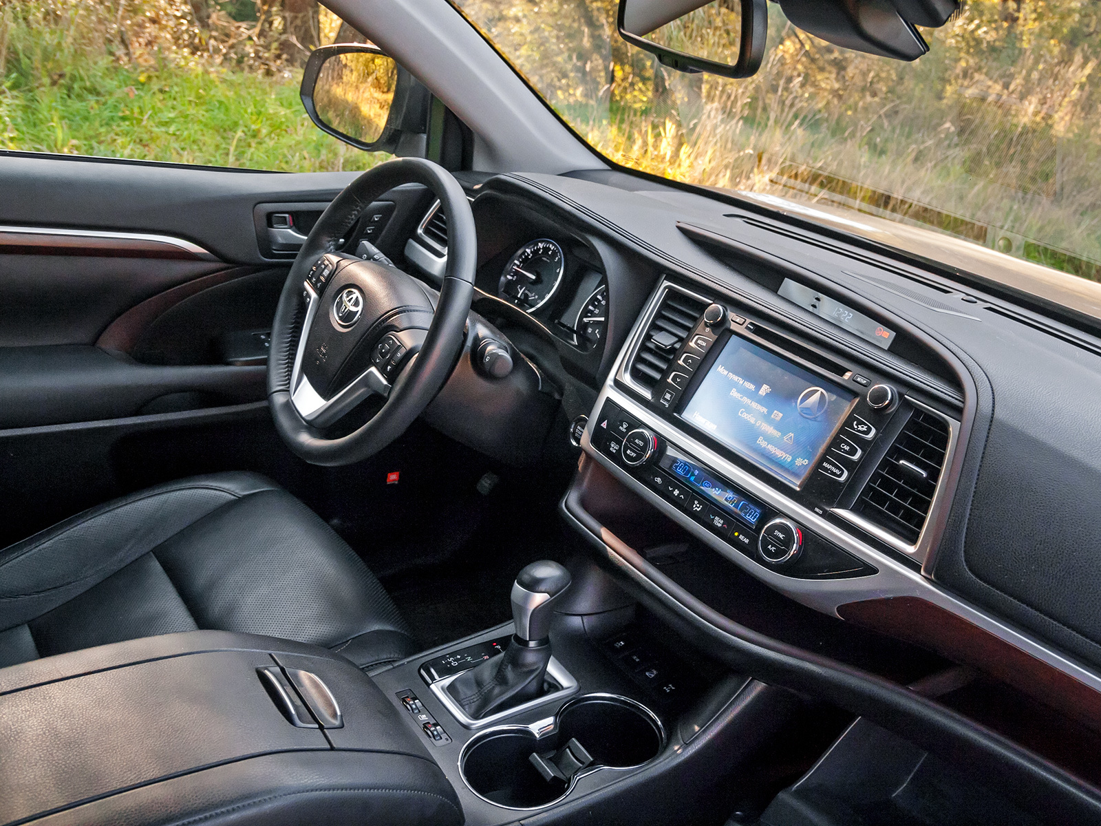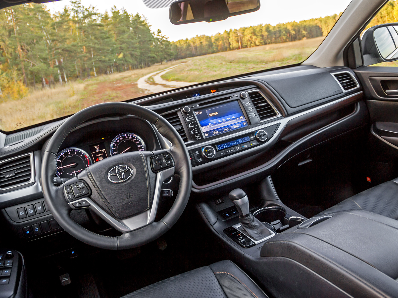 В Highlander можно заезжать и сразу жить. Начальный ремонт японцы сделали на совесть: не поскупились на податливый пластик и декоративные панели, удачно имитирующие металл и дерево. Не придётся думать о, так сказать, бытовой технике. В высокую переднюю панель встроены электронные часы (без будильника, к сожалению), жидкокристаллический «телевизор», всеядная аудиосистема и климатическая установка, распределяющая потоки воздуха на две зоны. Ниже неё расположили удобную полку для мобильных телефонов и других небольших гаджетов, розетку бортовой электросети и вместительные подстаканники, готовые с лёгкостью принять даже литровые бутылки.