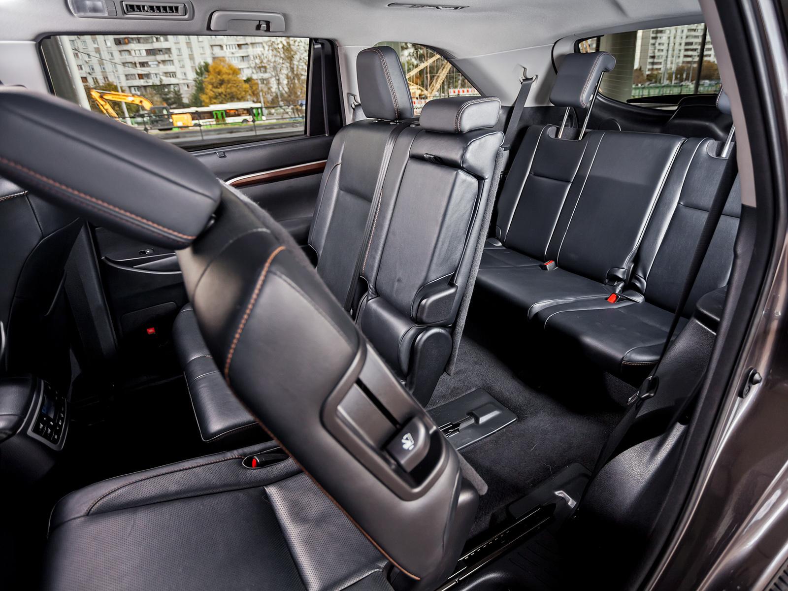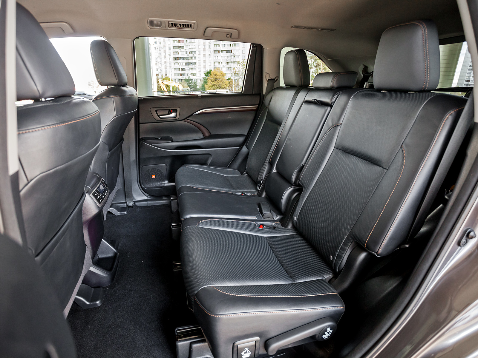 Мебели в Хайлендере — на семь человек. Спереди установлены два широких кресла — в них будет уютно даже самым крупным людям. Под ноги зарезервировано 1123 мм, а ширина в плечах достигает 1506 мм. Сиденья обтянуты мягкой перфорированной кожей, оснащены вентиляцией и подогревом. Уютно и жарким днём, и холодным вечером. На втором ряду стоит большой диван с плоской спинкой. На нём без проблем усядутся трое пассажиров, для которых отведено 1514 мм вширь. Также для удобства имеются регулировки подушки по длине и спинки по наклону, свой блок климат-контроля, подогрев и шторки на окнах. Третий ряд полноценной комнатой не назовёшь, но жить и не тужить можно и здесь. И забираться легко: одним движением отодвинул впередистоящее сиденье и с лёгкостью пролез через широченный дверной проём.