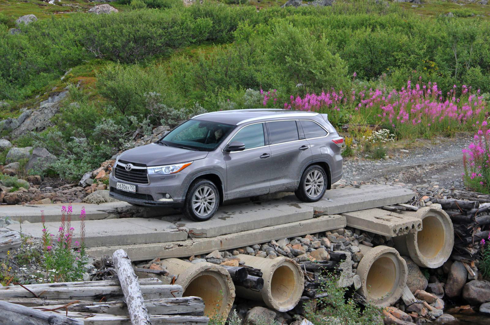 Парадокс Рыбачьего в том, что при полной отстранённости от цивилизации тут бродят толпы туристов. На автомобилях, на велосипедах, пешие... Мы считали себя экстремалами ровно до тех пор, пока не увидели двух хрупких девушек с огромными рюкзаками размером с однокамерные холодильники. Вот кто говорит с Севером на одном языке! У нас же свой полноприводный мирок. Мы уже адаптировались к неровным каменистым тропам и шпарим по ним, не снижая хода. Скользкие подъёмы, где Дефендеры и Ленд Крузеры врубают «понижайки», Highlander штурмует с заблокированной муфтой привода задних колёс и отключённой системой стабилизации. Ныряет в полутораметровые броды, цепляется дорожными шинами за гладкие валуны. Одним словом, не сачкует!
