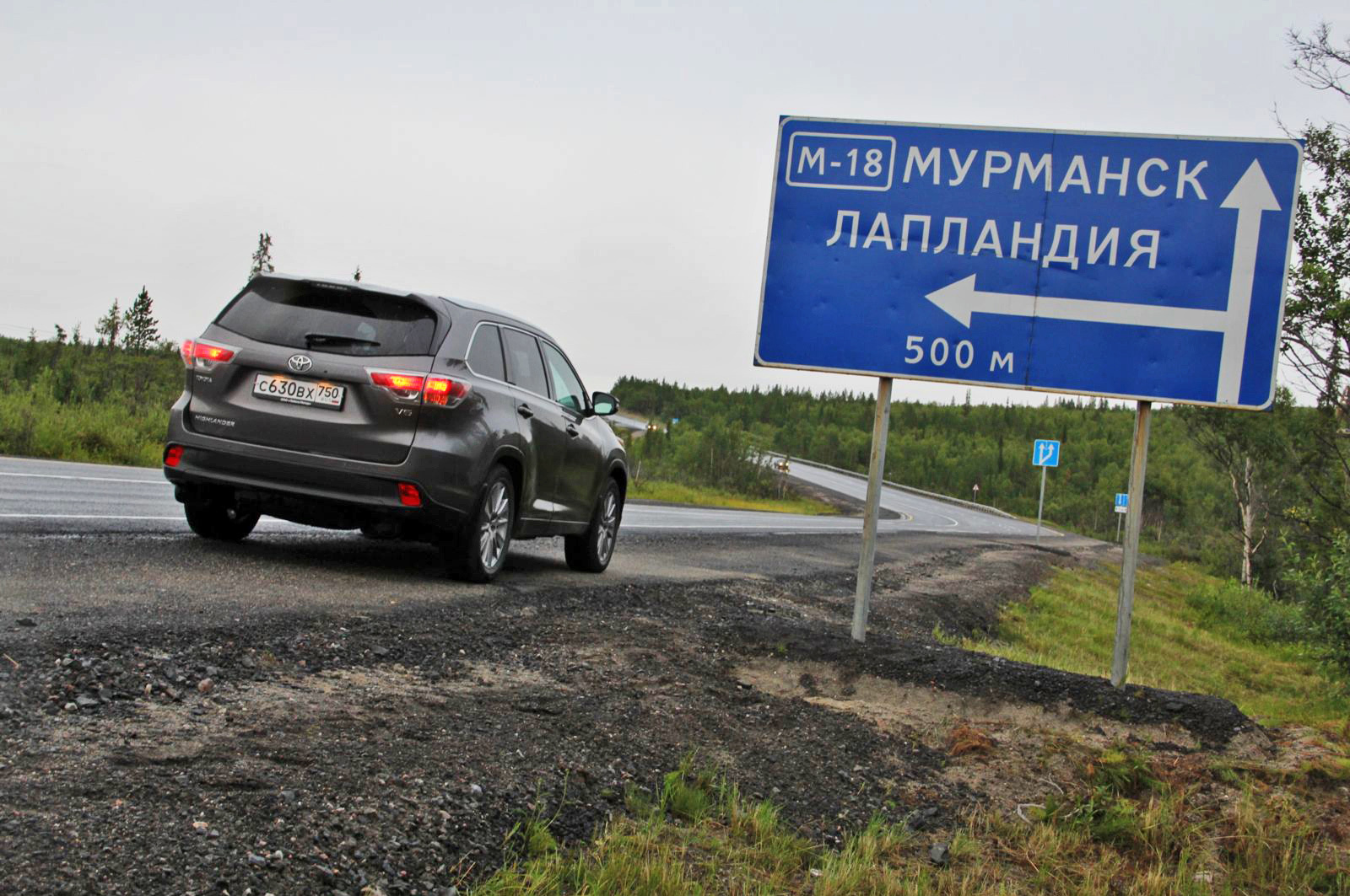 Шестьсот вёрст по трассе Е105, затем короткий перешеек через Волхов, далее правый поворот на трассу Кола... Дорога «за туманом» растянулась на два дня. За рулём шестицилиндрового Хайлендера «топить на дальняк» легко и приятно. Мощный мотор помогает совершать затяжные обгоны, «автомат» всегда знает, какая передача нужна в данный момент — смены происходят плавно и своевременно. Наконец, у кроссовера отличный ближний и дальний свет! Да и подвеска в целом комфортна. Разбитые участки можно проезжать ходом. Раскачки и дряблости нет. Но неподрессоренная масса тяжёлых 19-дюймовых колёс слишком велика — вибрации при проезде неровностей передаются на руль и сиденья. Портит настроение и необходимость частых заправок. Как ни ласкай акселератор, ниже одиннадцати литров на сотню не выходит. А чаще расход топлива приближается к двенадцати. В итоге 70-литрового бака хватает где-то на 450-470 км.