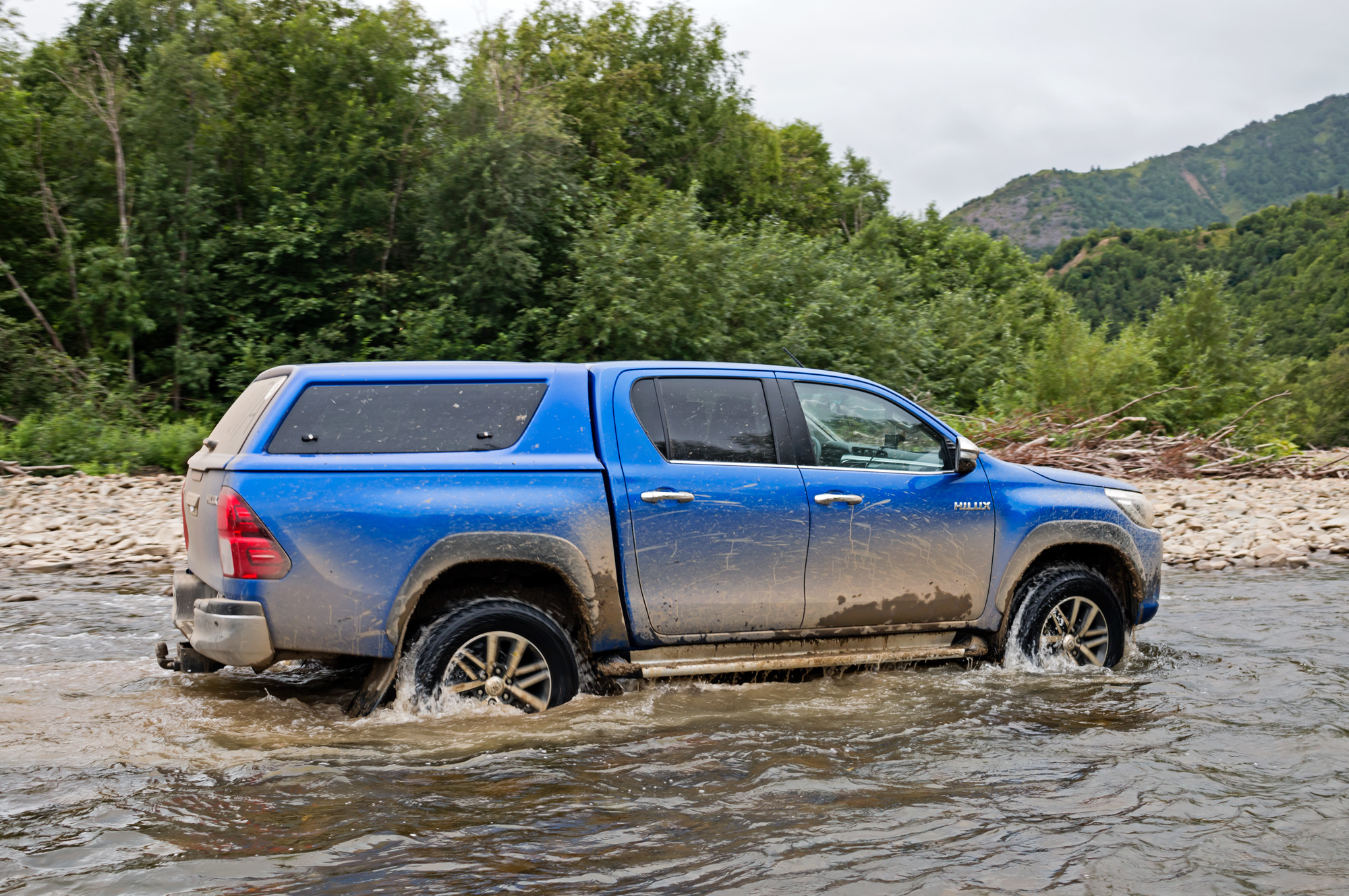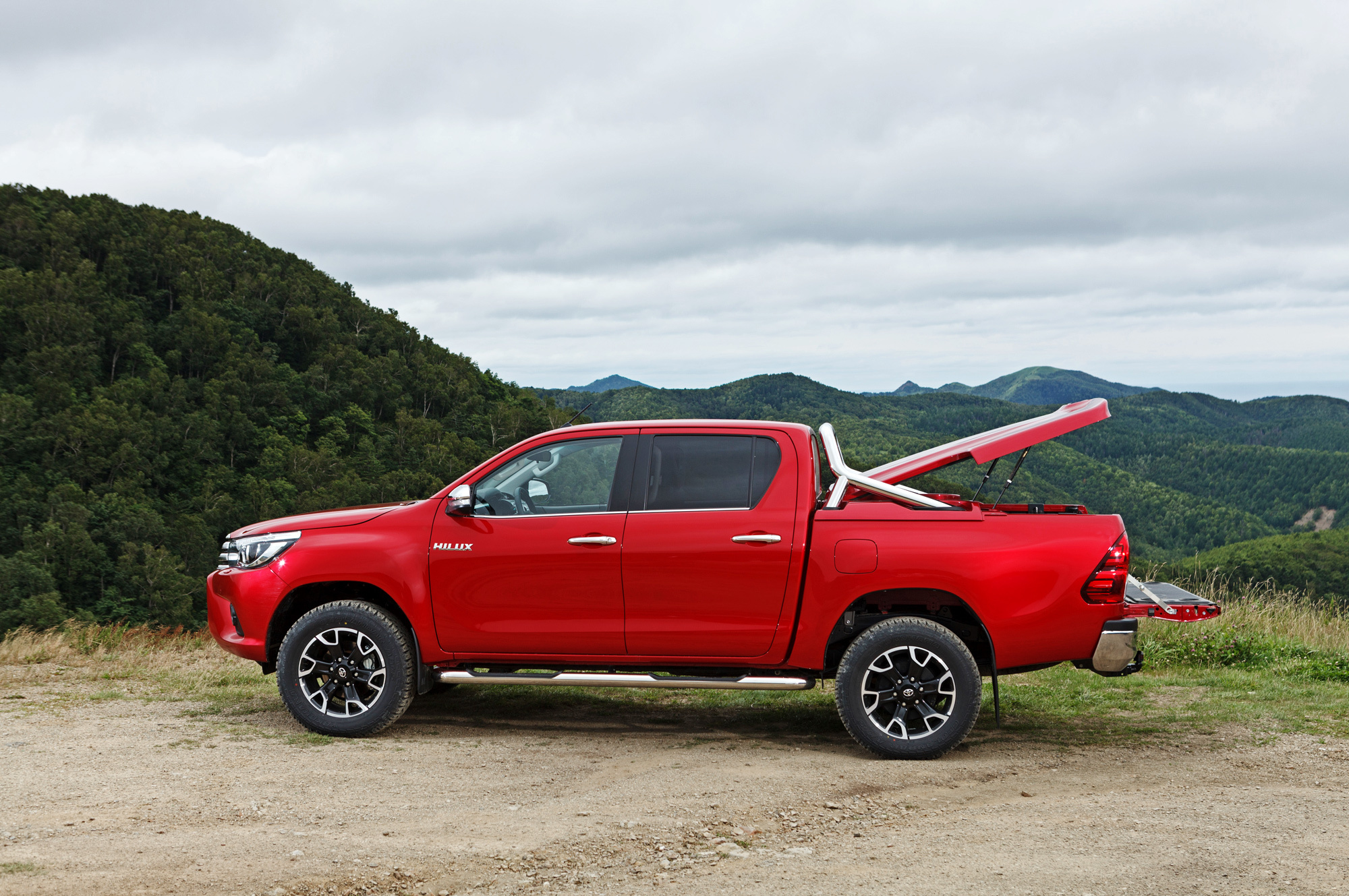 Электронную систему для облегчения подъёмов зовут HAC, для спусков — DAC, во всех модификациях Хайлакса предусмотрена система стабилизации прицепа TSC. А антипробуксовочная система A-TRC активная: при включении понижающей передачи 4L (передаточное число 2,566) подтормаживанием буксующих колёс она имитирует работу блокировок межколёсных дифференциалов. Вдобавок у пикапов с «механикой» есть функция iMT, которая поддерживает оптимальные обороты двигателя в момент выжима сцепления. В общем, справится и Дюймовочка.