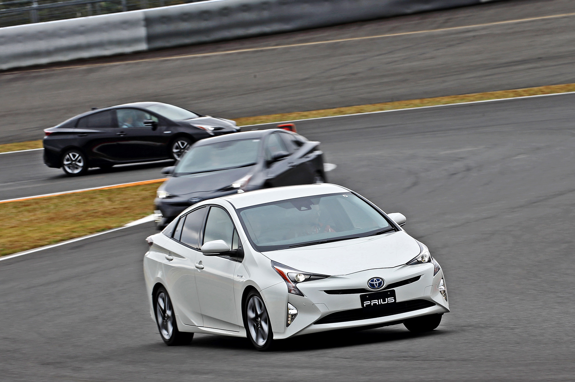Большущий зал с подвешенными экранами, распечатанные слайды презентации, чай и зелёный KitKat со вкусом васаби. Чувствуешь себя депутатом на каком-нибудь пленарном заседании, но за окном знаменитый трек Fuji Speedway, а все речи — о гибридомобиле Toyota Prius четвёртого поколения. Оценили, какой красавчик? Увидев первые фото, я забыл о его гибридности: залюбовался! Но теперь о технике придётся вспомнить — впервые после франкфуртской премьеры на новом Приусе можно поездить. Правда, недалеко и под предводительством инструктора на чёрном седане Toyota Camry с мигалкой.