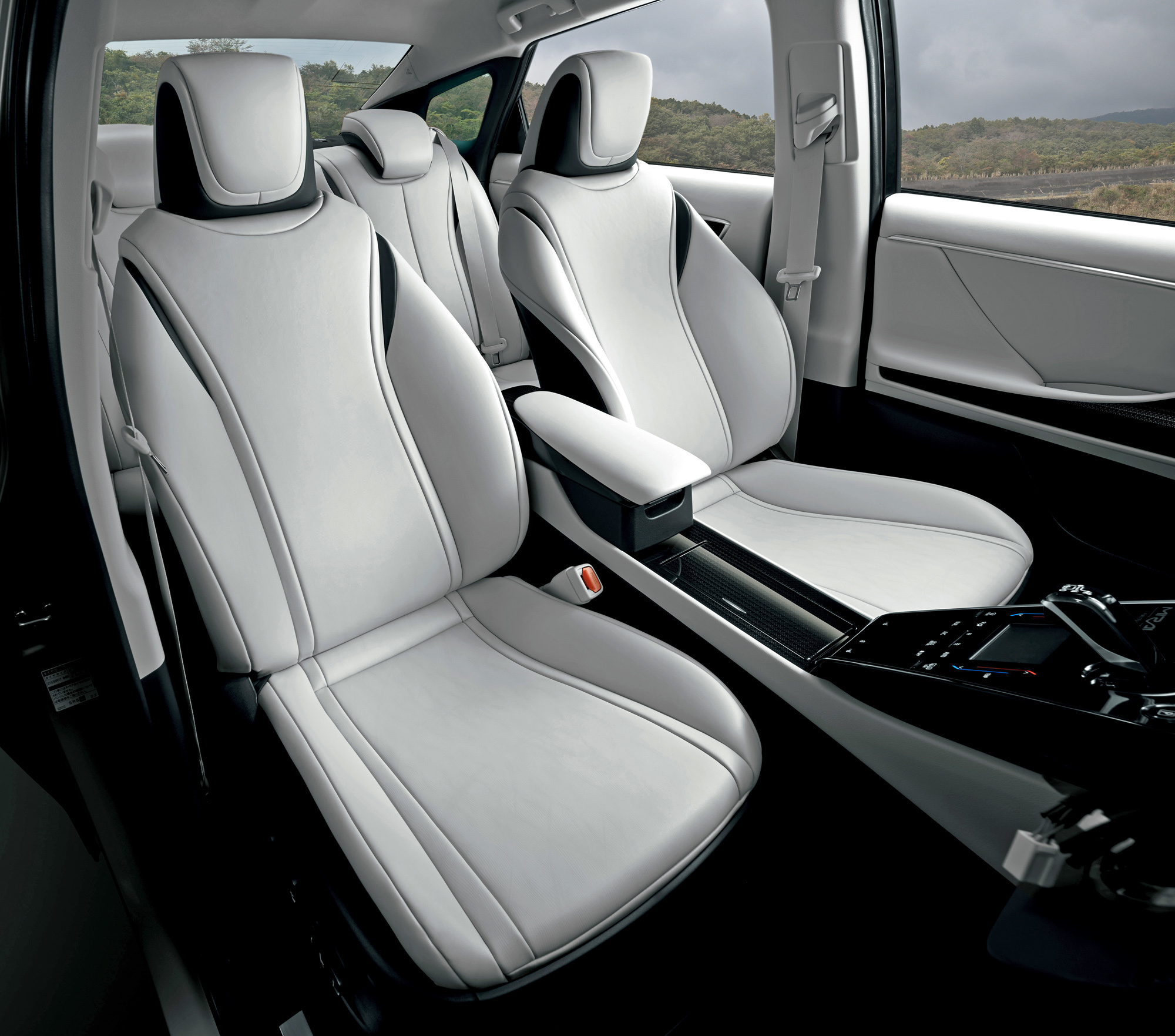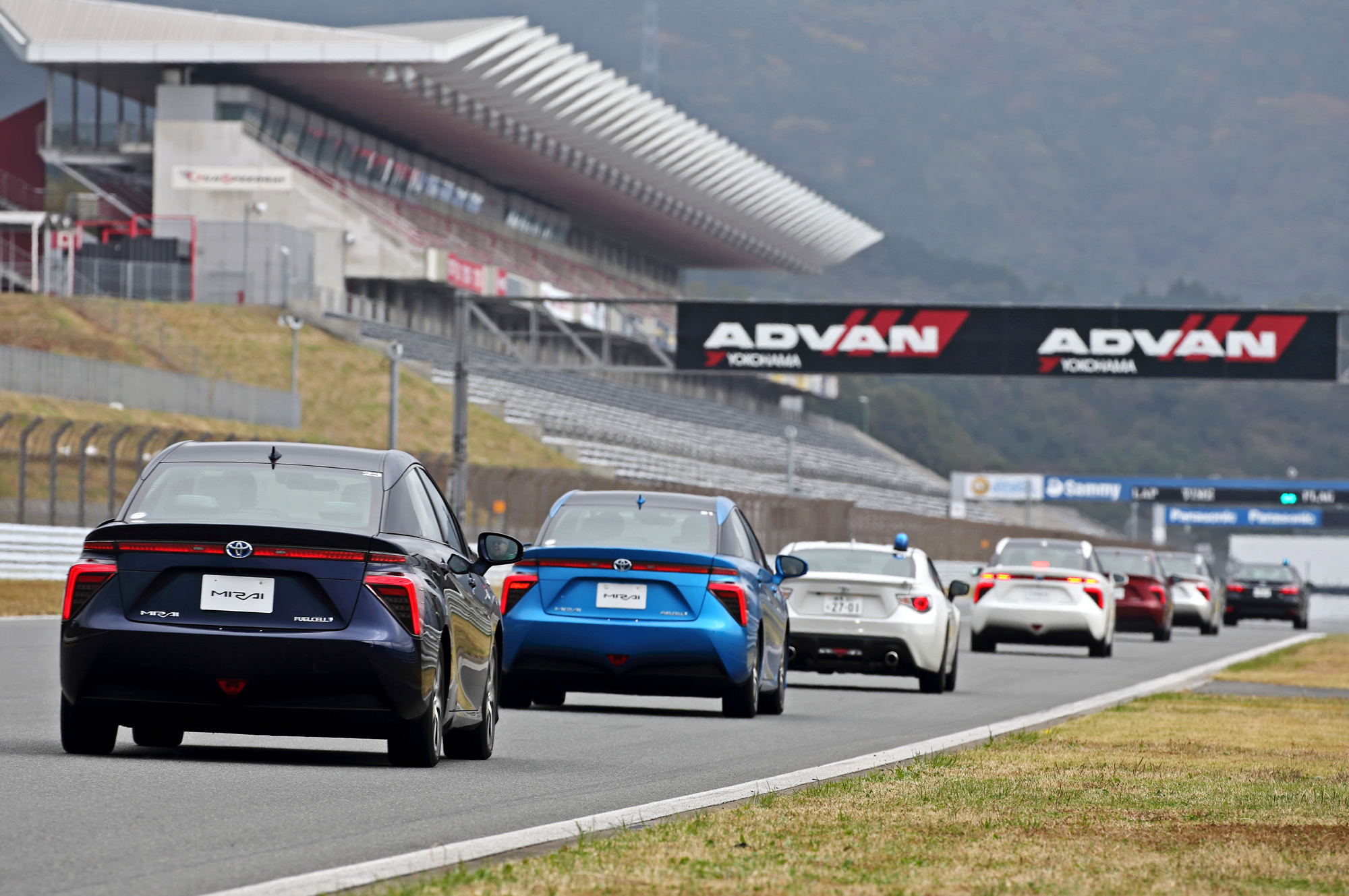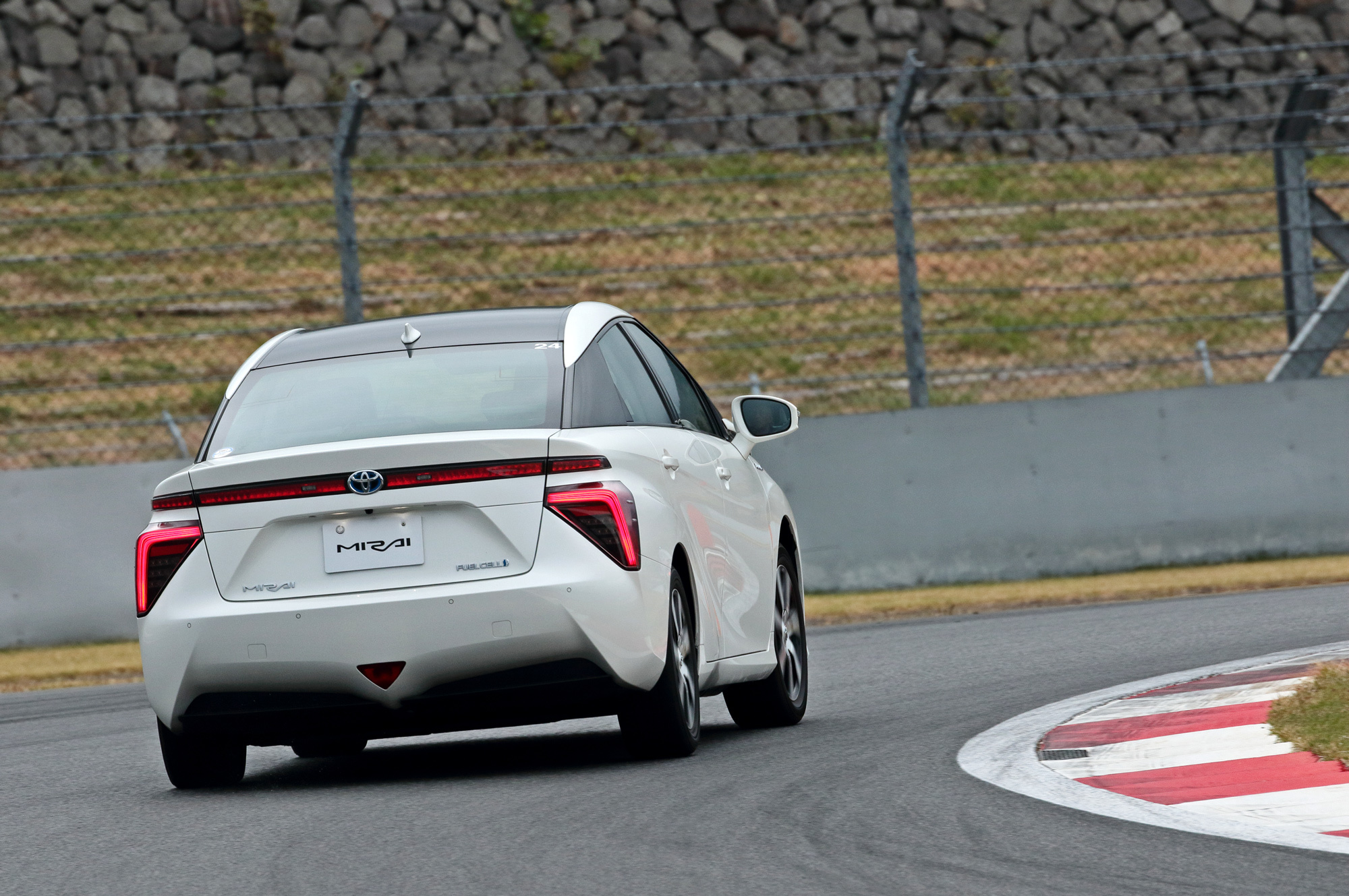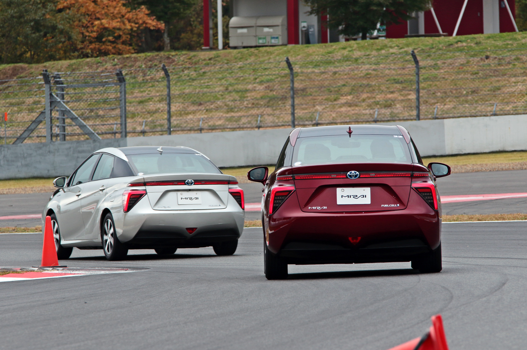 Если бы не сенсорная консоль с отдельным климатическим дисплеем, внутри Mirai можно было бы спутать с Приусом: «обёрнутая» передняя панель, приборы в центре, тот же руль и похожие жёсткие кресла. Привычно тяну к себе и вниз крошку-селектор ― и почти бесшумно выкатываюсь на Fuji Speedway. Вспомните, как наш главред описывал звуковое наполнение водородного Мерседеса В-класса: подвывание электромотора, журчание планетарной передачи, щелчки при переключении режимов силовой установки. Здесь под креслом, где водородный генератор, тоже что-то шипит и журчит, но в целом Mirai примерно вдвое тише негромкого Приуса.