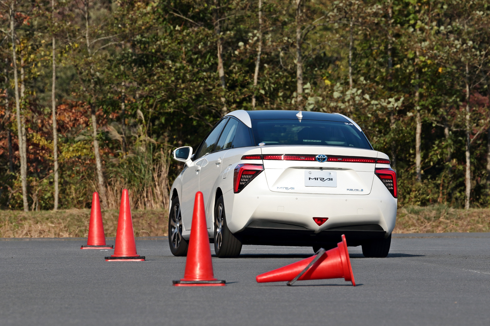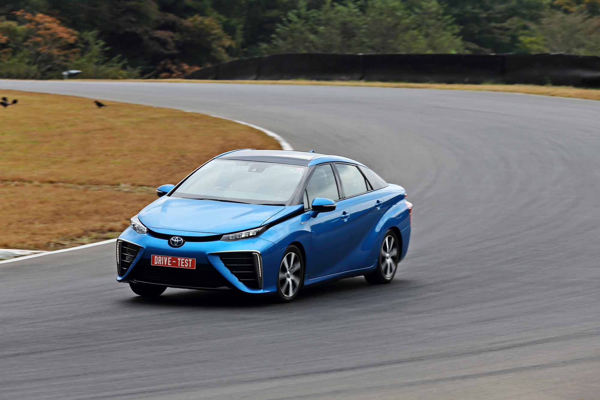 Динамика бодрее приусиной: всё-таки 335 Н•м и 155 сил — это больше, чем у гибридных ДВС и электромотора вместе взятых. Паспортное преимущество водородомобиля ― 9,6 с до сотни против 10,6. Управлять тягой легко и просто, причём она не исчезает и после 120 км/ч. Но главное ездовое отличие ― в поворотах: Mirai заезжает в них, как Prius, гружённый до полной массы. Усилие на руле и реакции сносные, но лишние 500 кг (из общих 1850) ты ощущаешь, будто свои. Крены больше, подвеска размягчённее. Важно, что Mirai построен не из кубиков TNGA, как новый Prius, а на основе однообъёмника Prius v прежнего поколения.