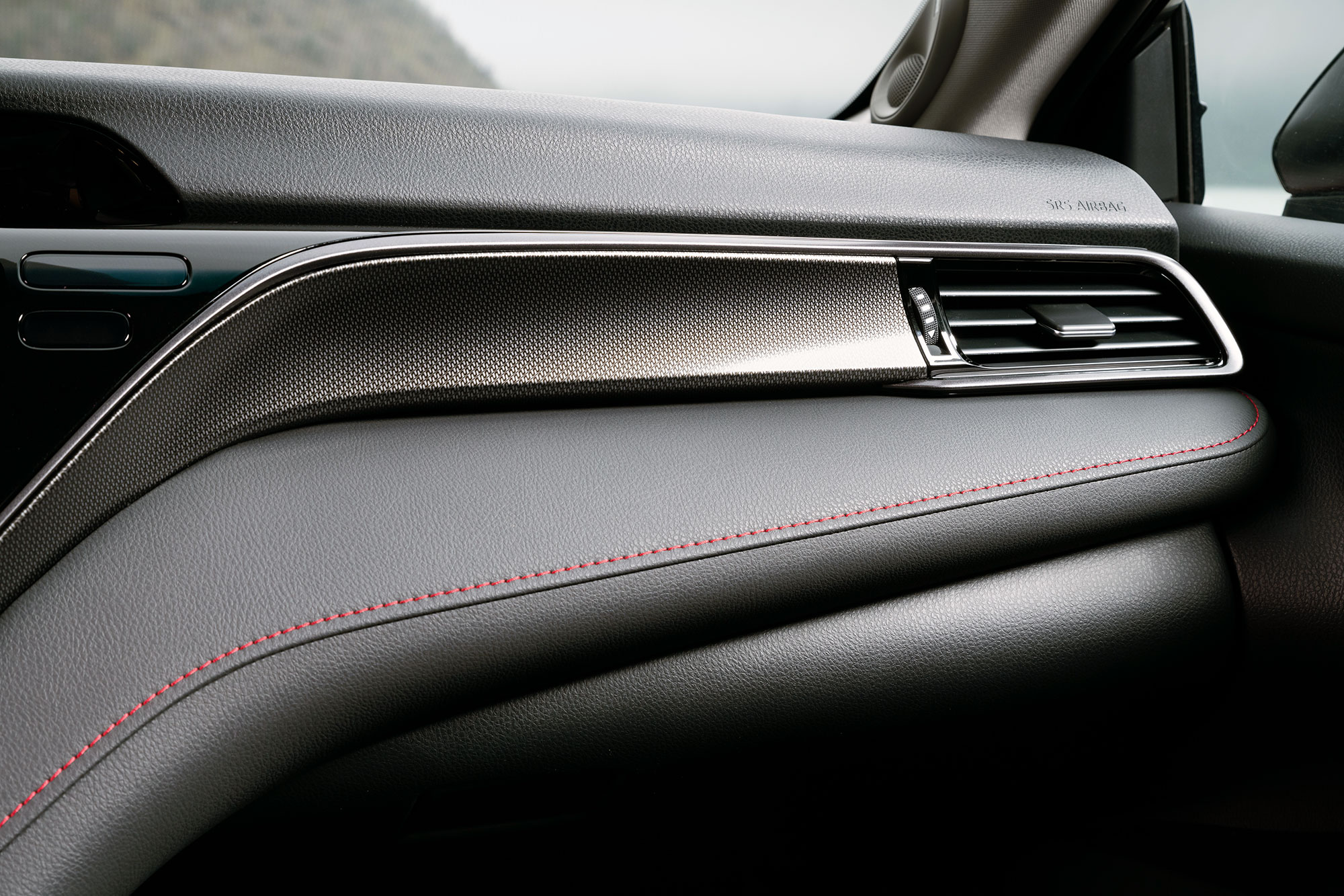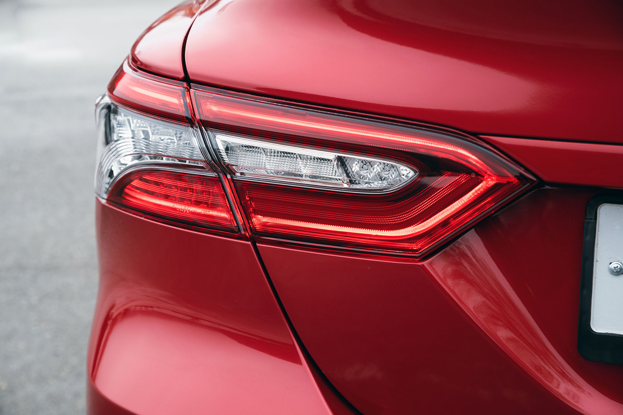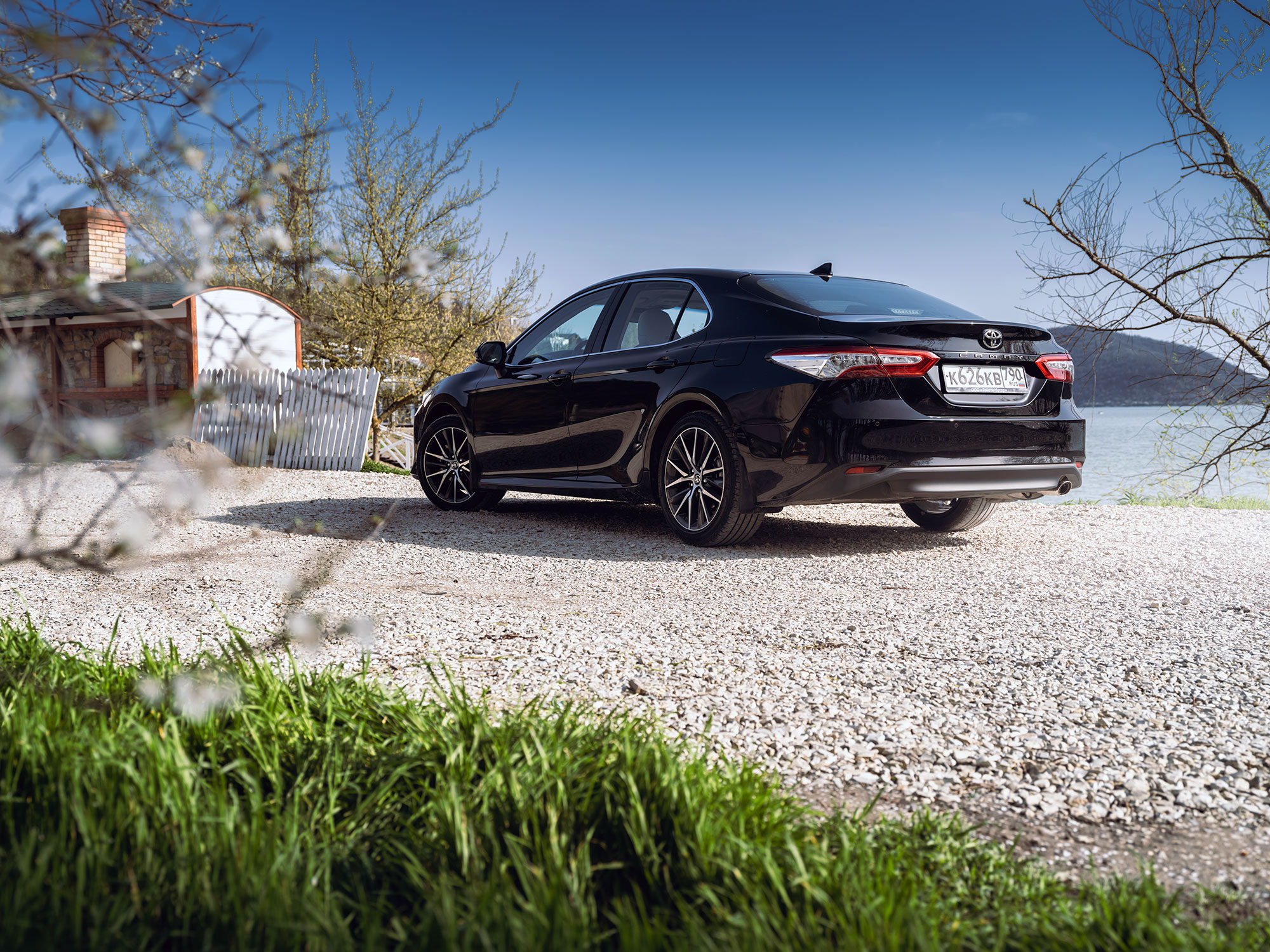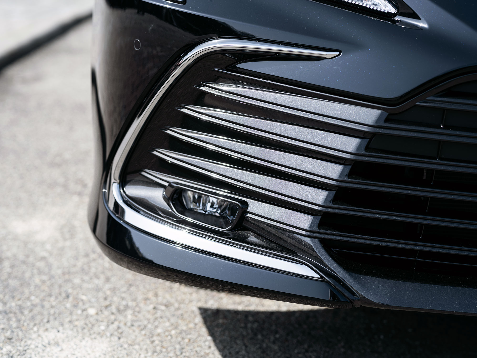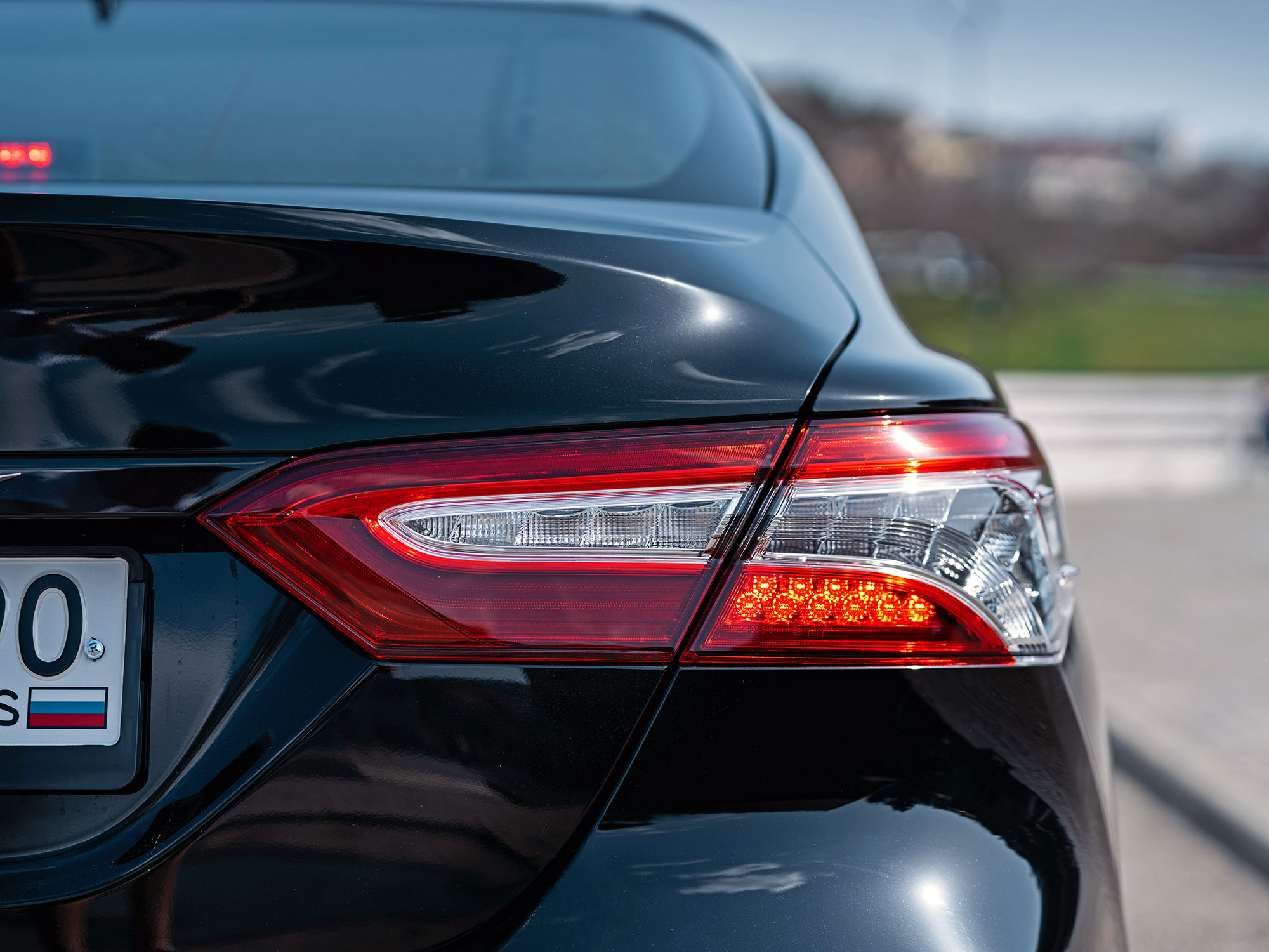 Визуально отличить обновлённый седан Toyota Camry восьмого поколения от предшественника непросто. Даже журналистский штамп про «косметику» не подтянешь. Изменено обрамление широкой решётки радиатора: шеголеватые С-образные декоративные вставки могут быть чёрными, серебряными или хромированными в зависимости от комплектации. Дизайн колёс поменялся — да разве ж углядишь на ходу.