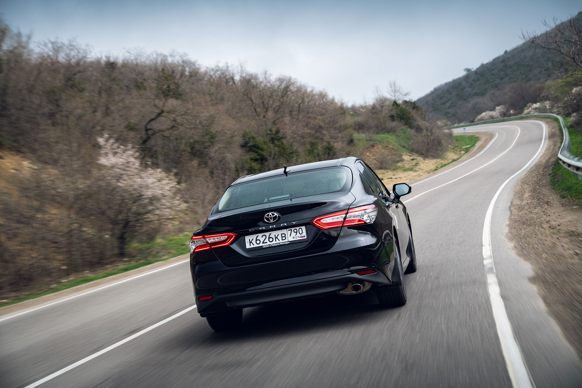 Между старой и новой модификациями 2.5 нет такого контраста, как у двухлитровых, но перемены всё же заметны. Прибавка на 19 сил и 12 Н•м позволяет обновлённой Camry быть чуточку живее во всём диапазоне скоростей. Какого-то роста шума или вибронагрузки от мотора A25A-FKS с комбинированным впрыском не замечено. Восьмидиапазонный «автомат» работает оперативнее и плавнее прежней шестиступенчатой коробки.