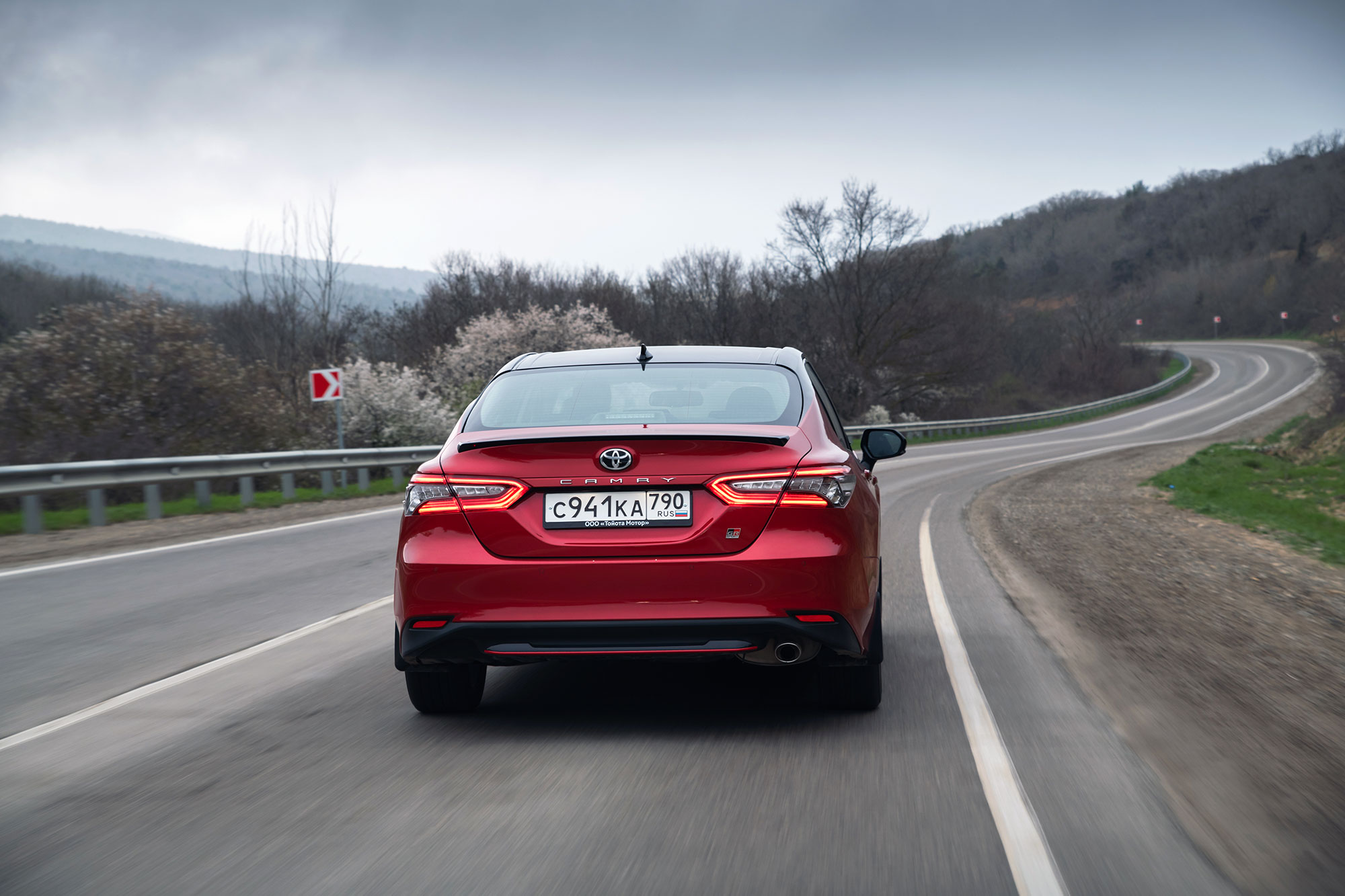 Легкоузнаваема только версия GR Sport, пришедшая на смену исполнению S-Edition. Спорт, правда, сводится исключительно к стайлингу и на технику не влияет. Но ярко-красный кузов с чёрной крышей по крайней мере выделяется среди чёрно-белой массы прочих Camry. Заказать такой броский автомобиль можно c двумя старшими моторами. Причём шестицилиндровый GR Sport отличается прозрачными фонарями, чёрными рамками окон, колёсами и молдингами.