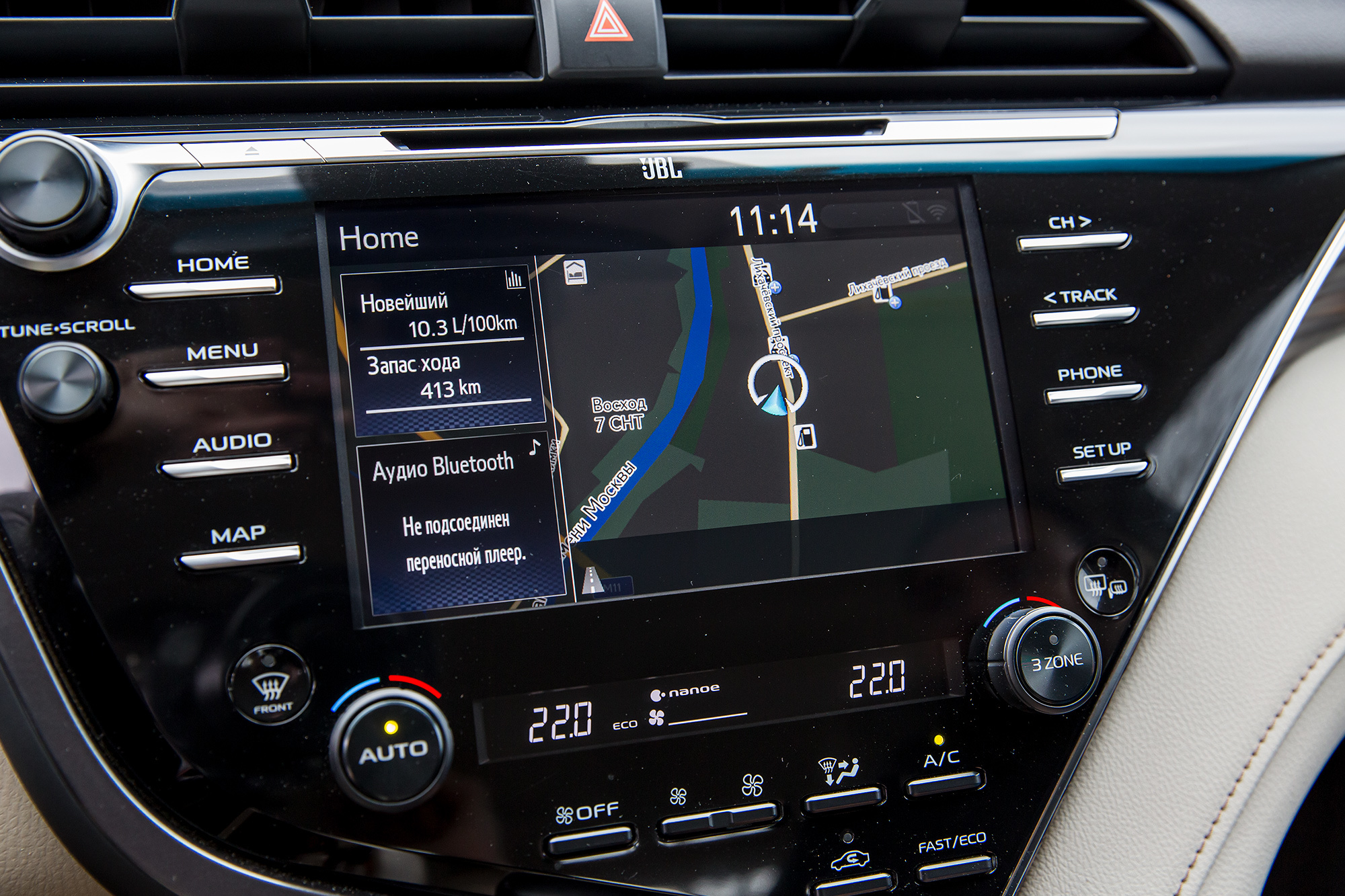 Про интерьер Тойоты говорено сто раз, но лично я ещё не сталкивался со светлым вариантом отделки. Японцы почему-то выбрали два оттенка бежевой кожи, и тот, что темнее, кажется просто грязным. Тут слишком много разных фактур, и кнопки в разных частях салона нажимаются с разным усилием, вызывая ощущения сборной солянки. В Сонате и материалы подобраны скрупулёзно, и все клавиши срабатывают с одинаковым мягким щелчком.