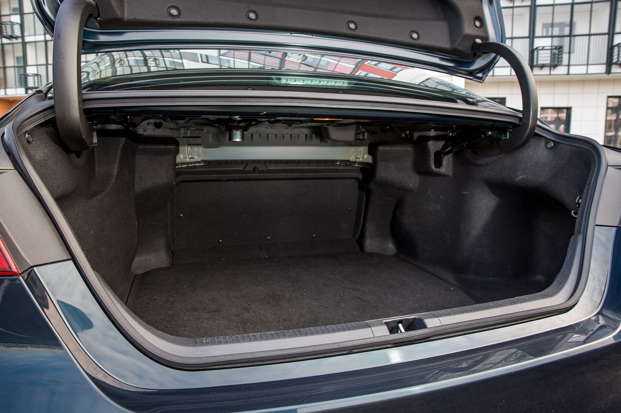 Главное отличие между нашими героями, на мой взгляд, идеологическое. Sonata в большей степени адресована частнику. Её внешняя — нет, не красота — смелость рассчитана не на пассажира, не на того, кто подходит со стороны задней правой двери. Градиентные габаритные огни и чёрные лакированные пороги должны привлечь покупателя-индивидуалиста.
