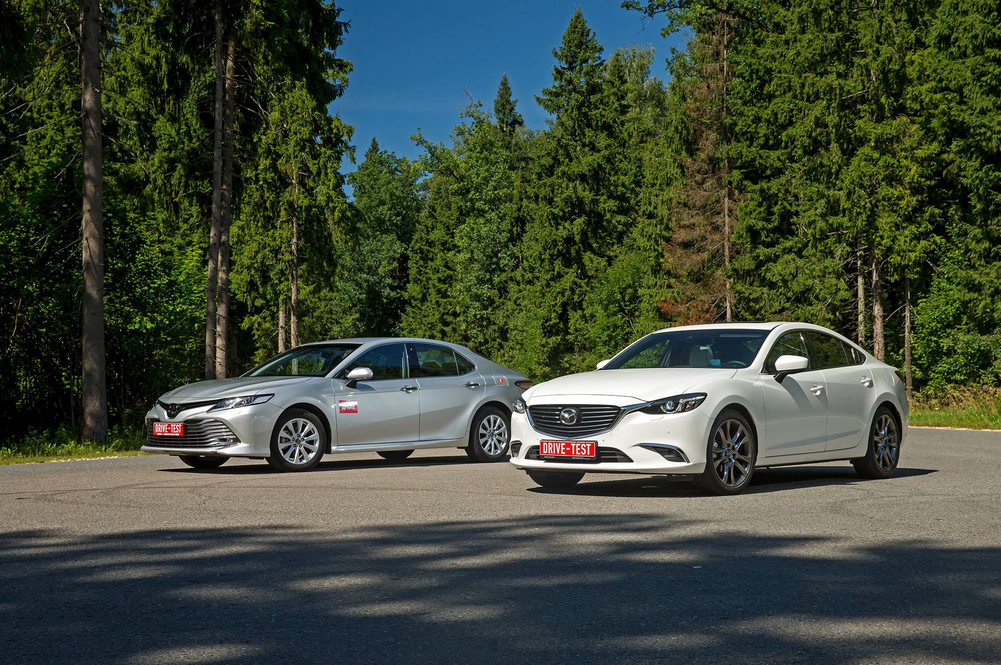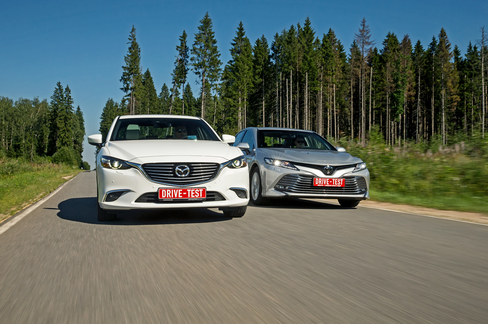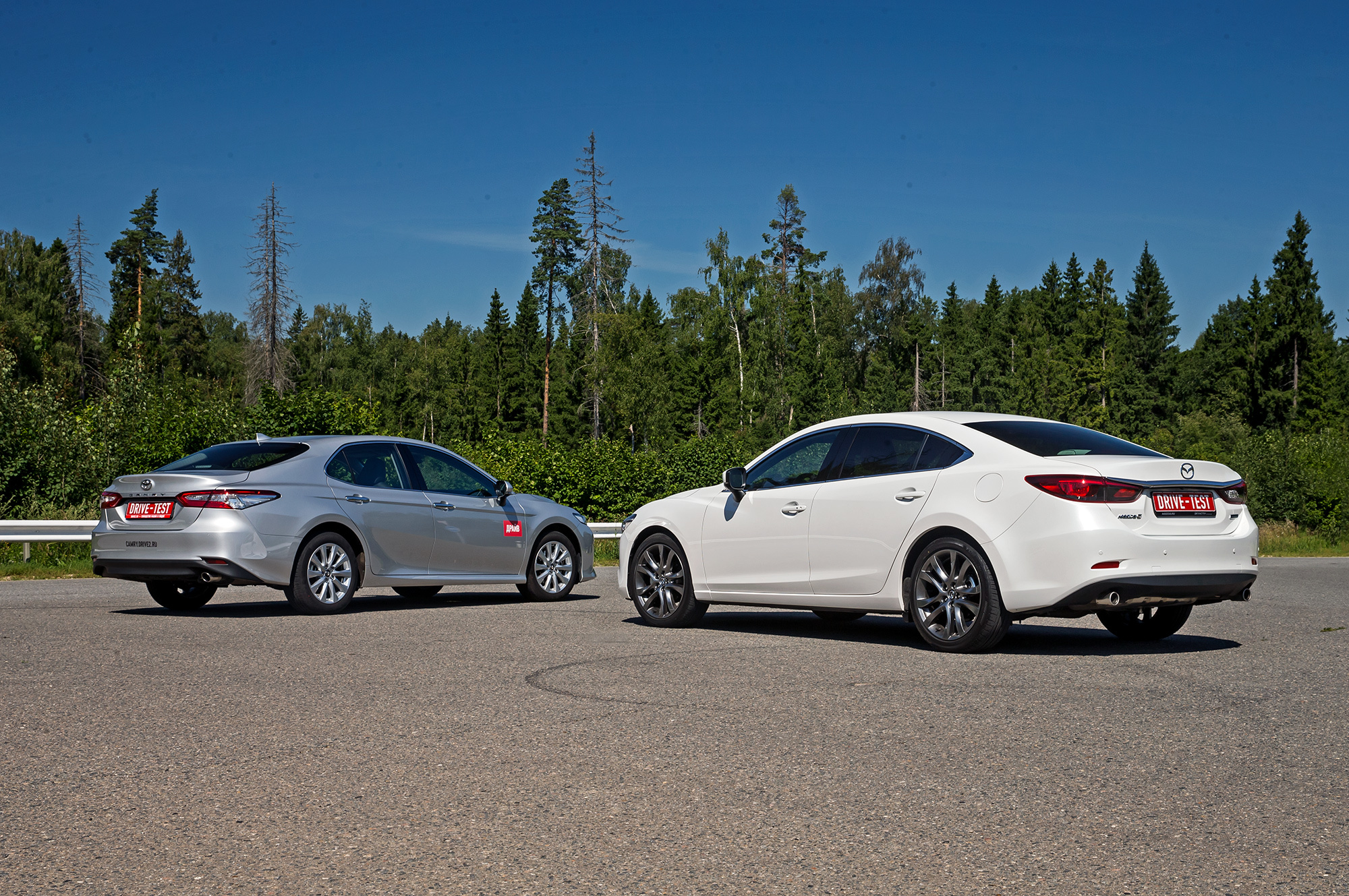 У Мазды — высокотехнологичный мотор с непосредственным впрыском, почти гоночным выпускным коллектором и высокой степенью сжатия. Незамысловатый двигатель Camry — из прошлого. Тем не менее предельные возможности отличаются несильно. При аж двухсекундной разнице в заявленном времени разгона до сотни от Мазды ждёшь подавляющего преимущества. Но и сама она в реальности не так быстра (лучшее время с одним водителем при неполной заправке — 8,4 с), и Camry на замерах показывает результат лучше паспортного. При удачном старте Mazda набирает 100 км/ч с отрывом в корпус. А что расход близок — так «шестёрка» располагает притопить.