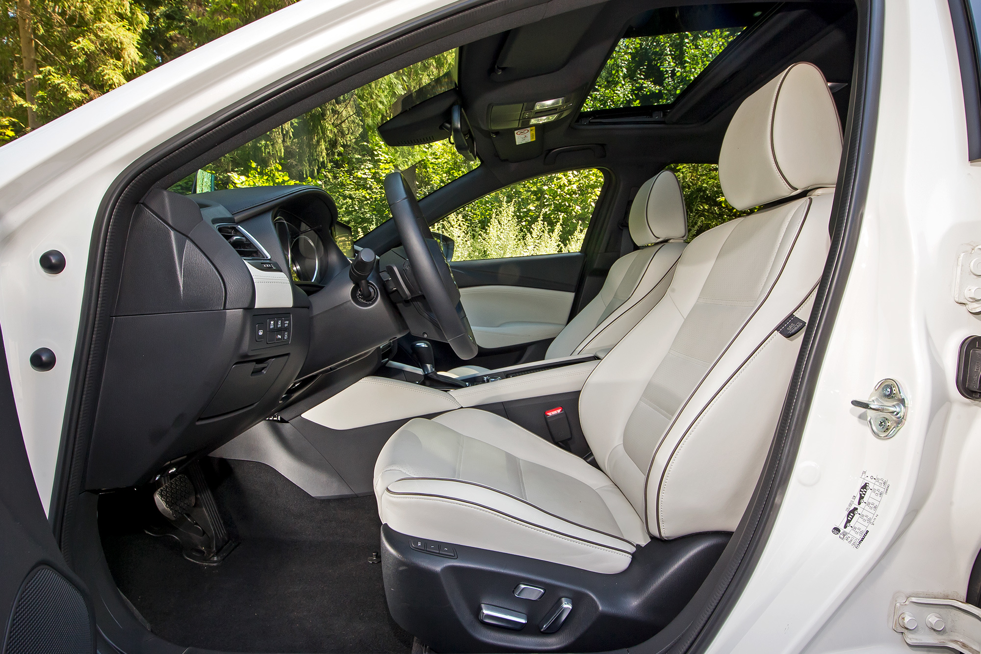 С набранной скоростью надо как-то управляться, и тут Mazda 6 озадачивает. Отзывчивость на разгоне, сравнительная жёсткость подвески и густой шум качения вроде к чему-то готовят. Увы, «шестёрка» кажется спортивнее, чем есть на самом деле. До рестайлинга она была настолько азартной, что я даже разбился на съёмках — вот до чего увлёкся. Теперь разбить хочется лоб о ближайшее к извилистой дороге дерево — по-че-му ты не по-во-ра-чи-ва-ешь? Несмотря на какой-то там G-Vectoring, седан заезжает в вираж неохотно и, встав на дугу, явно испытывает напряжение, стремится выровнять траекторию.