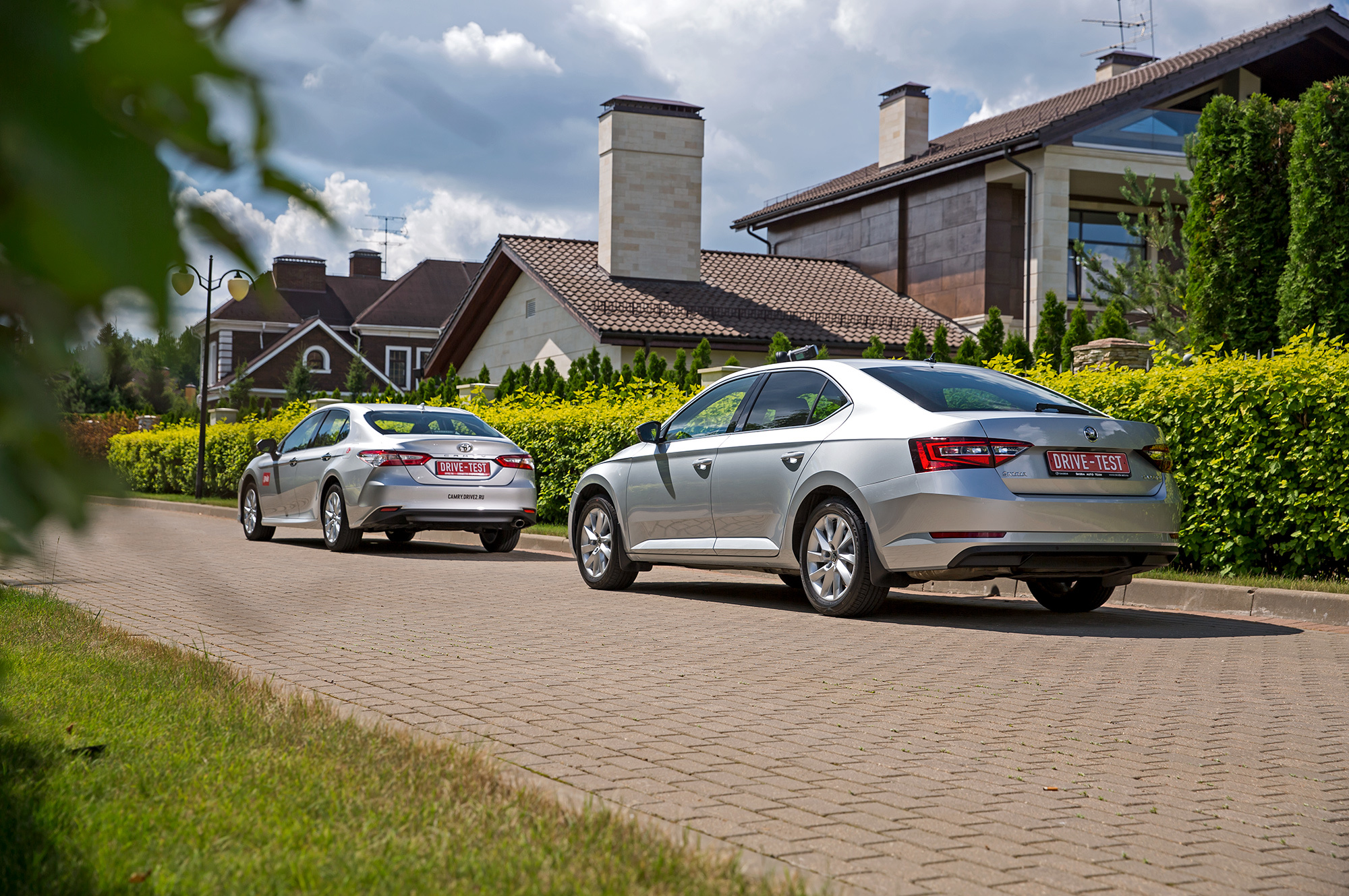 На круг Superb и Camry не показались нам такими уж непохожими. У них разные слабости: Toyota медленнее и в ней маловато места, в Шкоде чуть хуже посадка спереди и заметно не хватает ездового комфорта. Однако оценивай мы их по балльной системе, они набрали бы поровну. А раз так, то наценка за Superb не кажется нам очевидной, если только у клиента нет специфических требований к грузопассажирским возможностям.