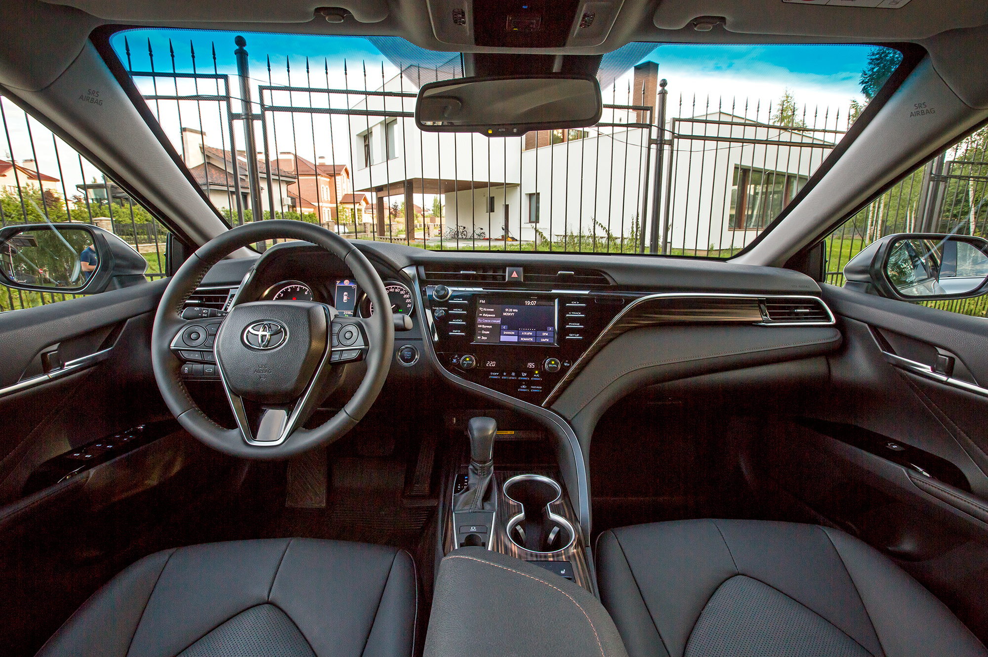 Мотора Тойоте хватает. Но в среднем темпе её шестиступенчатый «автомат» пребывает в постоянном поиске нужной передачи, а напольный акселератор требует работы в больших углах. Проще всего найти общий язык с Camry либо при наиболее спокойном перемещении, либо при езде в отсечку. Увы, ни тот ни другой режим не назовёшь оптимальным в условиях обычного городского движения.