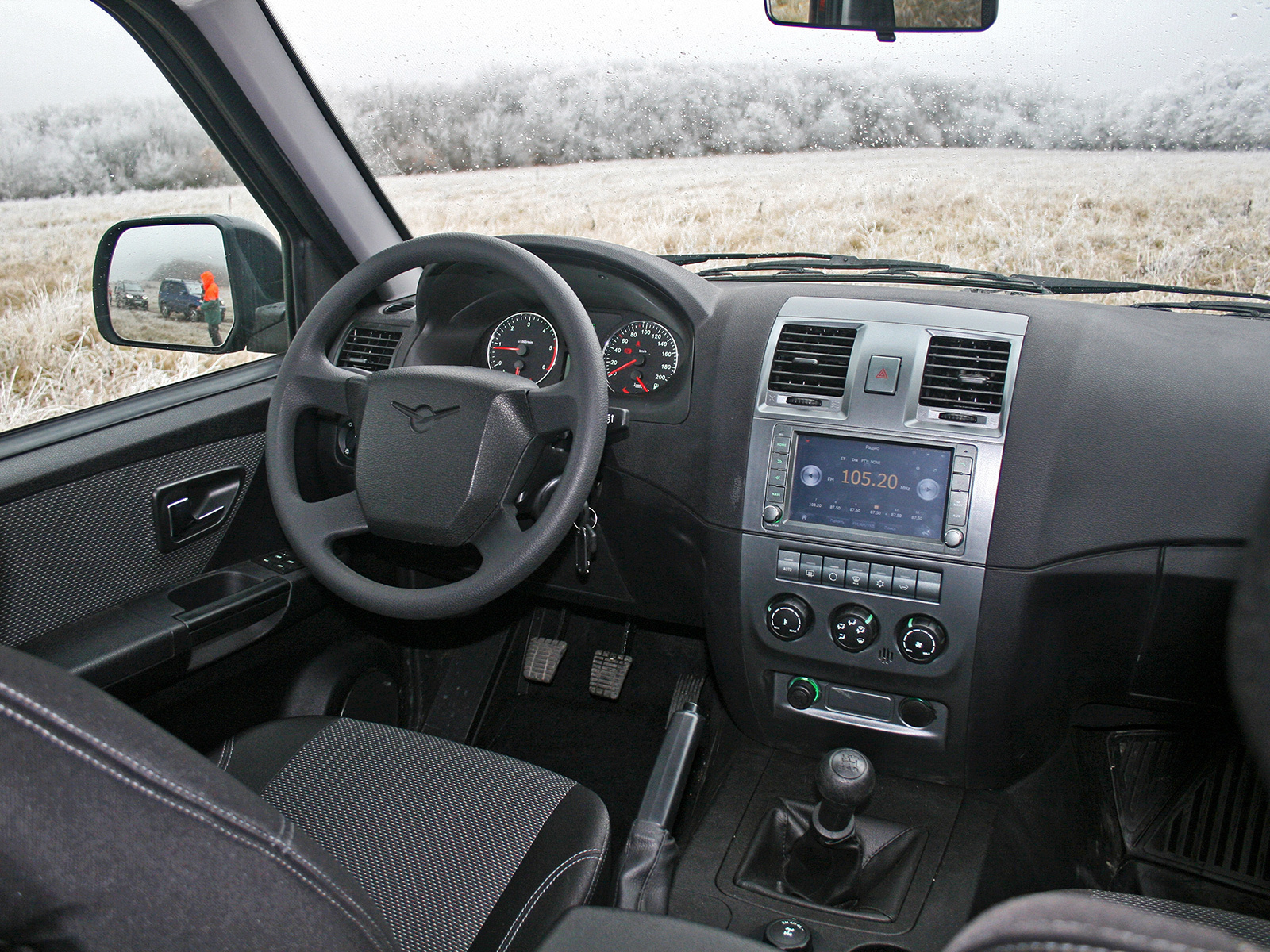 — Ту-ту-ту-ту, — предваряет запуск двигателя стартёр, затем Patriot дёргается вбок: завёлся. Место водителя по исторически-компоновочным причинам сильно смещено влево, и при росте 176 см я едва не упираюсь плечом в среднюю стойку. Руль — огромный: от обода до двери меньше смартфона, а пальцы к подрулевым рычажкам приходится тянуть не столько вперёд, сколько внутрь. Первая передача, мягкое срабатывание сцепления… Еду! Это целое событие: Patriot хочет направо, я его держу, рвётся налево — вновь парирую. По асфальту ведёшь его, будто пьяного. А чтобы Patriot протрезвел, надо не трогать лёгкий руль вовсе либо пересилить себя — и разогнаться.