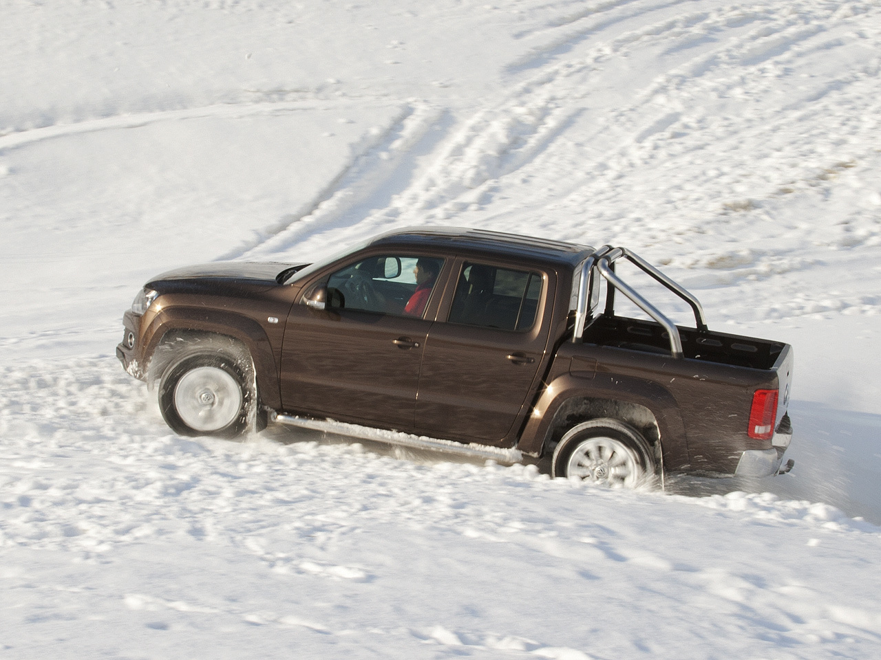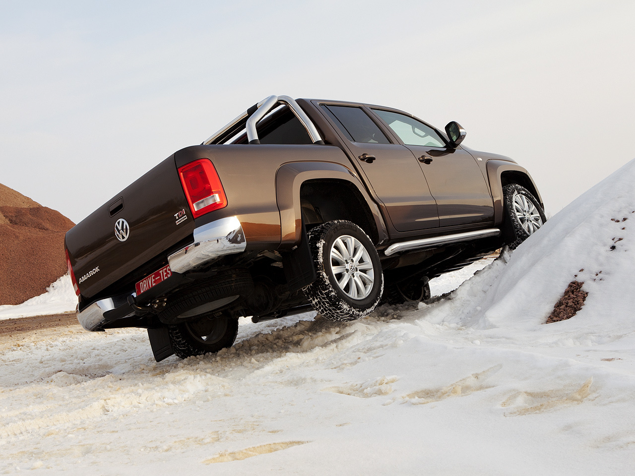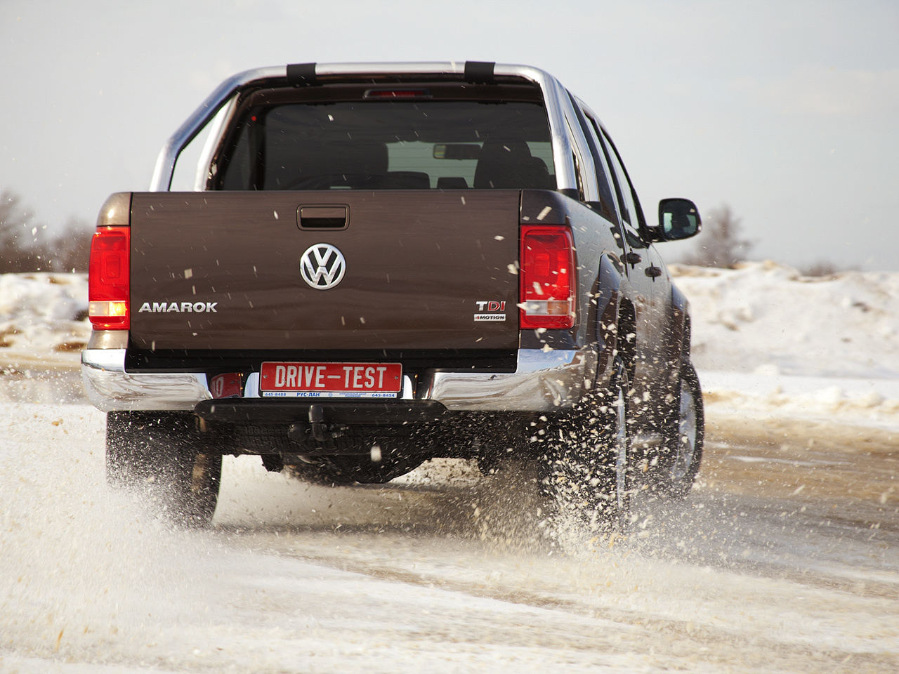 С проходимостью не всё просто. Вроде бы внедорожный арсенал у Амарока — на зависть многим. Тут и жёстко подключаемый привод передней оси, и понижающая передача, и даже блокировка заднего дифференциала предусмотрена. В купе с более чем внушительным клиренсом всё это воодушевляет на внедорожные подвиги. Но реальность преподносит сюрприз: по снежной целине пикап в полноприводном режиме идёт как лыжник по асфальту — в час по чайной ложке. Ехать на моменте мешают неоптимальная характеристика битурбодизеля и разгруженная задняя ось. Тяги то пусто, то густо, и колёса постоянно срываются в бесконтрольную пробуксовку. «Понижайка» и межколёсная блокировка в таких условиях вообще бесполезны — Amarok моментально закапывается.