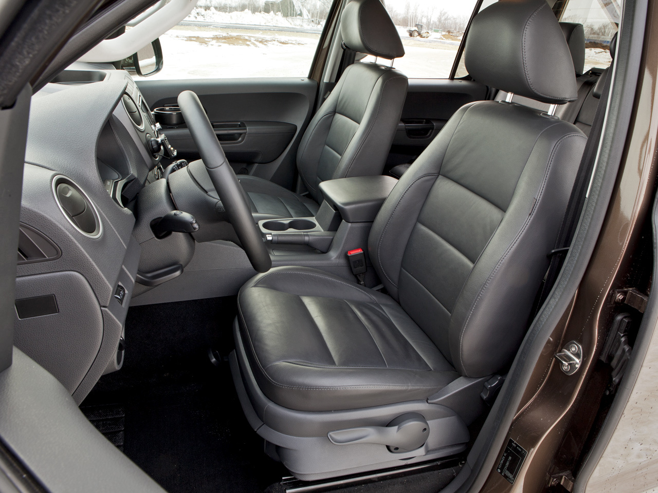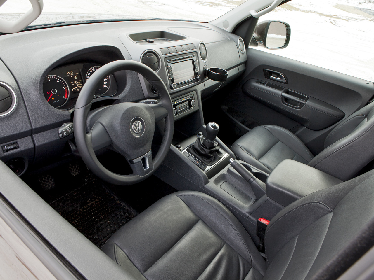 Пухленький руль, подрулевые рычажки, типовые приборы... Всё это и многое другое Amarok унаследовал от легковых Фольксвагенов. Материалы отделки, конечно, погрубее, но эргономика выверена без скидок на утилитарность. Места на втором ряду достаточно, хотя попасть туда сложно: задние двери заметно уже передних, порог высок, а подножка пикапу не положена. Зато, вопреки ожиданиям, свобода пассажиров достигнута, не за счёт куцего диванчика с вертикальной спинкой, чем грешат некоторые конкуренты. Нет: задние места по удобству посадки лишь немногим уступают пятидверным внедорожникам.