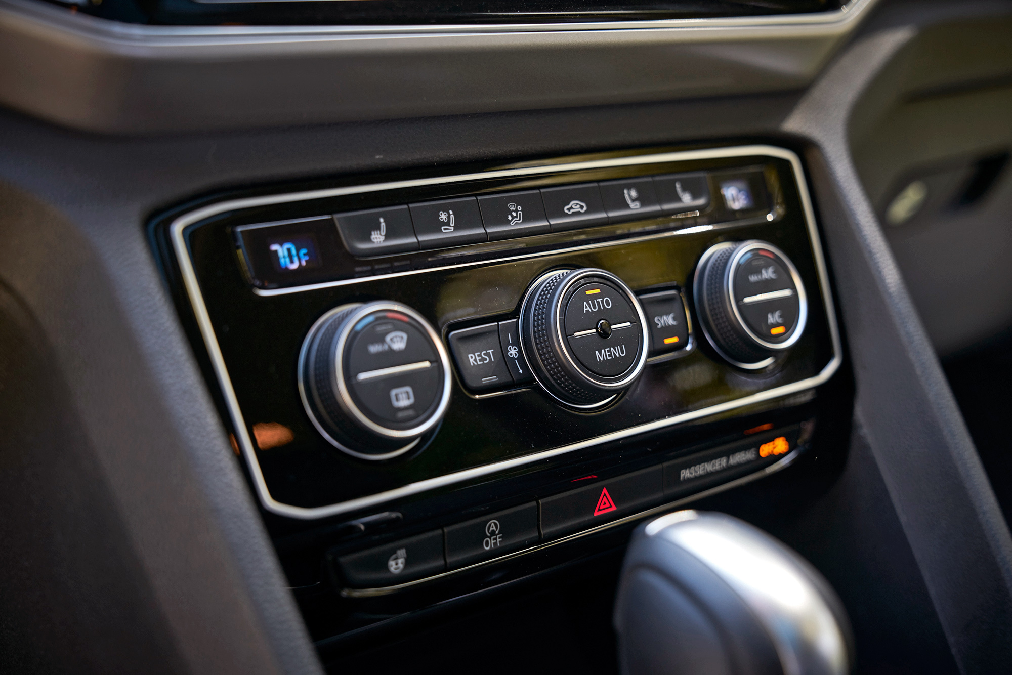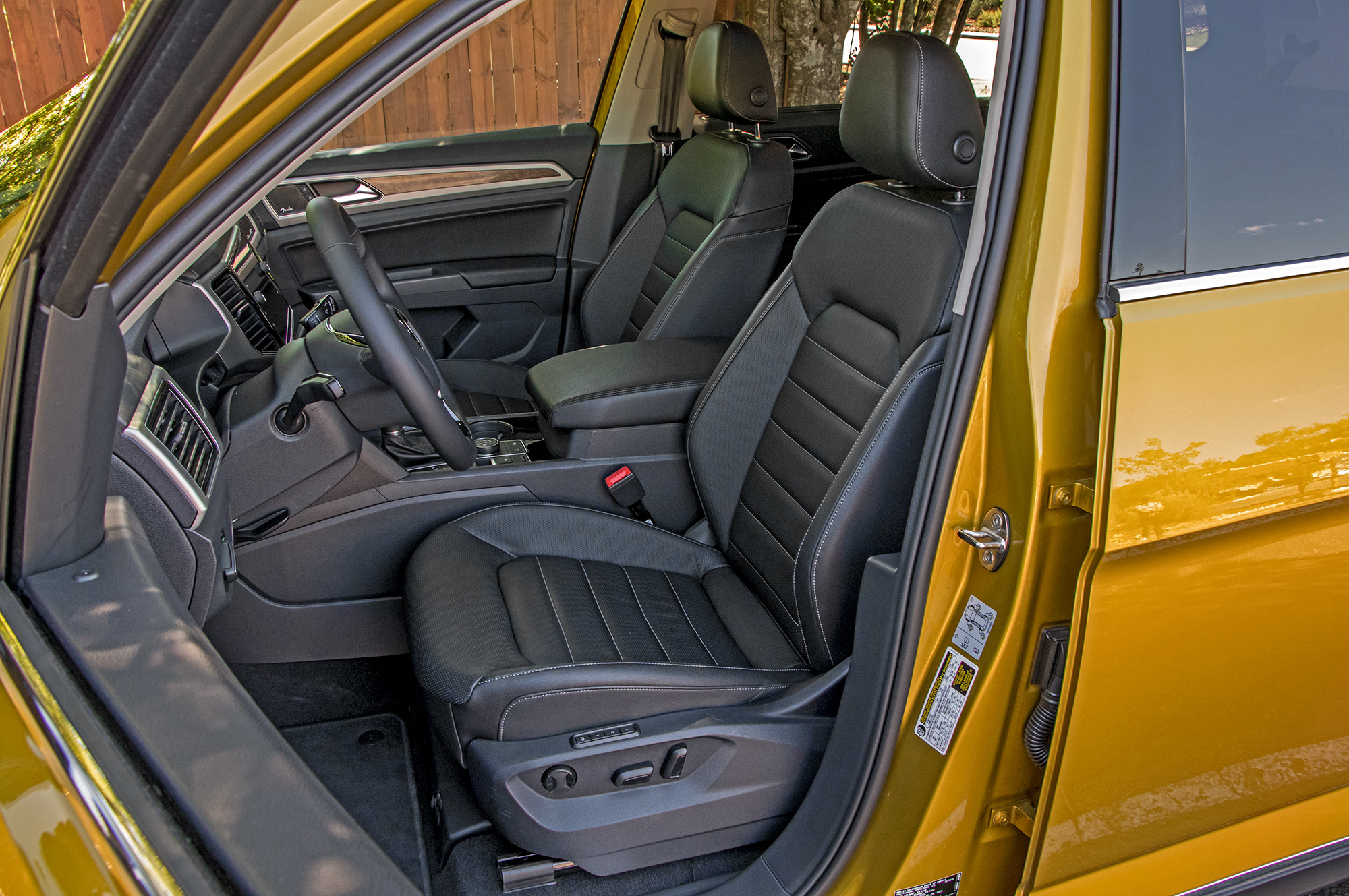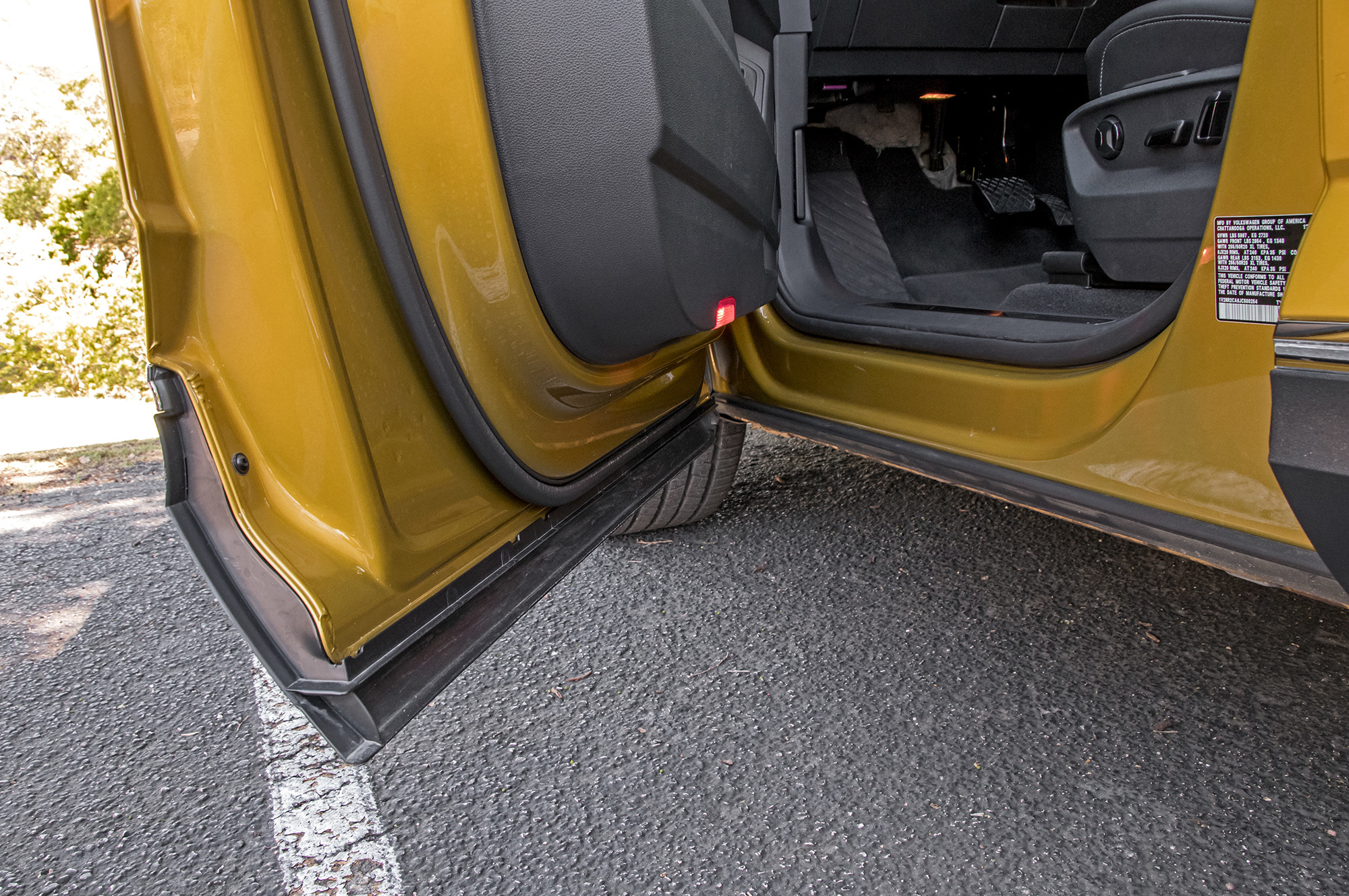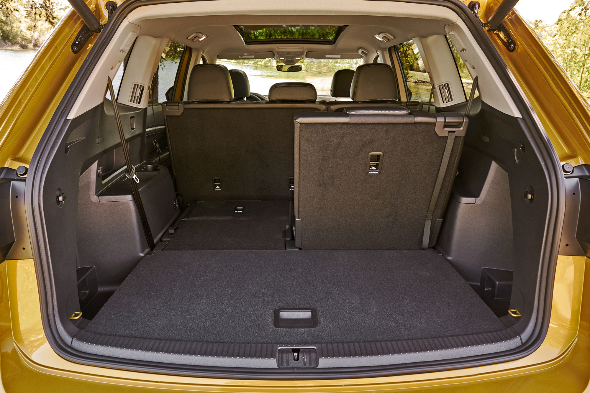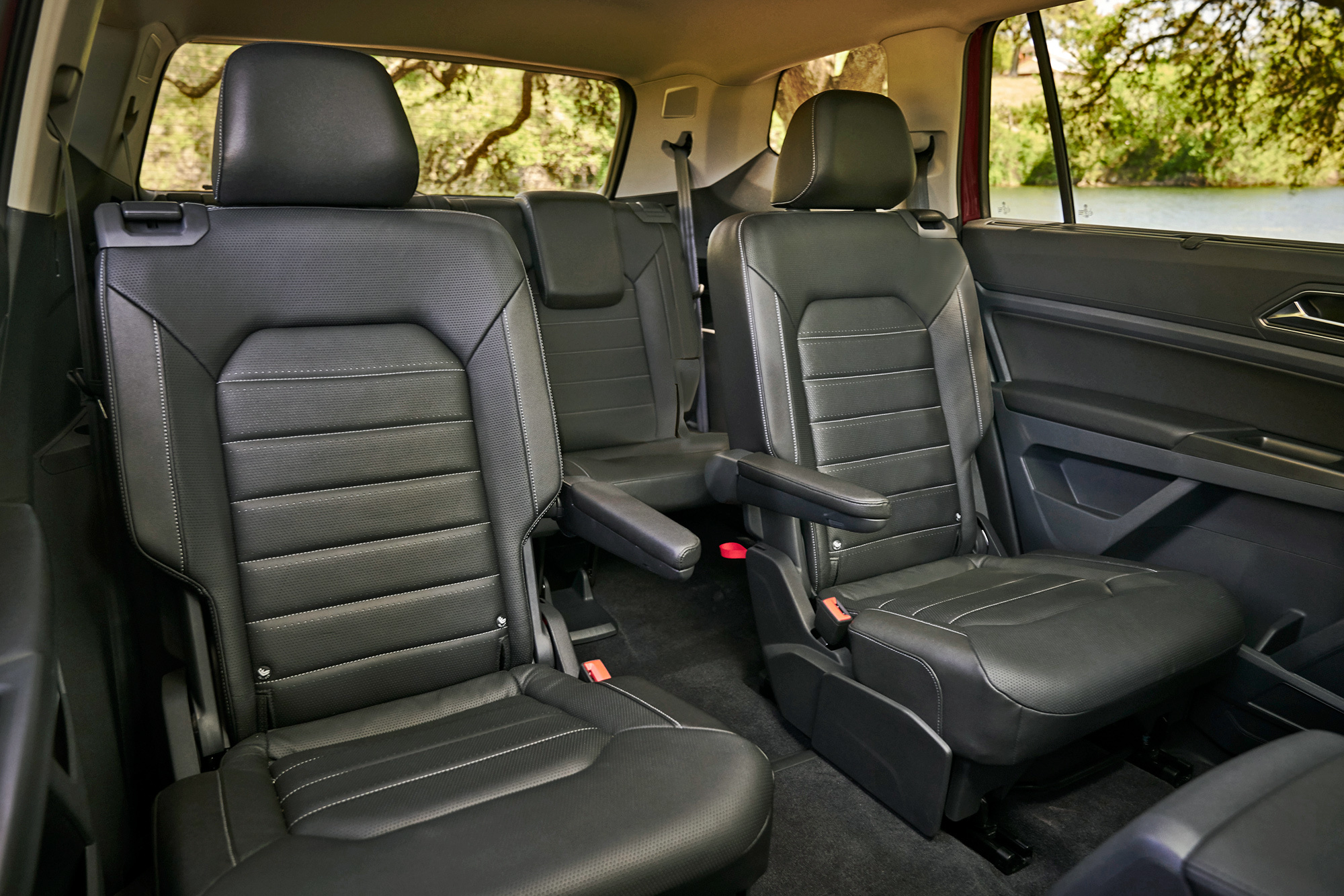 Кубические футы внутреннего объёма, дюжина подстаканников и подбутыльников, отличная подгонка всего и вся… Главное ― не присматриваться. Американский Atlas/Teramont не просто так дешевле и легче всемирного внедорожника Touareg. Местами взгляд цепляет неприкрытый пластиком металл, а мягки только нерегулируемые подлокотники да верхушки передней панели и карт передних дверей. Центральные воздушные дефлекторы не закрываются, бардачок гол как сокол и не охлаждается, задние пассажиры лишены мониторов ― хотя за шесть сотен баксов диван можно заменить парой «командирских» кресел с подлокотниками. Аккуратно, но для такого бегемота ― бедно.