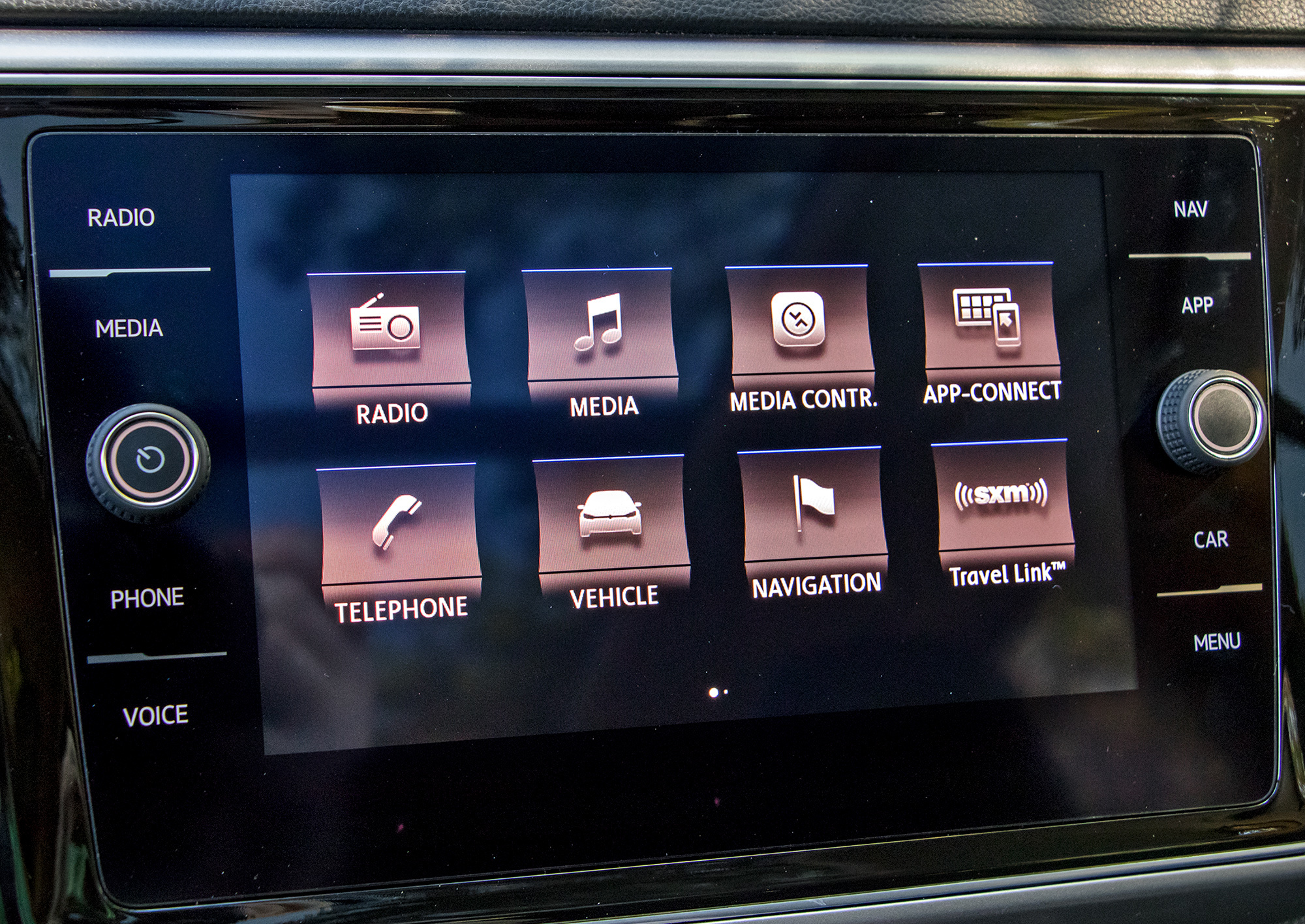 Даже Skoda Kodiaq отделана богаче, однако водительские ощущения схожи. Крыша нависает козырьком бейсболки, перед глазами ― широченная прерия капота. Посадка по-легковому низкая, можно сказать ― спортивная. Кресла мягче, чем принято в Европе, но за бока держат. Ясные всефольксвагеновские приборы в топовой комплектации сменяются электронным щитком. Слегка модернизированная медиасистема променяла физические кнопки на сенсоры-сборники отпечатков пальцев. Расположены они не так удачно, как в том же Кодиаке, но качество изображения на экране и быстродействие хороши.