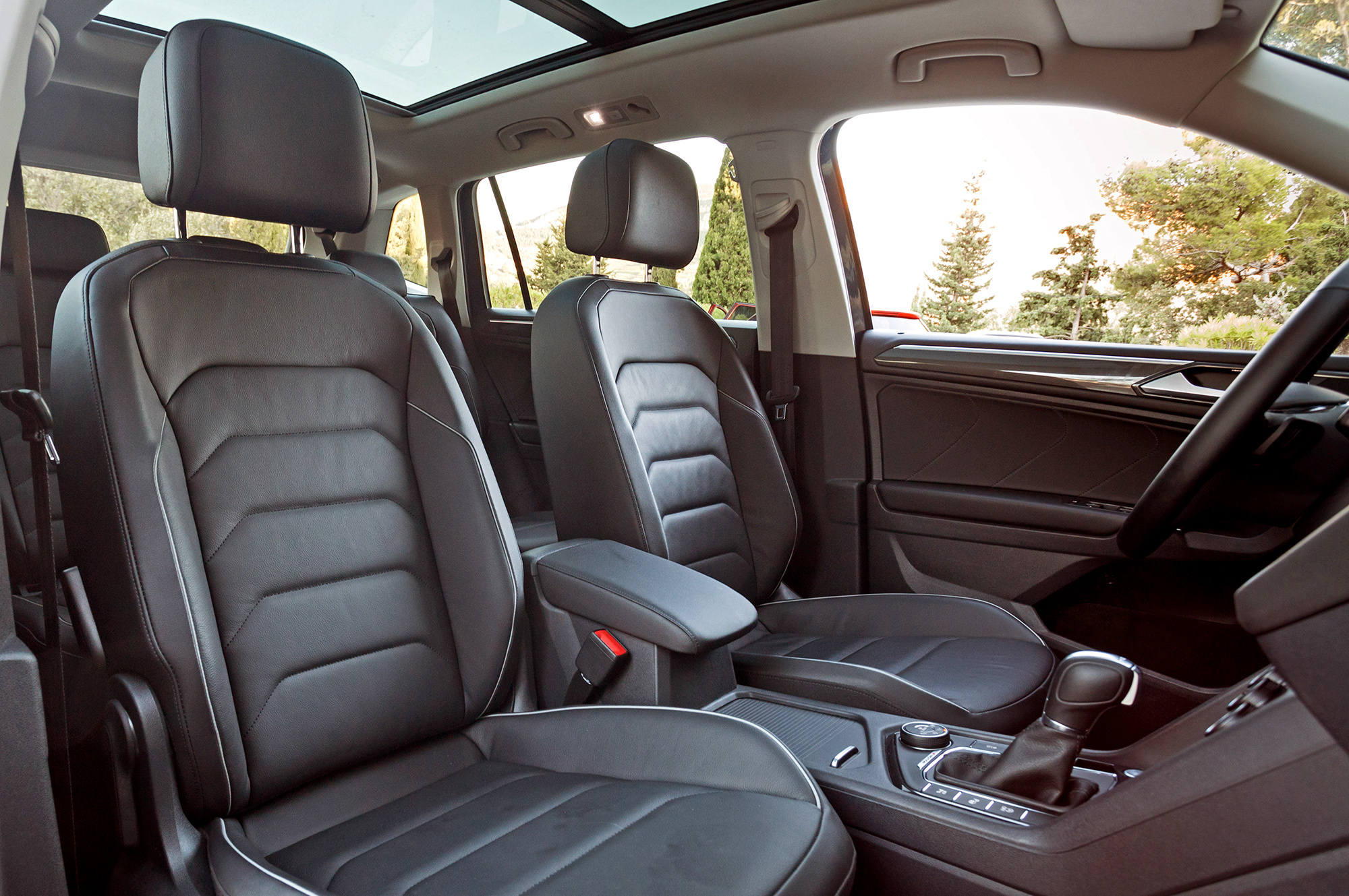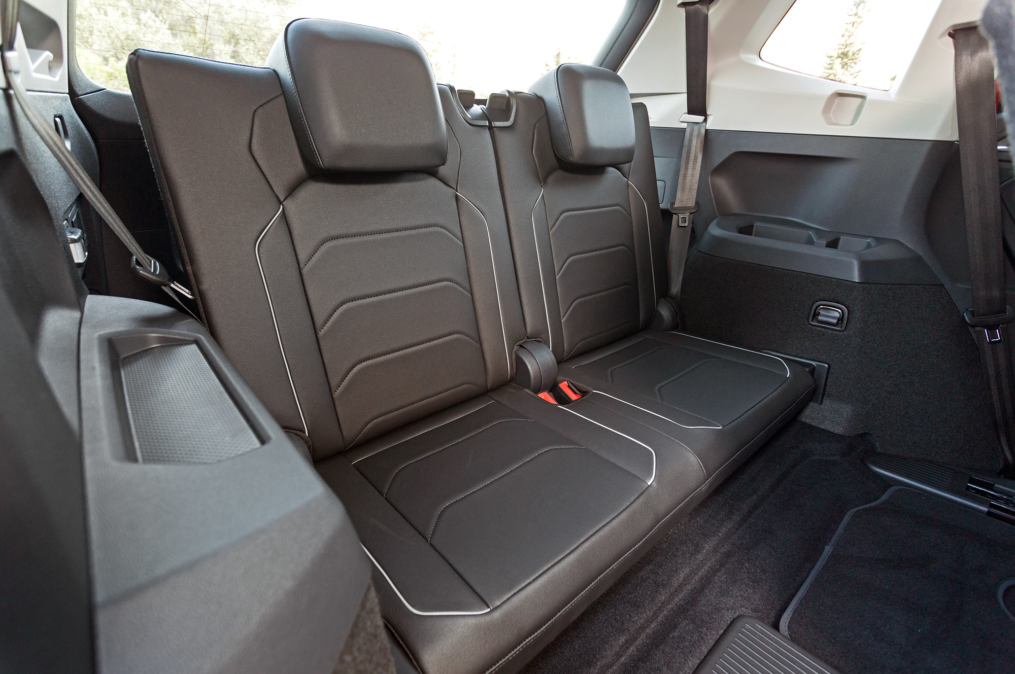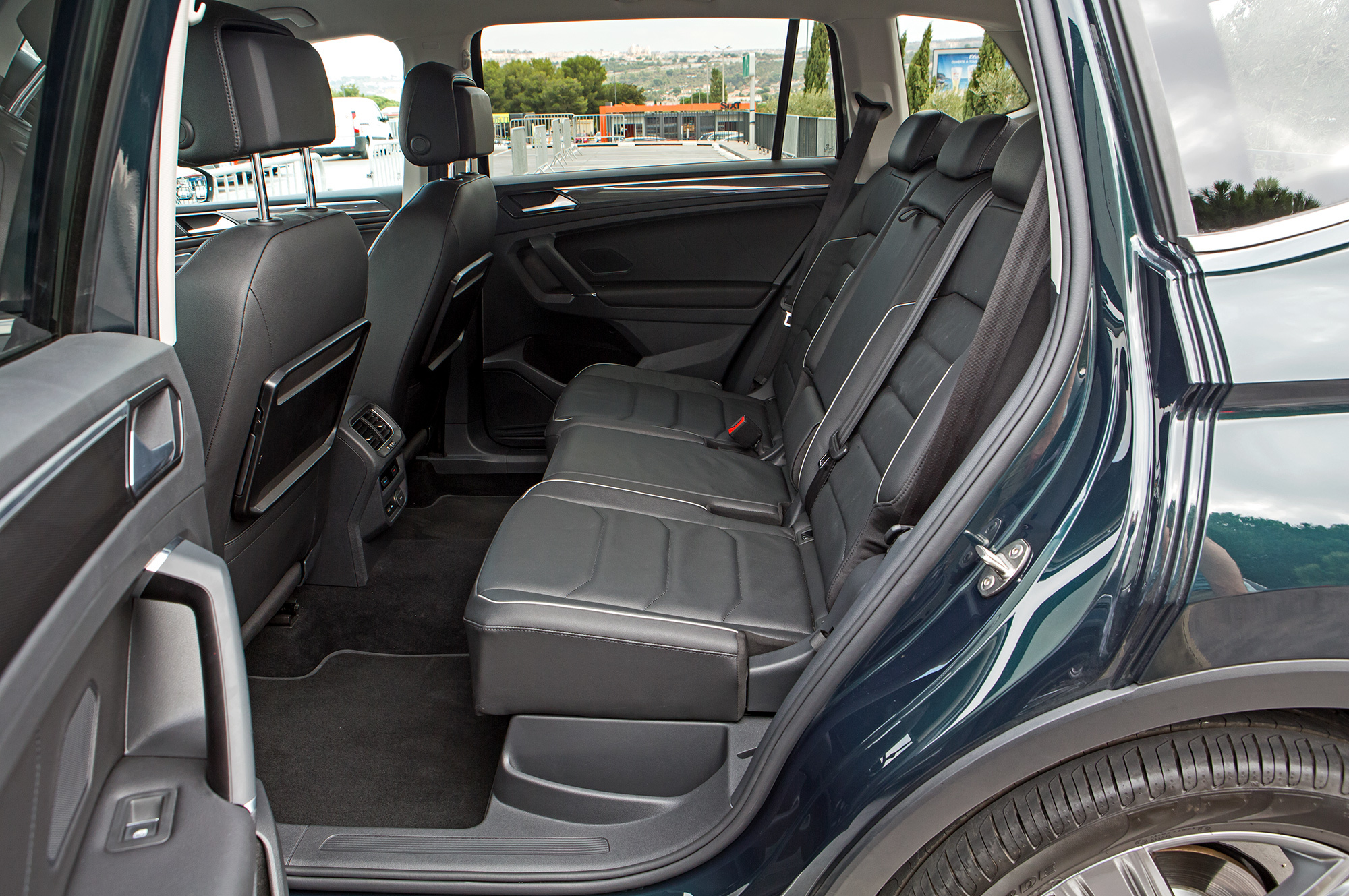 В пятиместном Олспейсе, как и в аналогичном Кодиаке, салазки дивана чуть сдвинуты назад, и простор в ногах поистине королевский. Сел — и выходить не хочется. За доплату доступен издевательский третий ряд без креплений Isofix: пробираться назад — трюк для акробата, сидеть там — упражнение для йога. Вдобавок из-за кресел в багажнике запас пространства на втором ряду сокращается до уровня обычного короткого Тигуана.