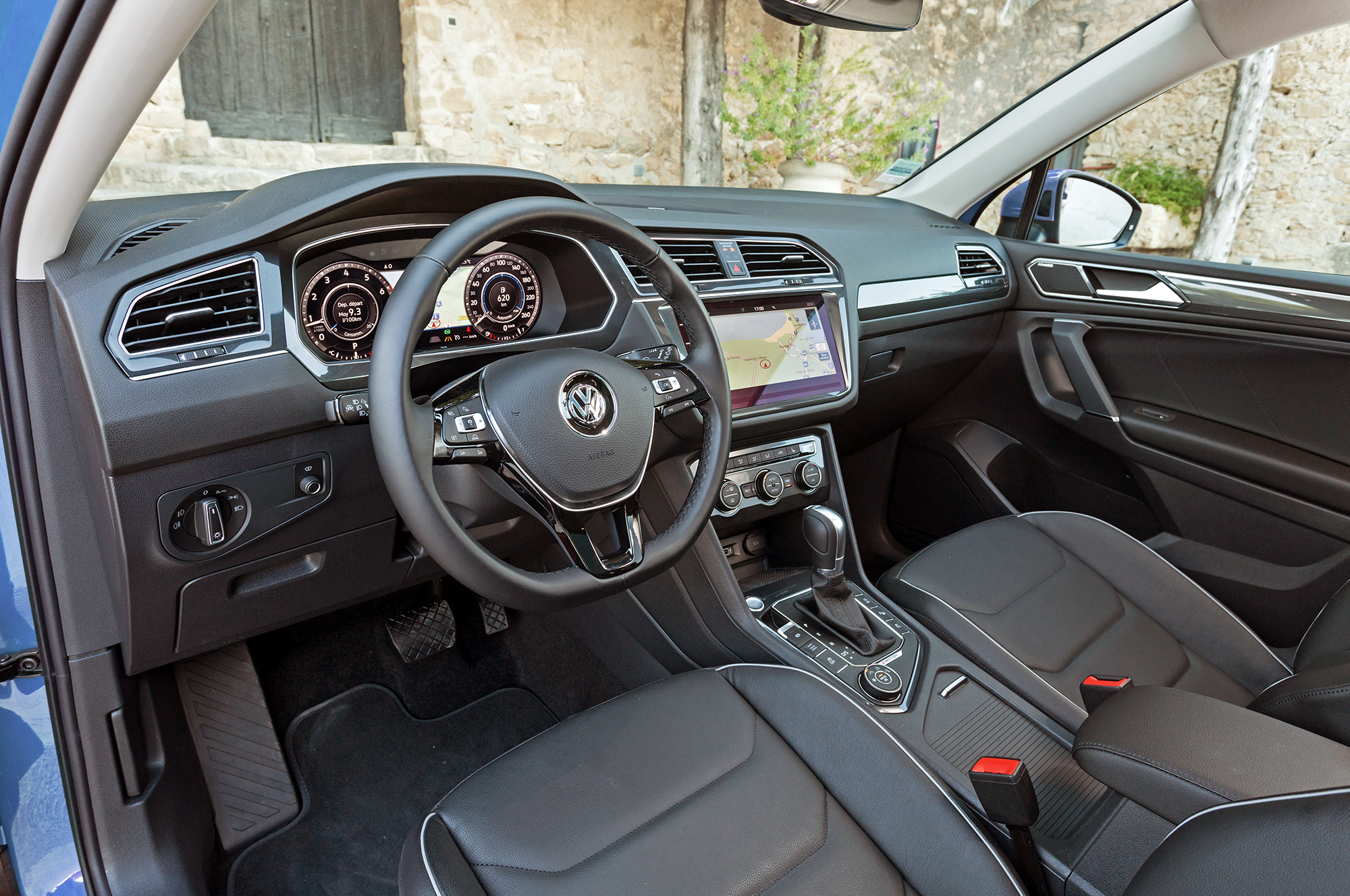 Спереди — без изменений. Ощущения кодиаковского простора нет: передняя панель скромнее, запас по ширине на пару сантиметров меньше. Тоннель ниже, поэтому класть туда телефон и пользоваться подстаканниками не так удобно. Вдобавок к хрустящим по-кодиаковски дверным ручкам тут жёсткие боковины центральной консоли и говорящий пластик вокруг приборов. Подчеркну: мексиканский интерьер не отличается от немецкого — Тигуану в принципе нужно больше мягких и молчаливых материалов! Зато обзорность лучше, чем у Шкоды, потому что зеркала на ножках позволили сделать основания стоек компактнее.