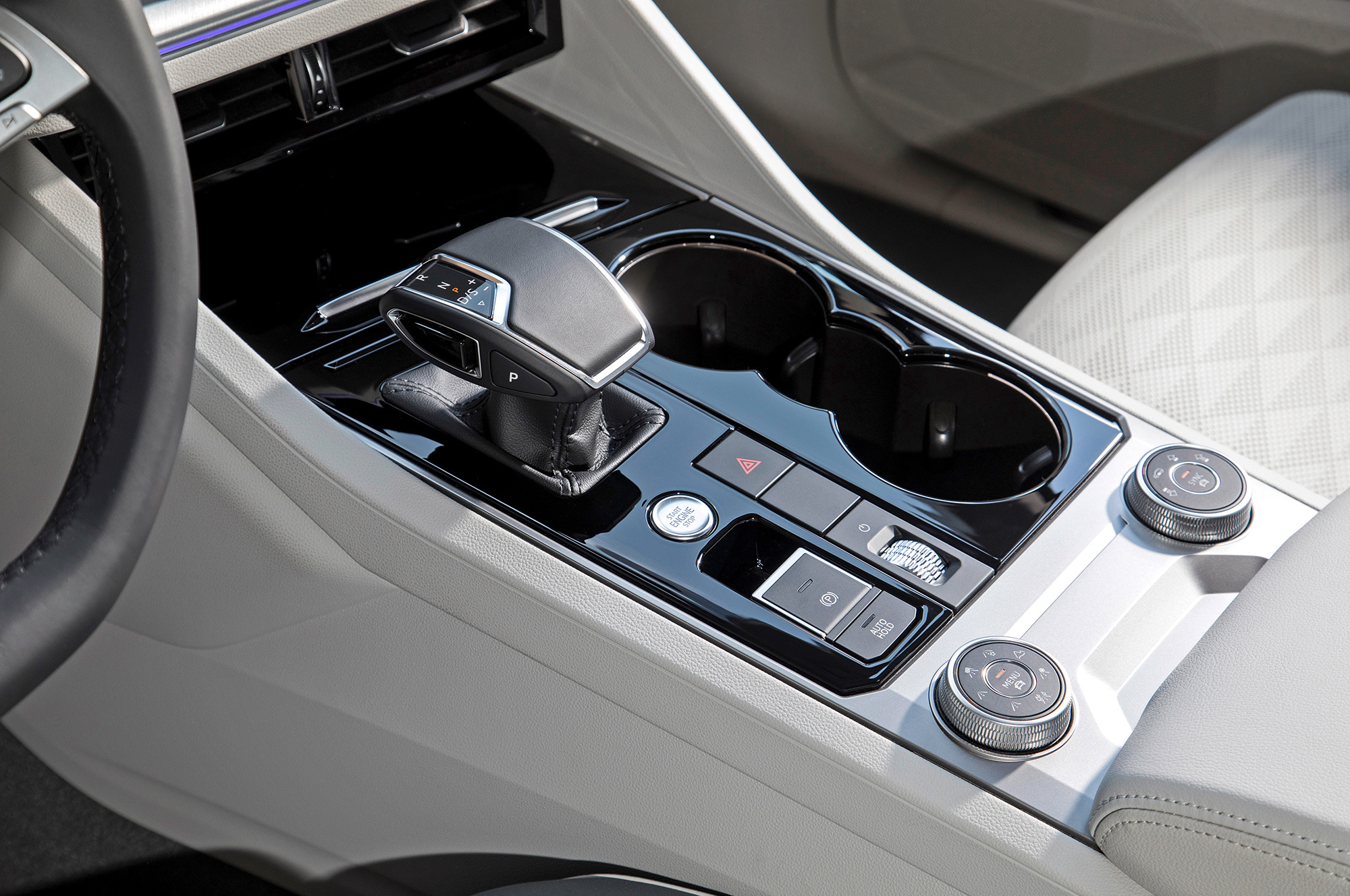 Забираться в салон удобно благодаря почти не выступающему порогу. С посадкой порядок, пусть сиденье и не из лучших. «Общефирменный» руль с наваленными в кучу кнопками смотрится приветом из аналогового прошлого. Физические клавиши сведены на нет: даже блок света усох до трёх кнопок в слепой зоне слева внизу. Пользоваться «телевизором» в центре удобнее, чем компактными аналогами, хотя набор функций традиционен. Кстати, используются не все дюймы ― в нижнюю часть выведена «лента» информации о работе климат-контроля. Всё управление им, а также подогревом и вентиляцией кресел ― тоже сенсорное, допускающее работу и в нетолстых перчатках.