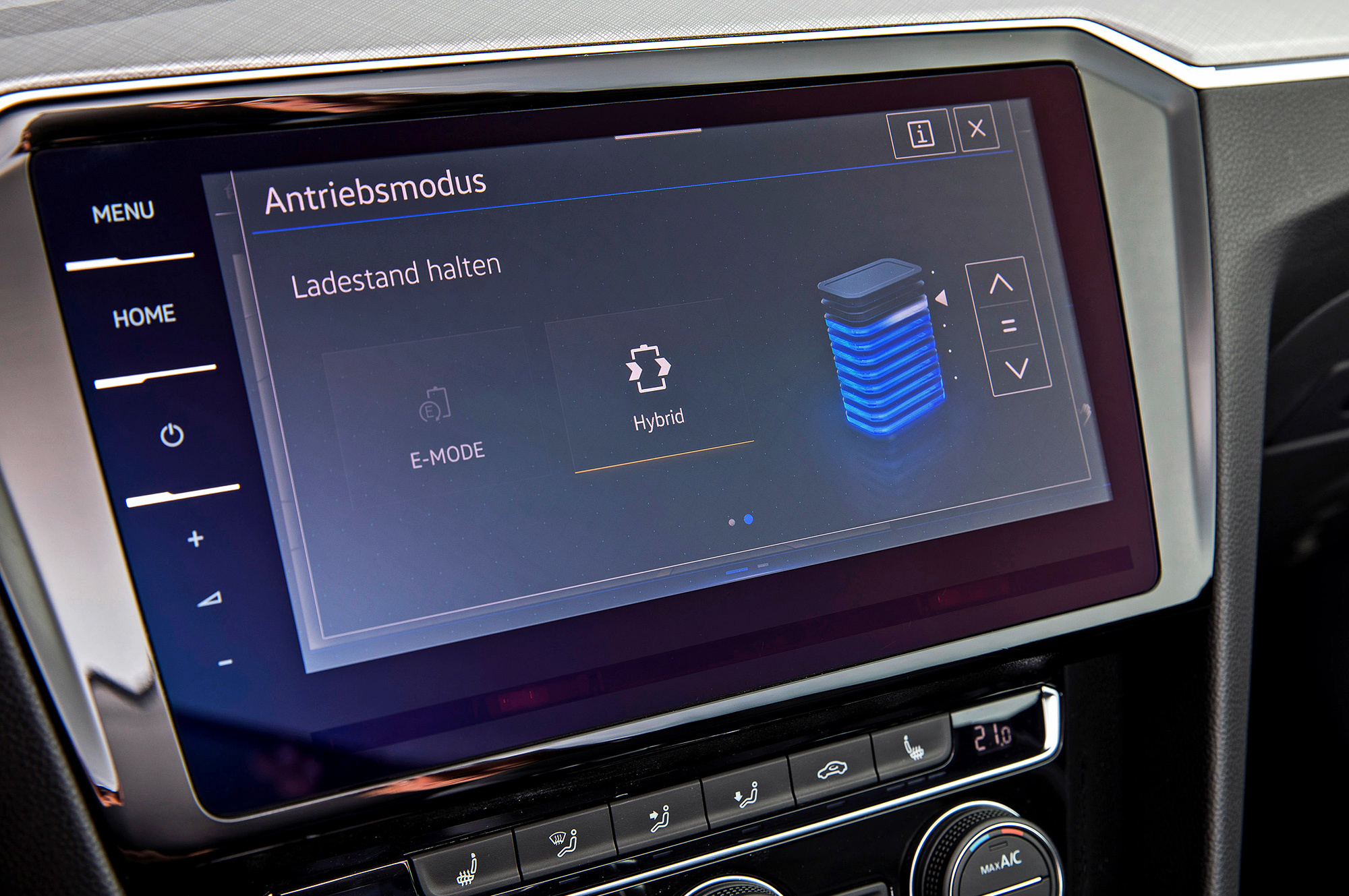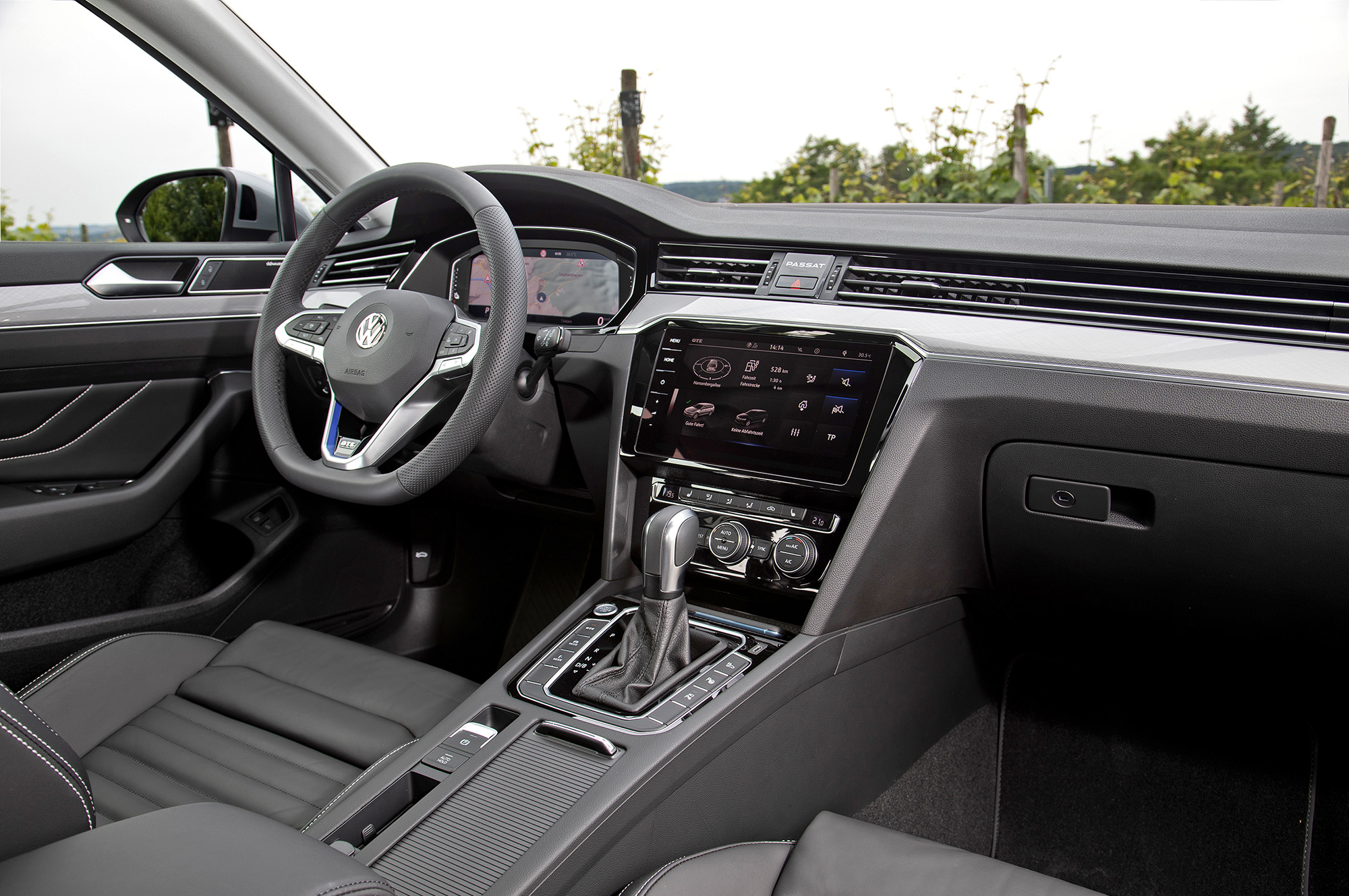 Подвести итог в духе «у Фольксвагена опять получился Volkswagen» мешает только краткая поездка на гибридном GTE, где компанию мотору 1.4 TSI (156 л.с.) составляет 115-сильный электродвигатель. Они могут работать раздельно. По умолчанию после включения зажигания активируется чисто электрический E-mode. Зарядившись от розетки, Passat GTE готов проехать около сорока километров без включения ДВС. Причём не кое-как, а радуя водителя сочной тягой и полным отсутствием электромобильного писка или воя. Стоит продавить газ до кикдауна или превысить скорость 130 км/ч, как оживает бензиновый мотор.