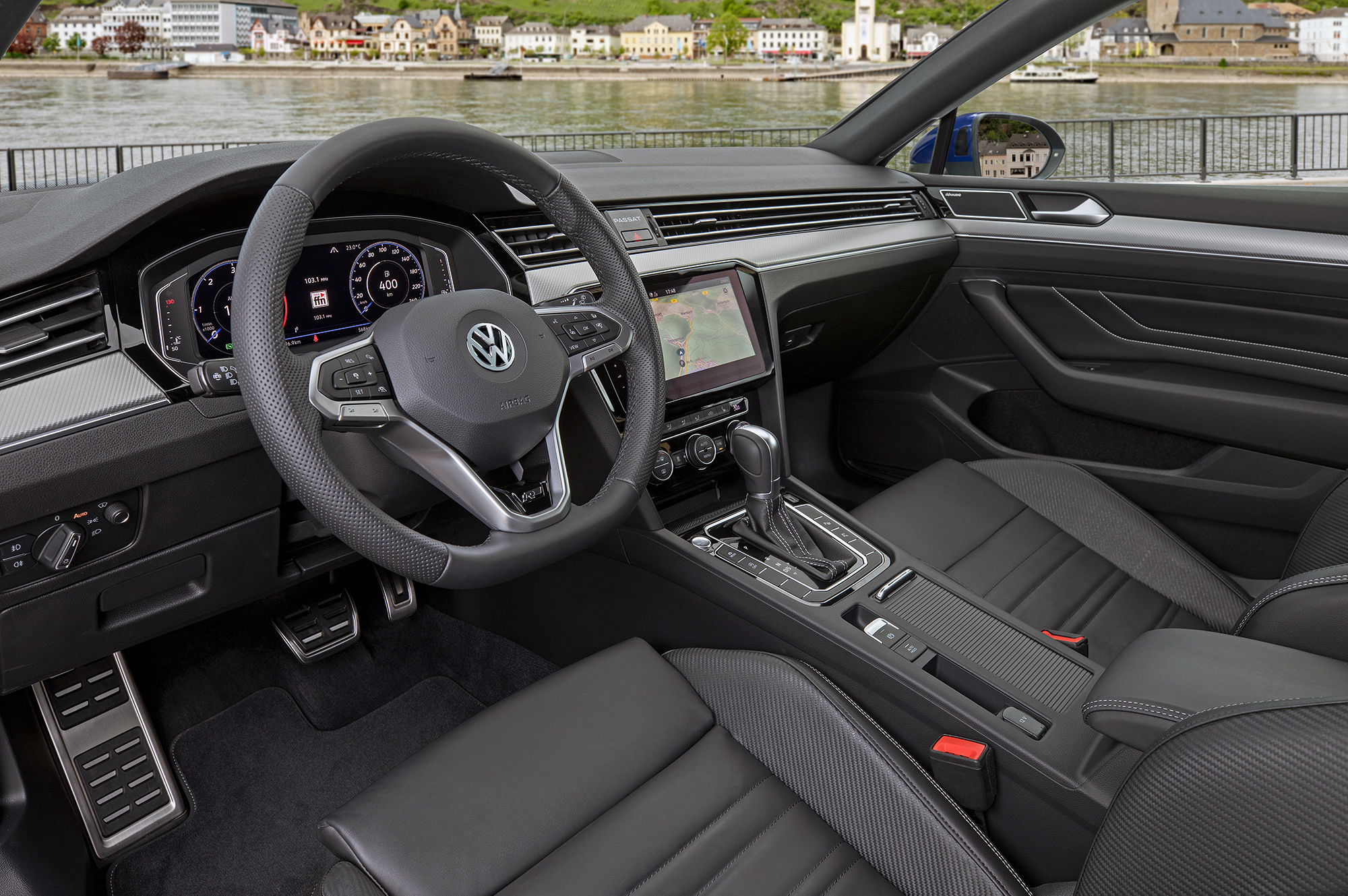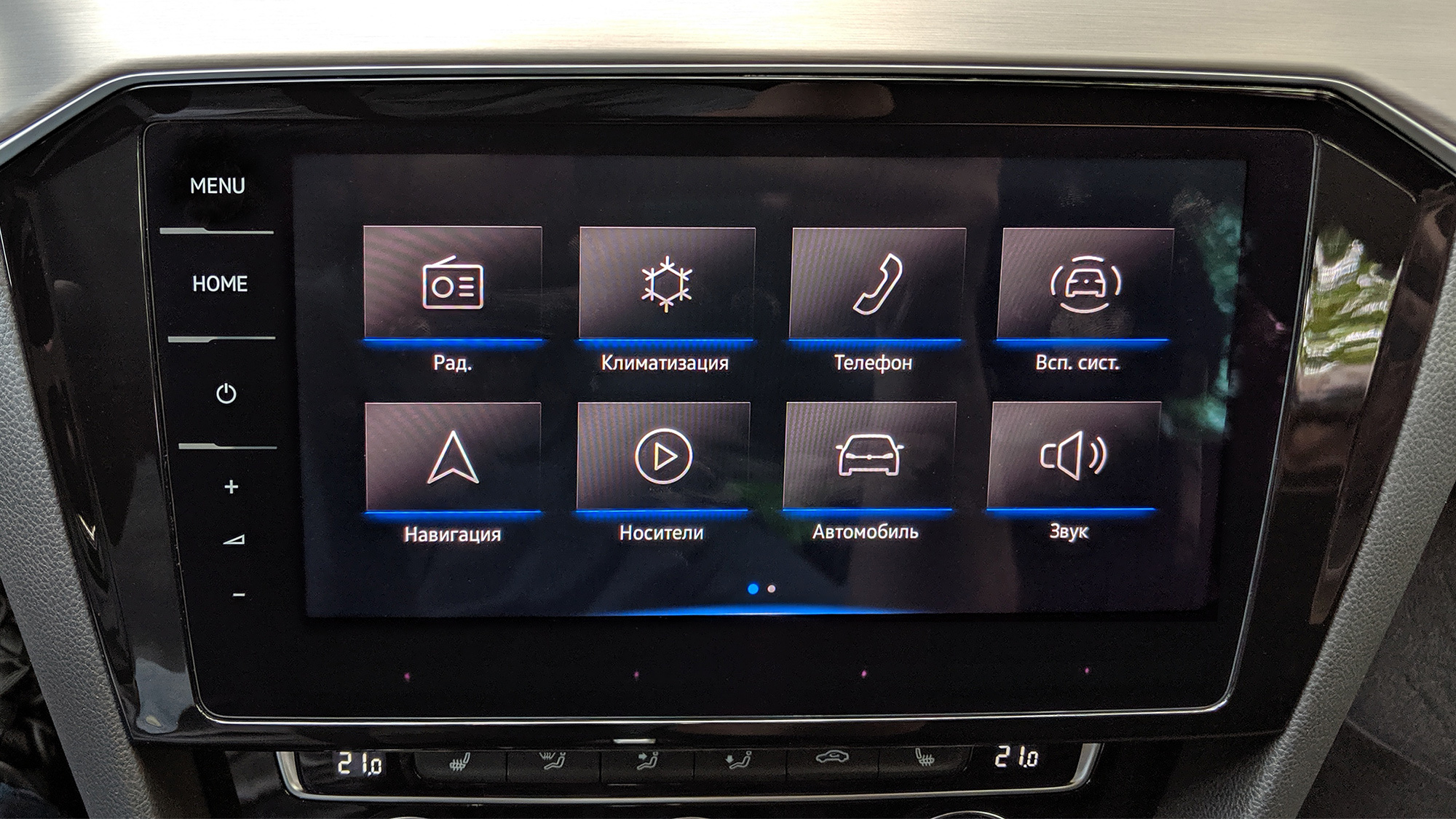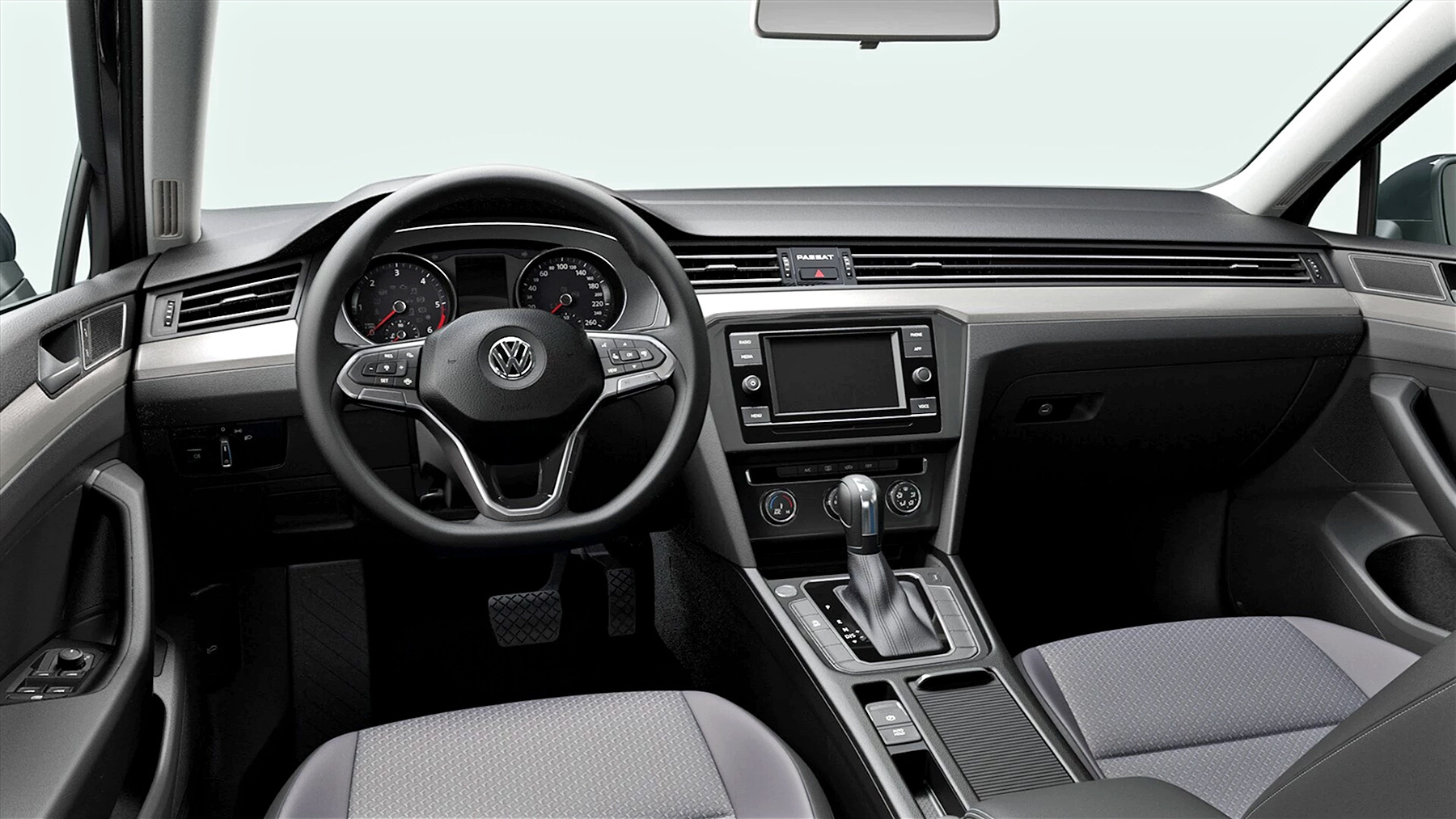 Об умеренности рестайлинга убедительно докладывал Кирилл Бревдо. Согласен: не обладая намётанным взглядом, узнать именно обновлённый Passat непросто даже с передовыми матричными фарами. Два верных отличия находятся в салоне: медиасистема MIB3.0 с полностью сенсорным управлением и аляповатая бликующая панелька с надписью Passat между центральными дефлекторами.
