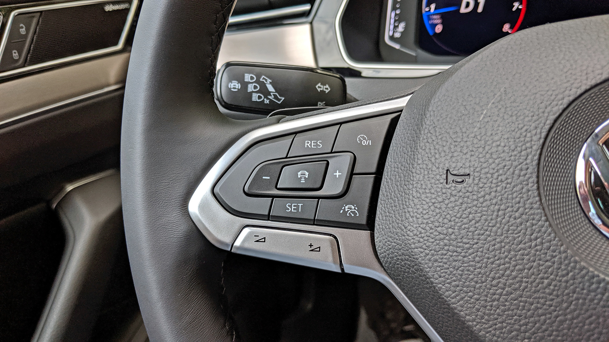 О том, что здесь и руль новый, проще узнать из пресс-релиза, ибо тактильные ощущения от весьма тонкого обода остались прежними. Как и замороченная компоновка кнопок на спицах, требующая привыкания. Наиболее интересны две клавиши. Первая, View, как на Туареге, расположена справа и переключает режимы приборного щитка. И там, кстати, есть из чего выбрать. Другая, слева, активирует модернизированный адаптивный круиз-контроль Travel Assist, одну из главных новинок рестайлинга.