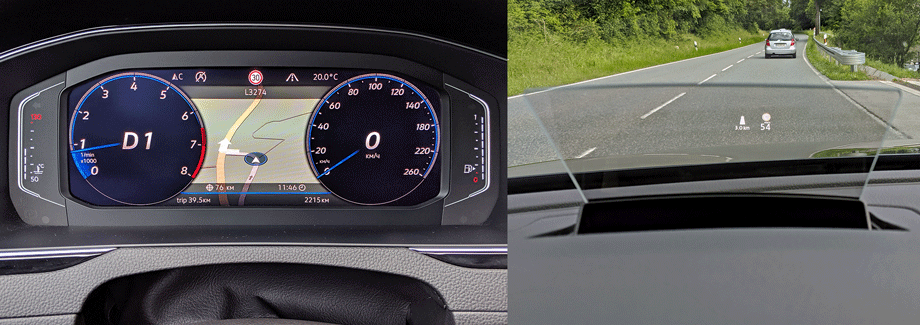 Мультимедийка третьего поколения с экраном диагональю 9,2 дюйма впервые применена на Фольксвагене. Следующими её получат электромобиль ID.3 и новый Golf. Качественный экран обладает хорошей отзывчивостью, однако графика меню и карт навигации ― десятилетней давности. Отлогий опциональный дисплей с цифровыми приборами заужен словно ради экономии. Светодиодные столбики указателей уровня топлива и температуры антифриза выдавлены на пластиковые поля.