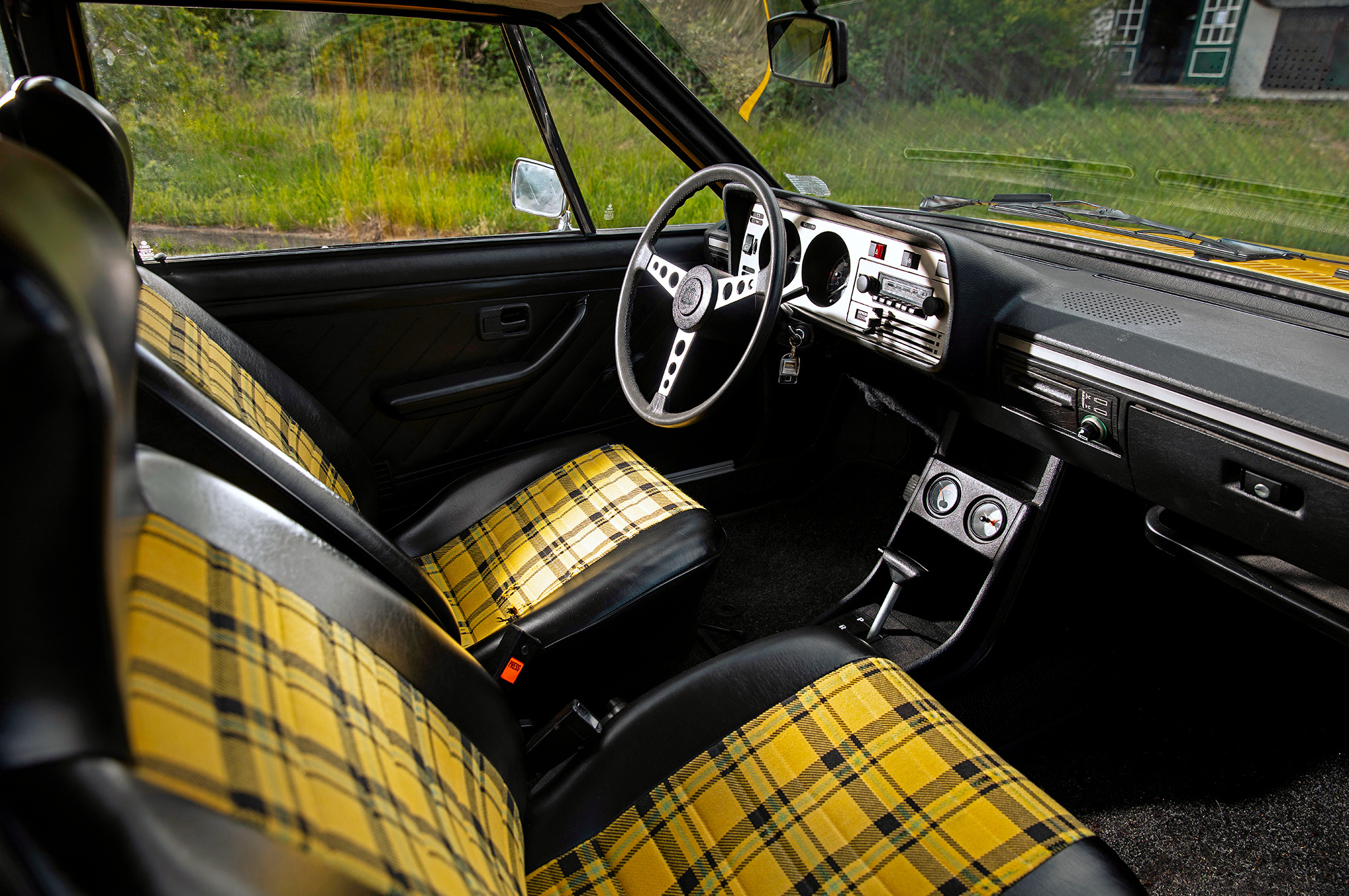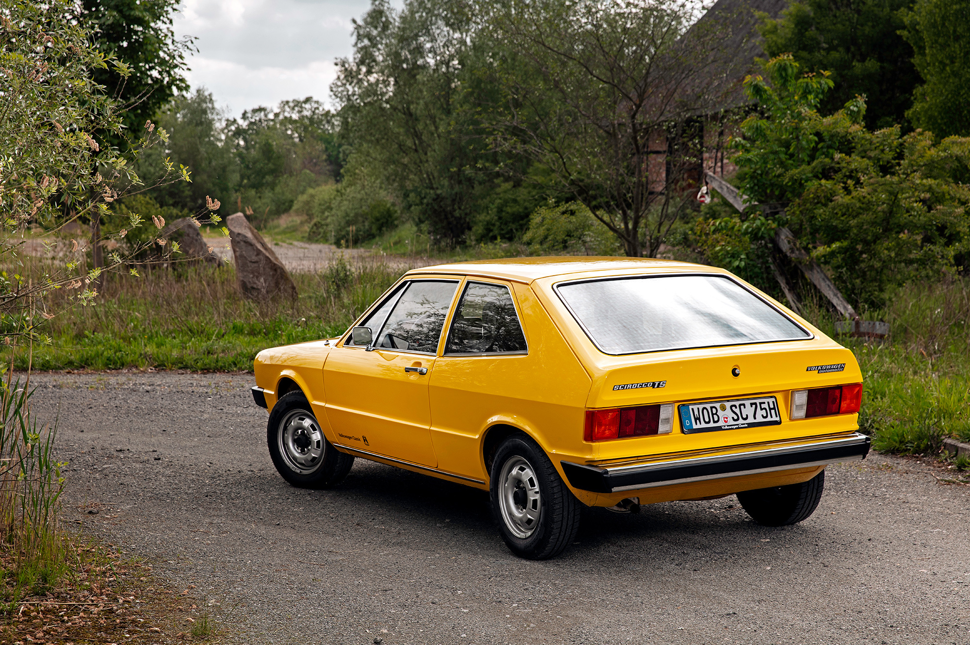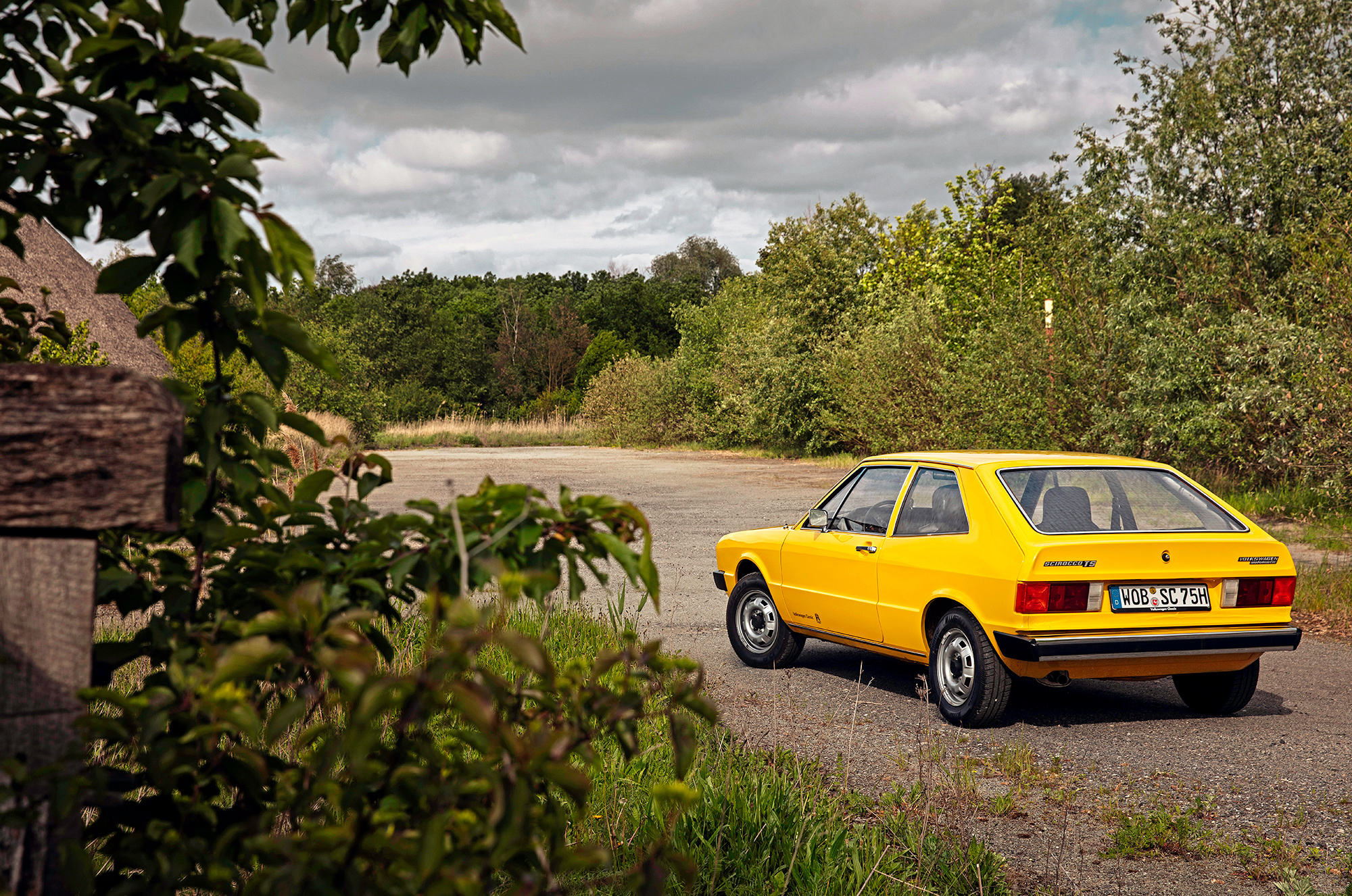 Ярко-жёлтый Scirocco первого поколения — совсем другое дело! Факты говорят, что между этими двумя машинами много общего. Мало того что обе сделаны в Оснабрюке, они ещё и одногодки. Колёсная база совпадает до миллиметра, но хэтчбек легче купе почти на центнер. И к тому же мощнее: здесь уже не 50, а целых 85 сил. Состояние Сырка изумительно, что опять-таки объясняется смешным пробегом: на одометре всего семь тысяч километров. Новая машина!