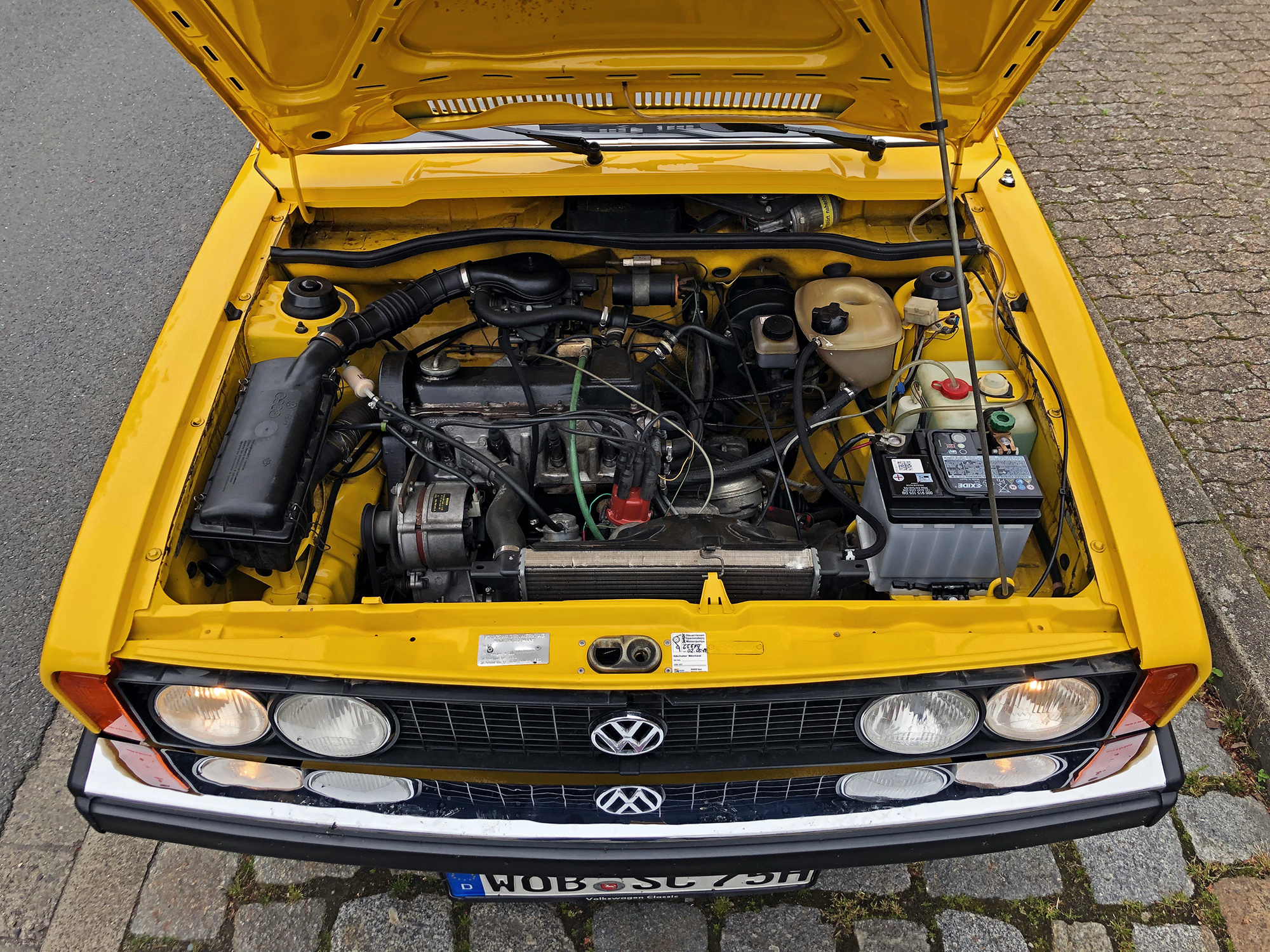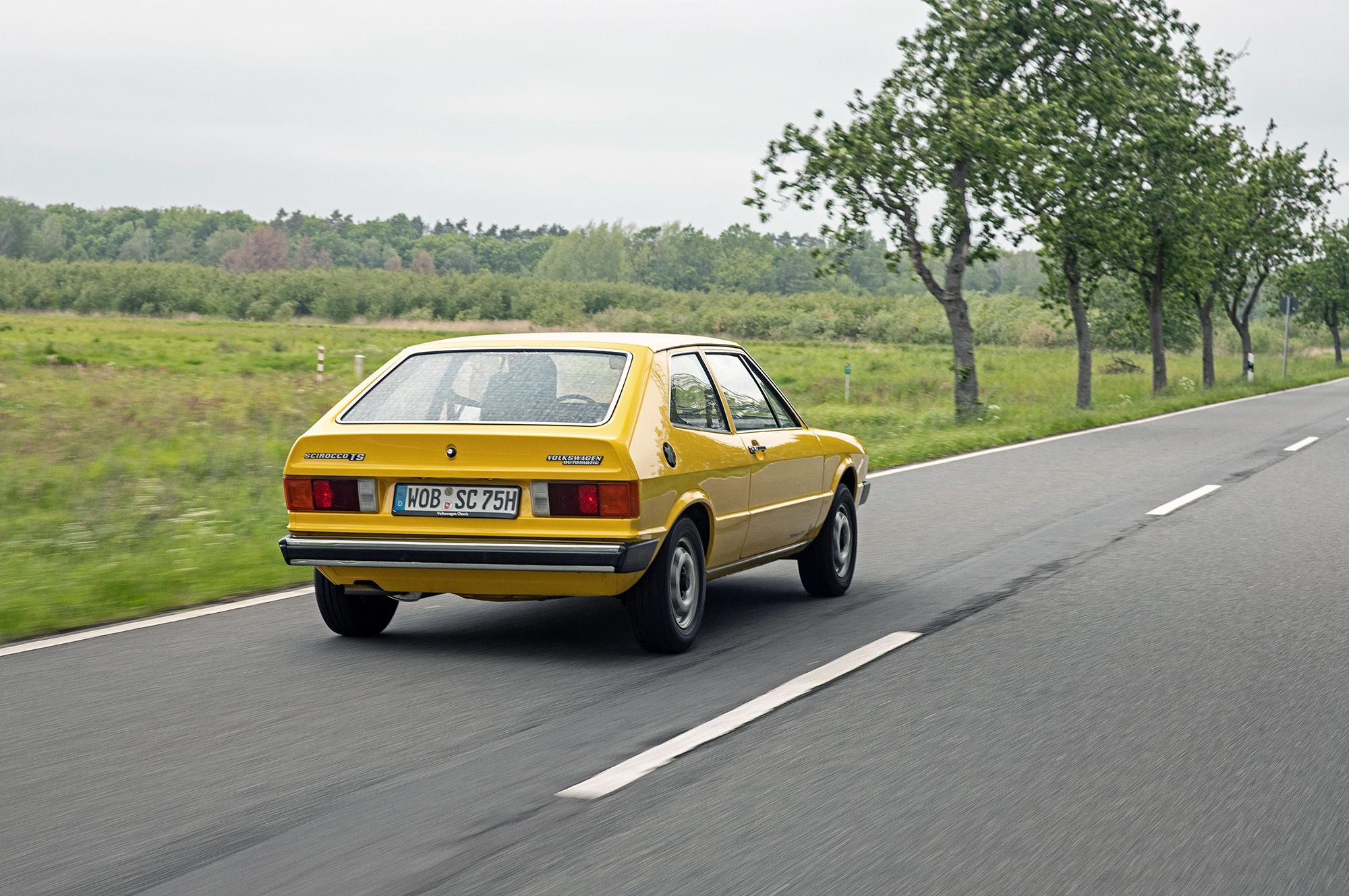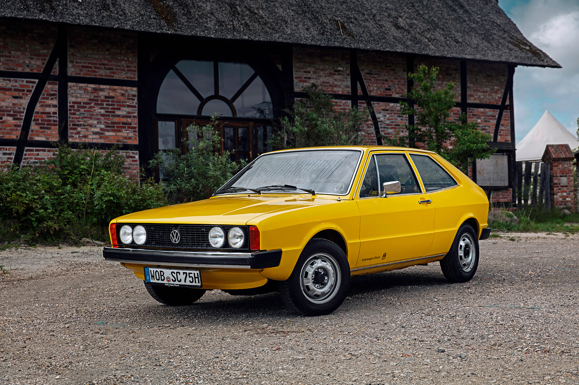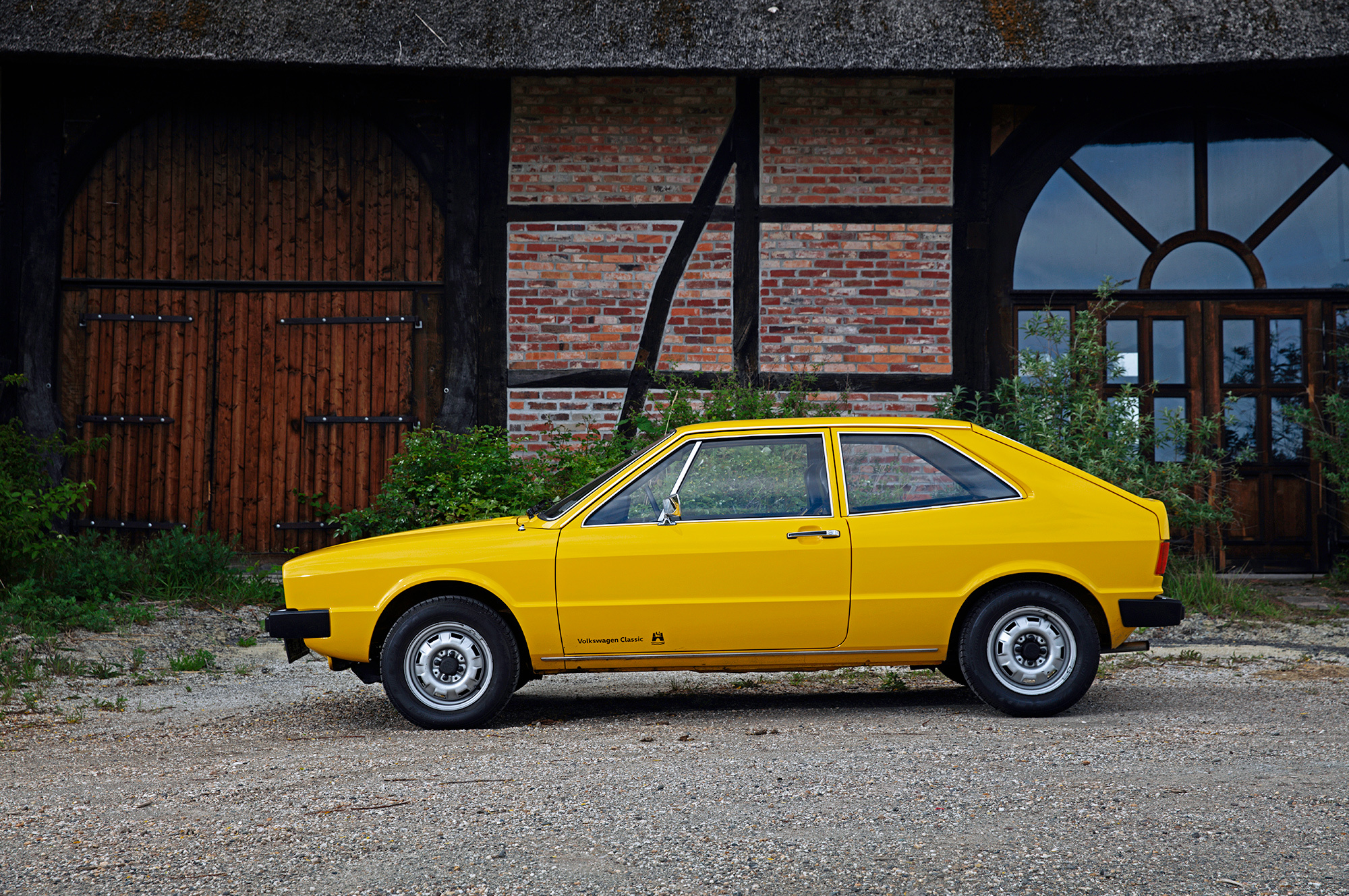 Ярко-жёлтый Scirocco первого поколения — совсем другое дело! Факты говорят, что между этими двумя машинами много общего. Мало того что обе сделаны в Оснабрюке, они ещё и одногодки. Колёсная база совпадает до миллиметра, но хэтчбек легче купе почти на центнер. И к тому же мощнее: здесь уже не 50, а целых 85 сил. Состояние Сырка изумительно, что опять-таки объясняется смешным пробегом: на одометре всего семь тысяч километров. Новая машина!