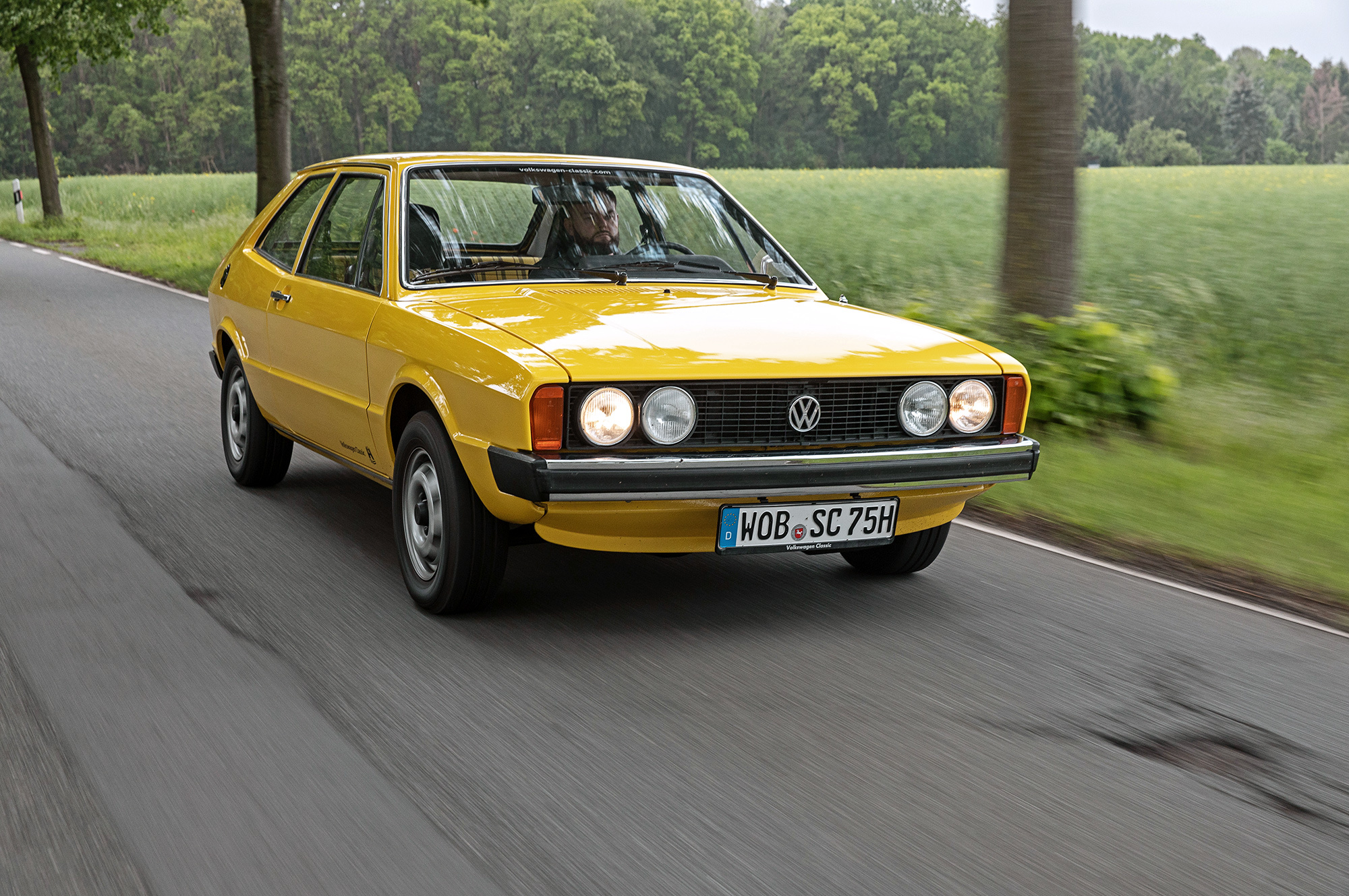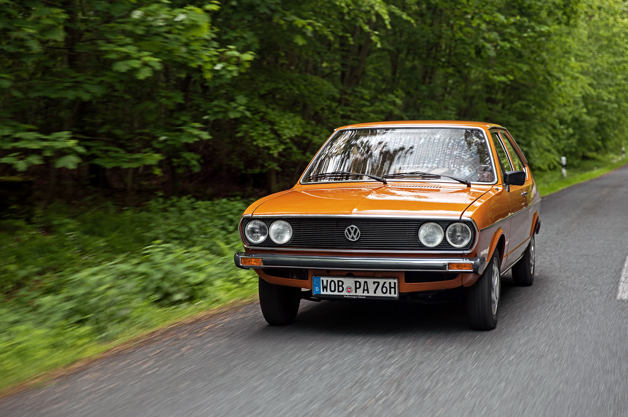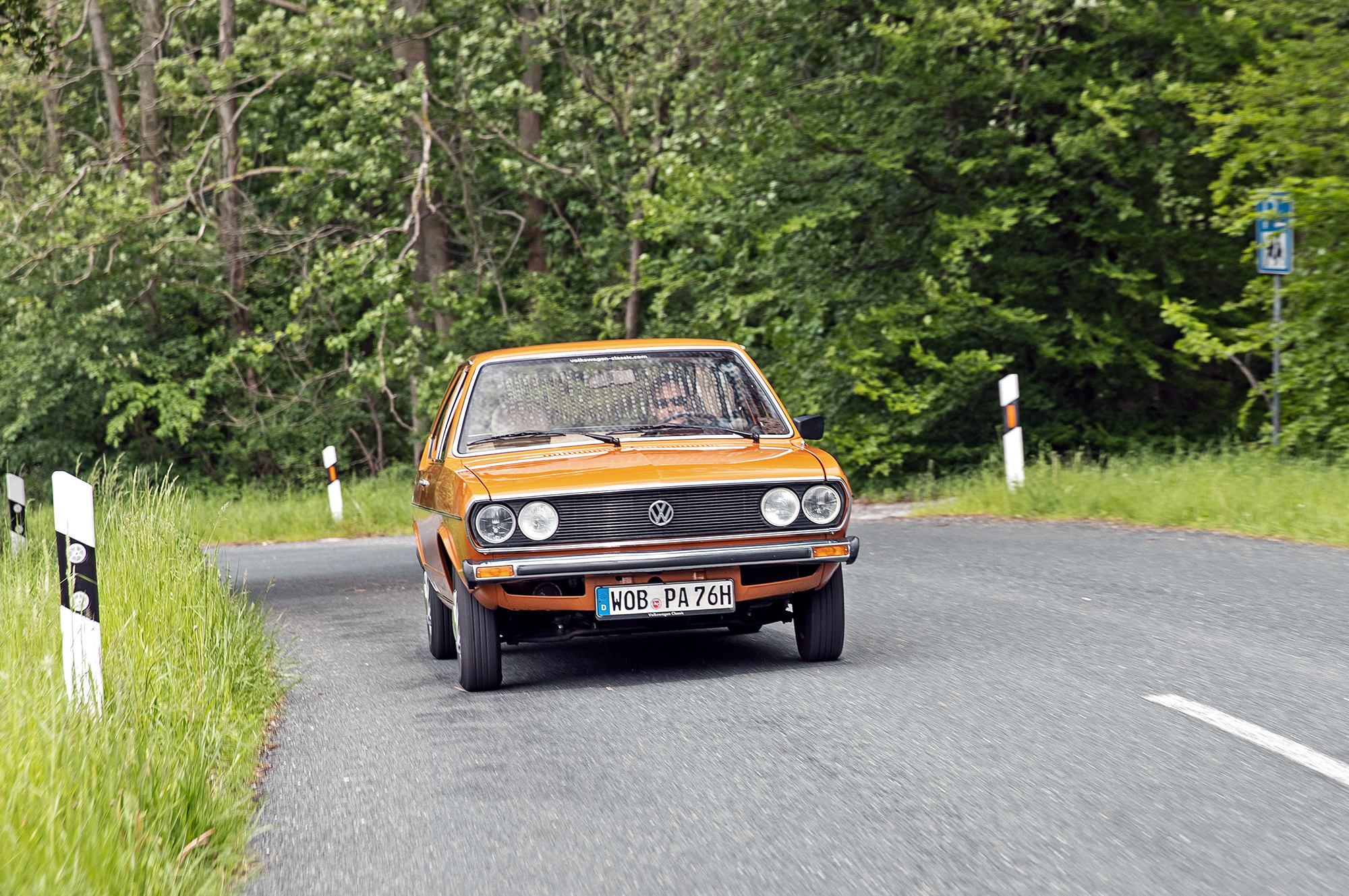 Успеваю прокатиться и на Пассате первого поколения 1977 года выпуска с пробегом немногим более 80 тысяч километров. В нём тоже ностальгия зашкаливает. Сразу же отмечаю, как далеко B1 ушёл от заднемоторных фольксвагенов. Если не обращать внимание на старомодный, не лишенный изящества антураж, то в ощущениях это почти современный автомобиль. Карбюраторный мотор 1.6 отзывчив к добавлению газа, коробка отличается отменной чёткостью переключений, завидна плавность хода, информативны тормоза.