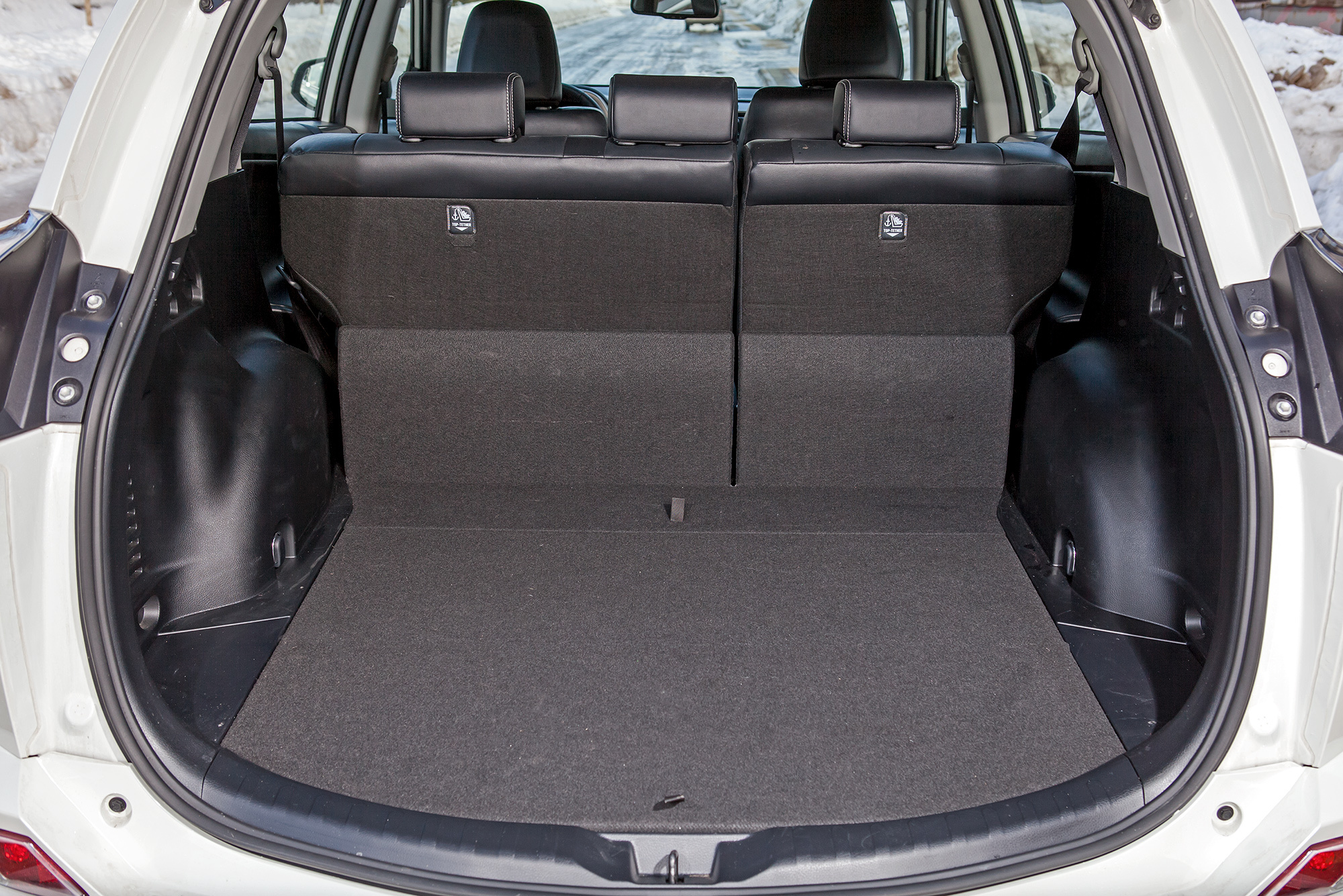 Спереди меньше пространства, чем в Тойоте или Фольксвагене, особенно с панорамной крышей, как в нашем случае. Рослых и длинноногих водителей может смутить слишком высокая посадка. Автоматический режим работы есть только у водительского стеклоподъёмника. В отличие от конкурентов, подогрев лобового стекла недоступен. А сзади всё хорошо. Спинка дивана регулируется в широком диапазоне, тоннель низкий.