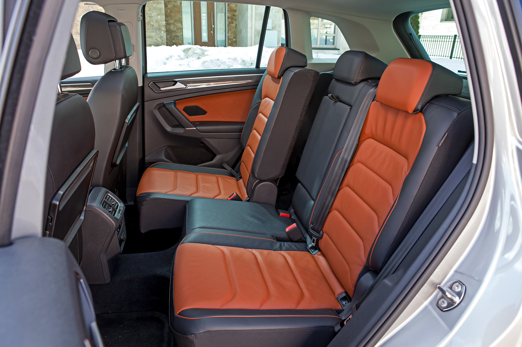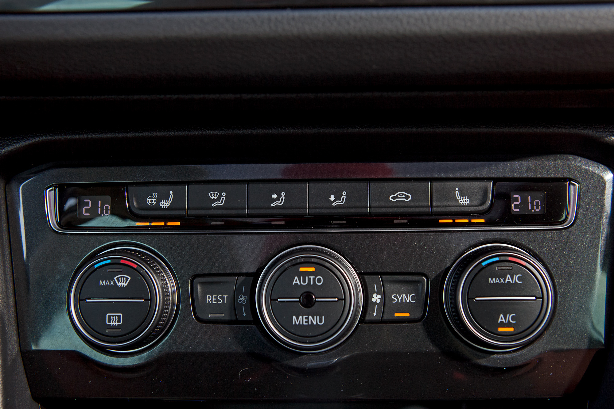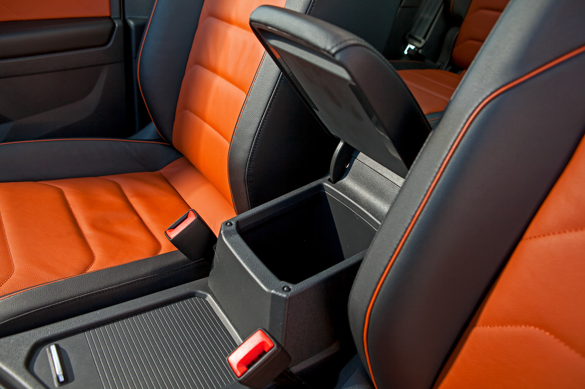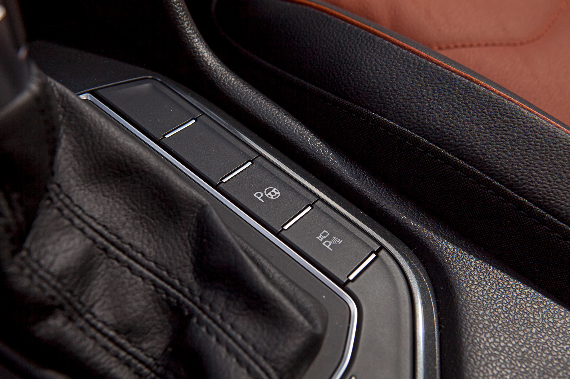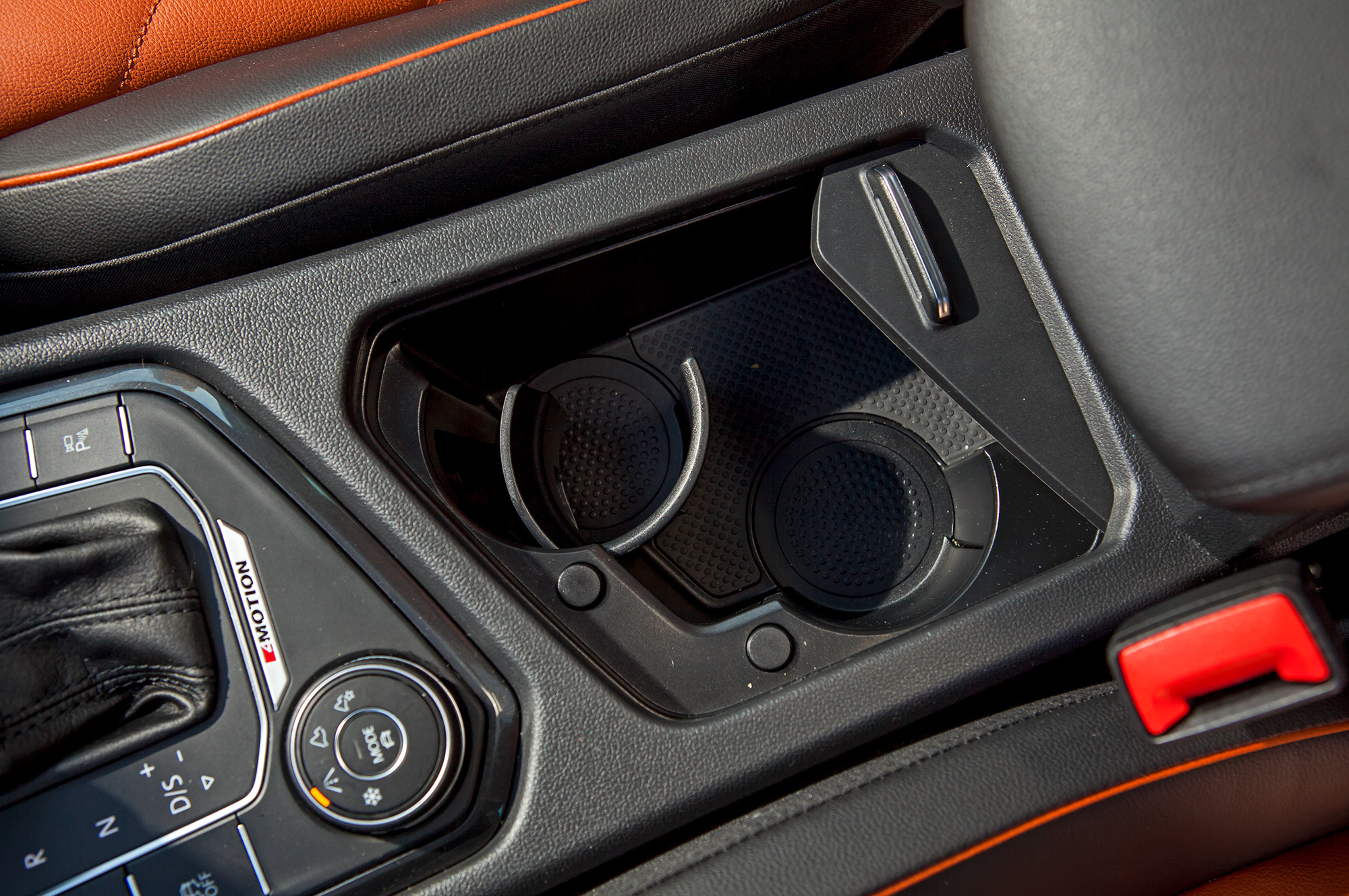 Внутрь не садишься — забираешься, перешагивая высокий порог. Просторнее только RAV4, эргономика идеальна. Обзорность хороша, почти как у той же Тойоты, за исключением небольших зеркал. Отделочные материалы даже базового Тигуана лучшие, что уж говорить про наш топовый. Пластик мягок, дверные карманы ворсисты. Только здесь на втором ряду предусмотрены и своя зона климат-контроля, и продольная регулировка дивана, и изменяемый угол спинки. Правое переднее сиденье складывается для перевозки длинномеров, а в багажнике есть розетка на 220 B и фонарик.