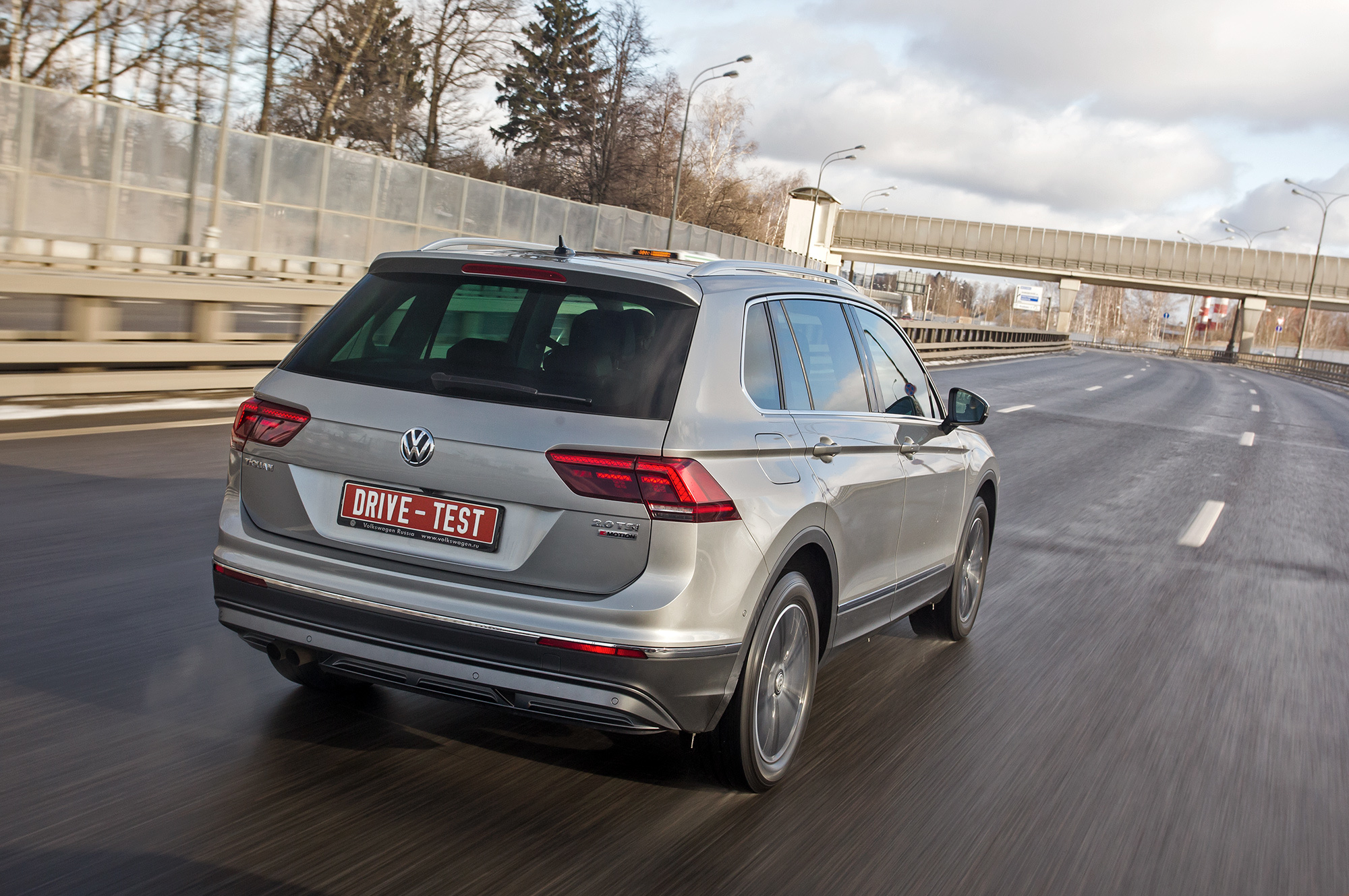 Самый скромный 125-сильный мотор 1.4 TSI мы искать не стали — вряд ли он будет пользоваться заметным спросом. А вот обещающий стать популярным Tiguan 1.4 мощностью 150 л.с, которого не нашлось в пресс-парке, раздобыли у дилера. Такие машины могут быть полноприводными, но в нашем случае только передние колёса ведущие. Несмотря на меньшую массу, динамика ощутимо скромнее, чем у тестового двухлитрового Тигуана. Её, пожалуй, просто достаточно.