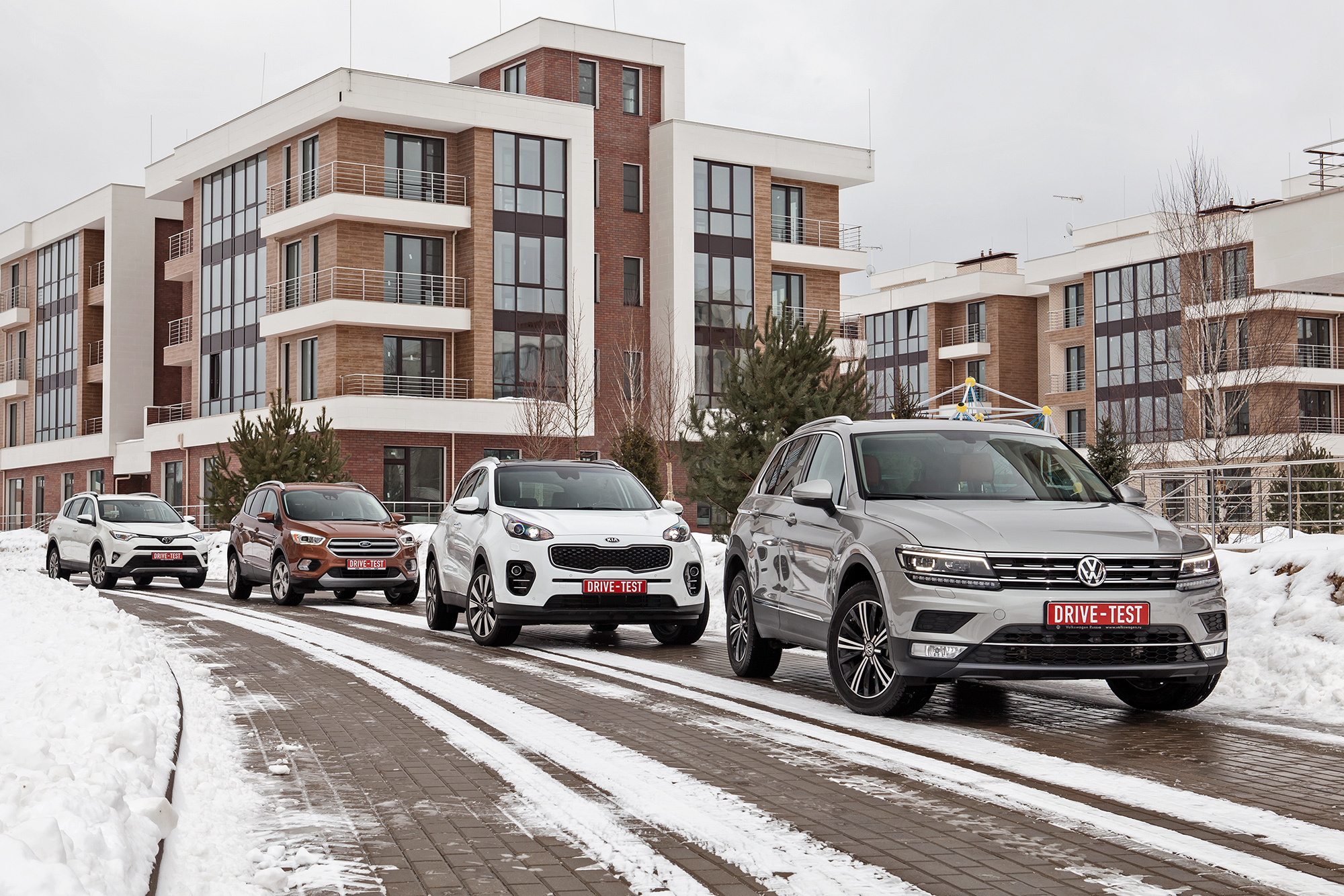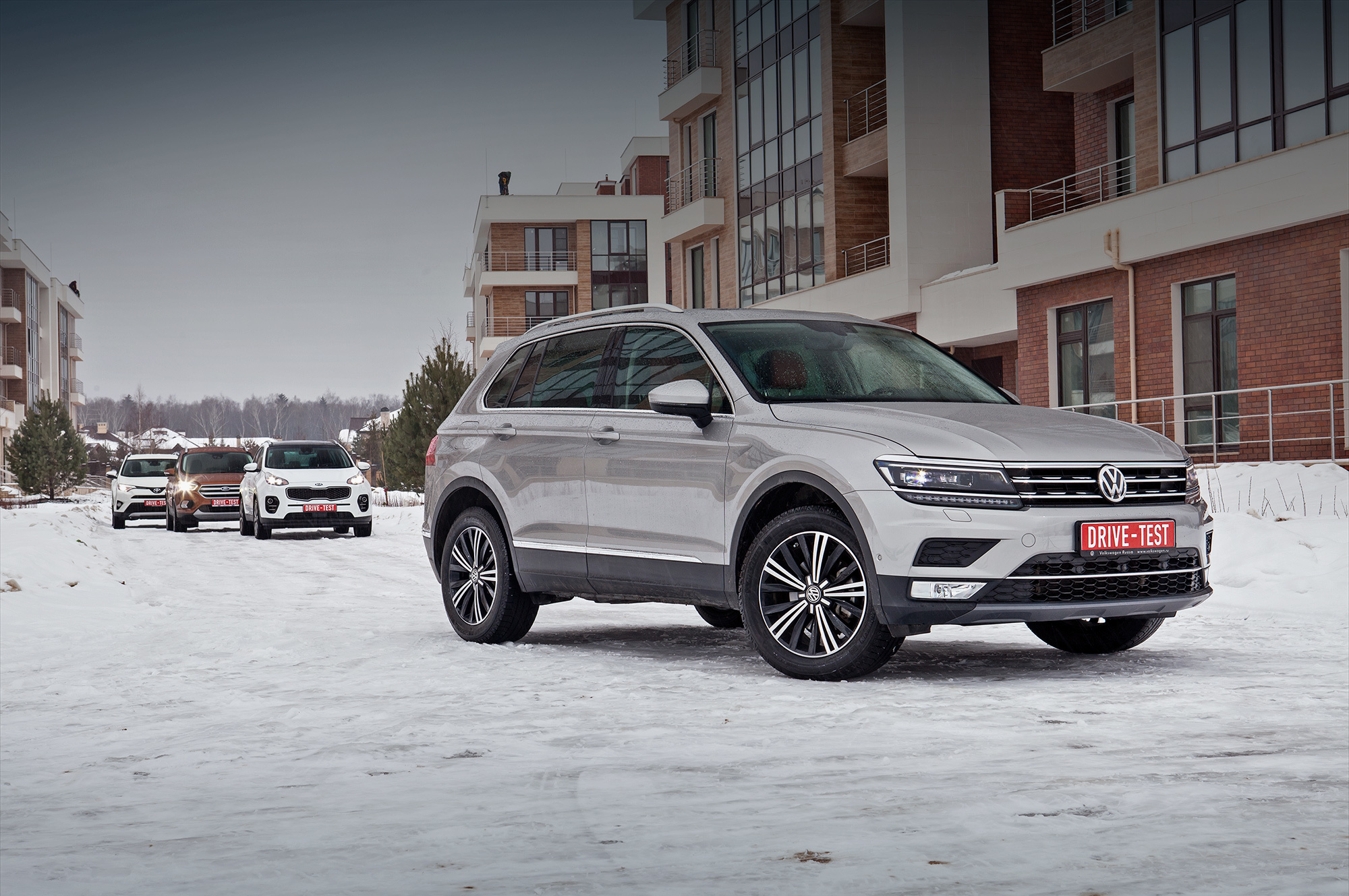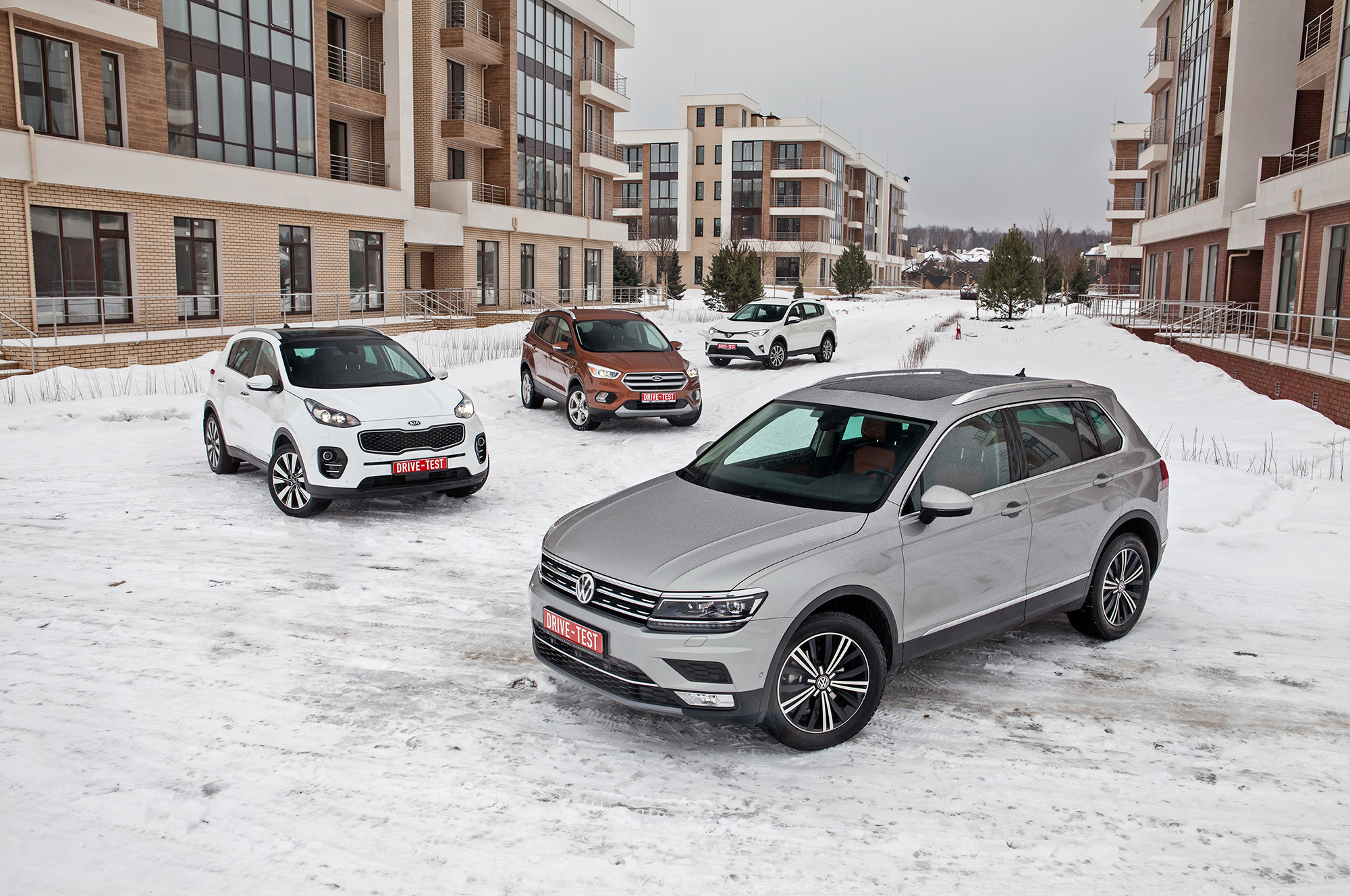 | Модель | Volkswagen Tiguan 2.0 TSI | Ford Kuga 1.5 EcoBoost | Toyota RAV4 2.0 | Kia Sportage 2.0 |