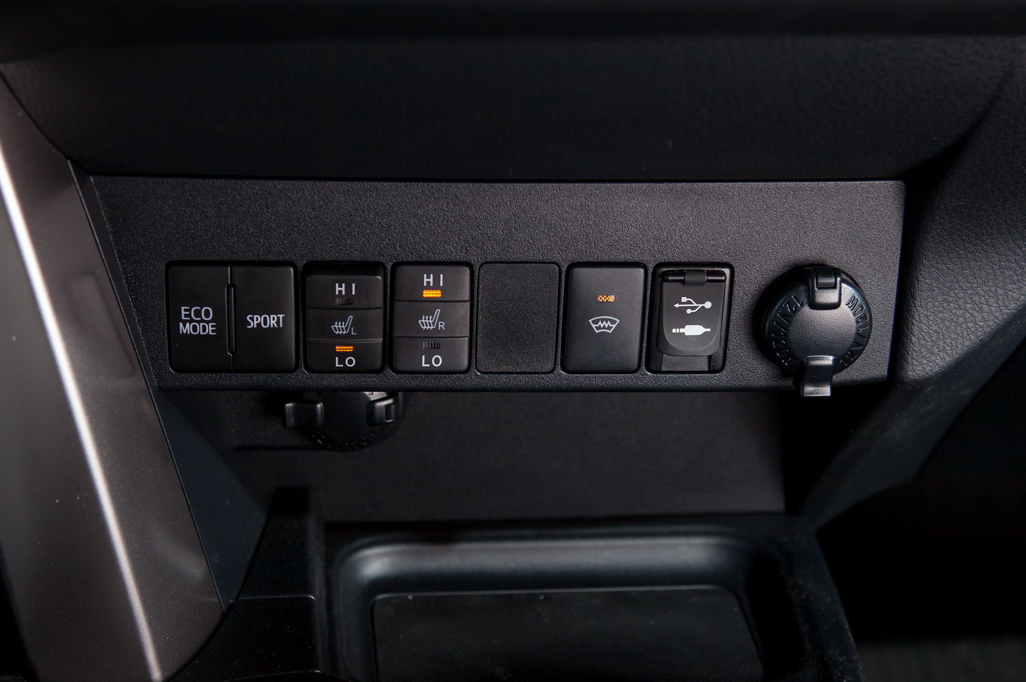 Тойоту узнаёшь по родимым пятнам. Рулевой колонке чуть не хватает регулировки по вылету. Некоторые кнопки — словно прямиком из 90-х — лишены подсветки и произвольно разбросаны по салону. Автоматическим режимом обладает только водительский стеклоподъёмник. Ночью раздражает яркий блок климат-контроля. Зато кресла классные, обзорность с крупными зеркалами лучшая, удобно организованы ниши под мелочь, материалы хороши. И, конечно, простор. Домашним понравится, что в «рафике» больше всего места сзади, одобрят они и багажник. Но всем в дороге будет не хватать комфорта.